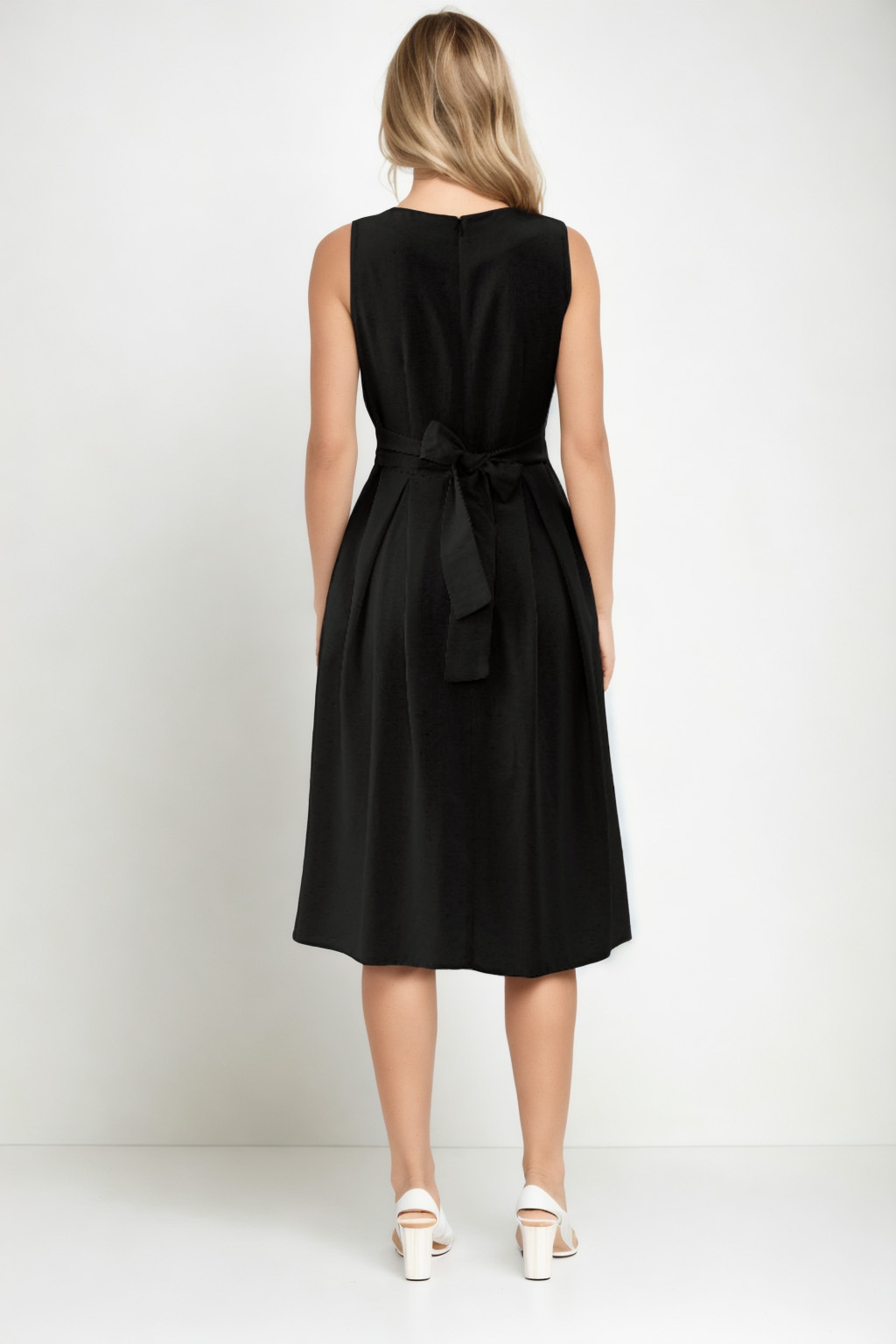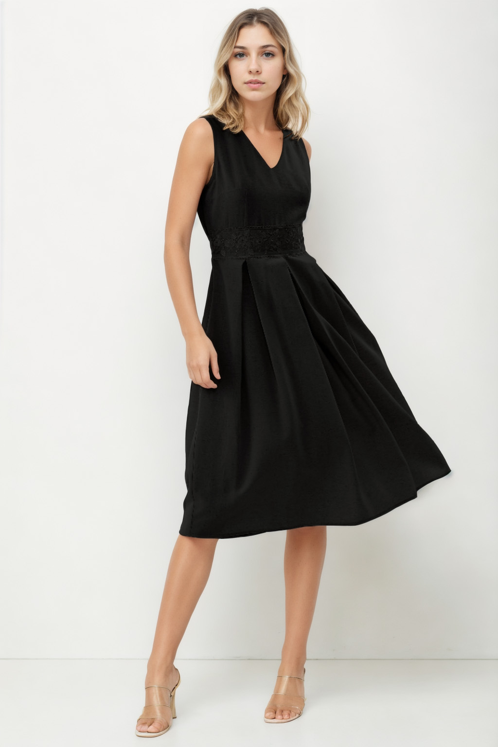 Bel Kısmı Güpürlü V Yaka Cepli Elbise
