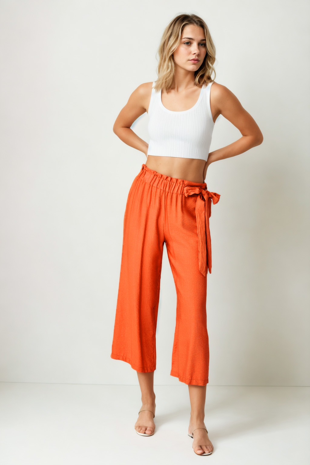 Belde Kuşak Detaylı Geniş Paça Pantolon