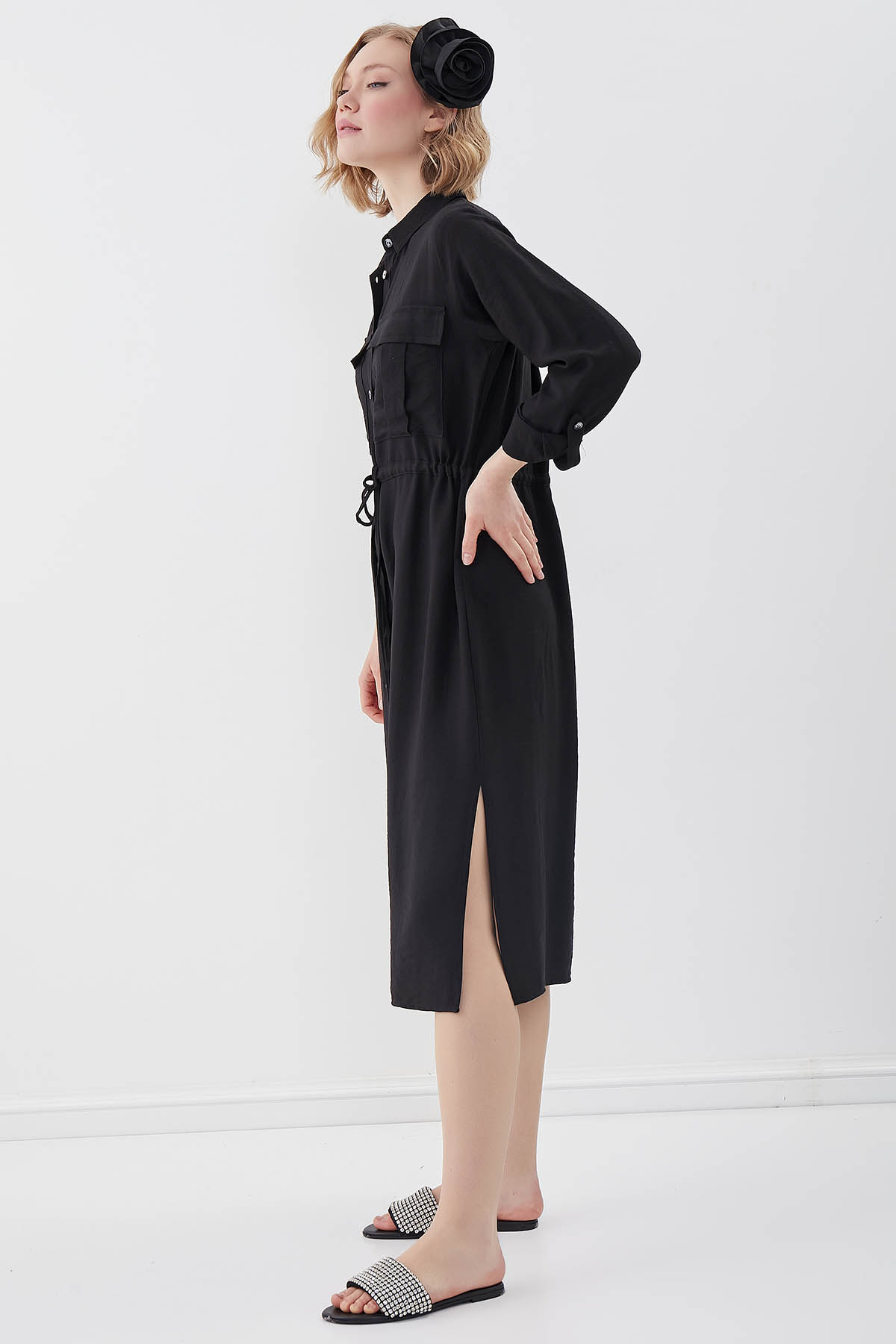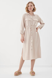 Beli Bağlamalı Çift Cep Gömlek Elbise
