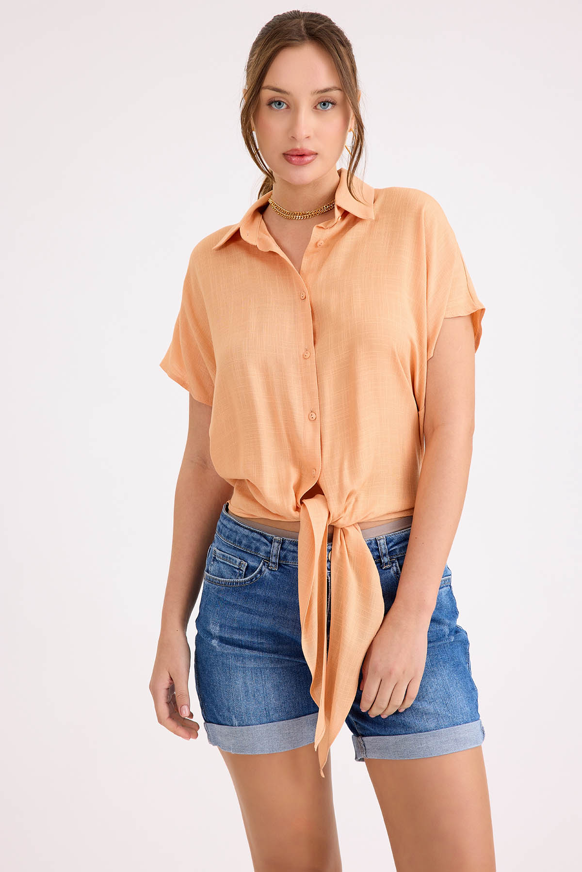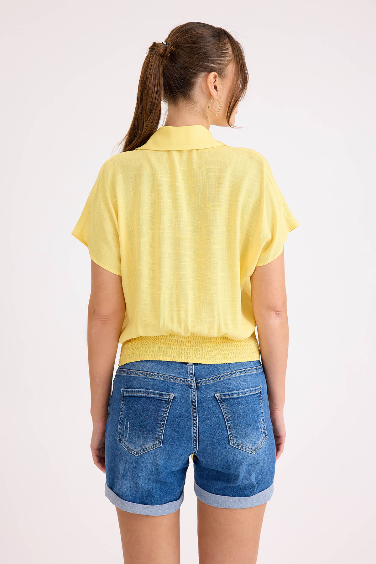 Beli Bağlamalı Kısa Kol Salaş Gömlek