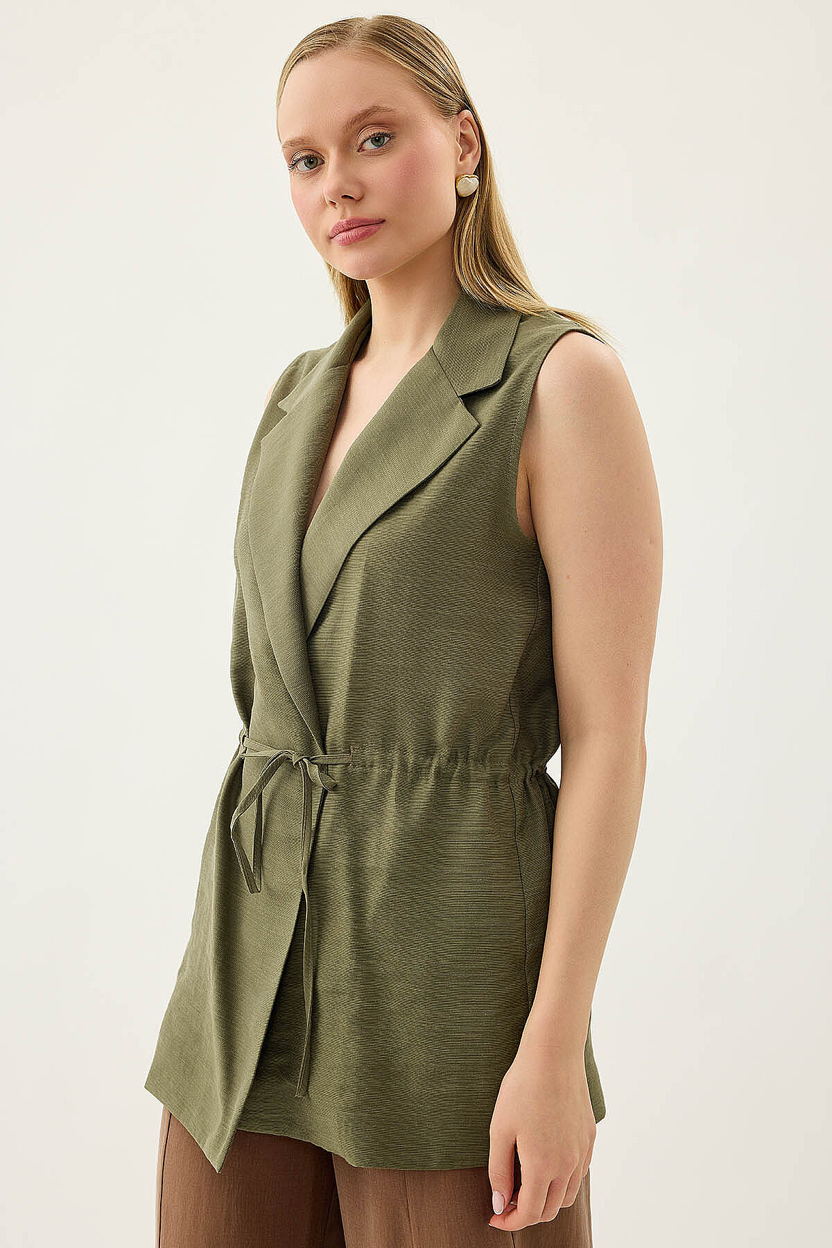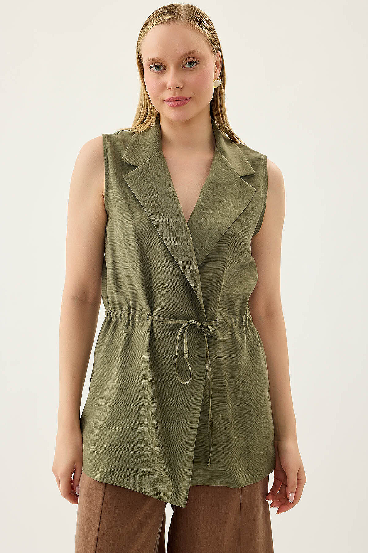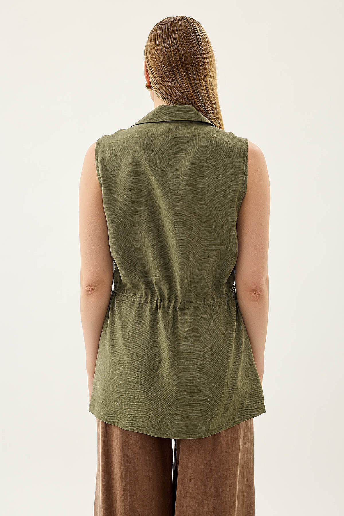 Beli Büzgü Kapamalı Yelek Haki