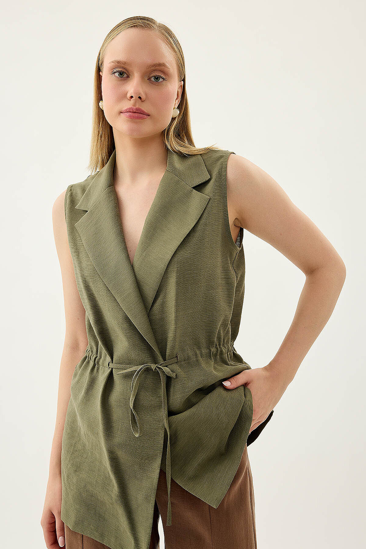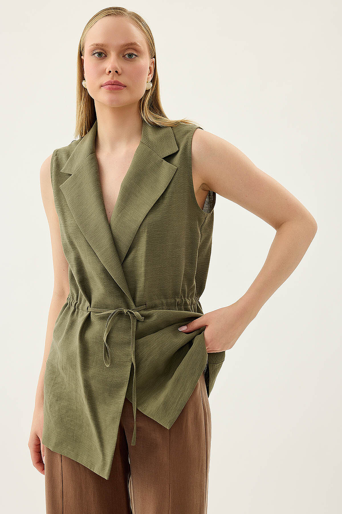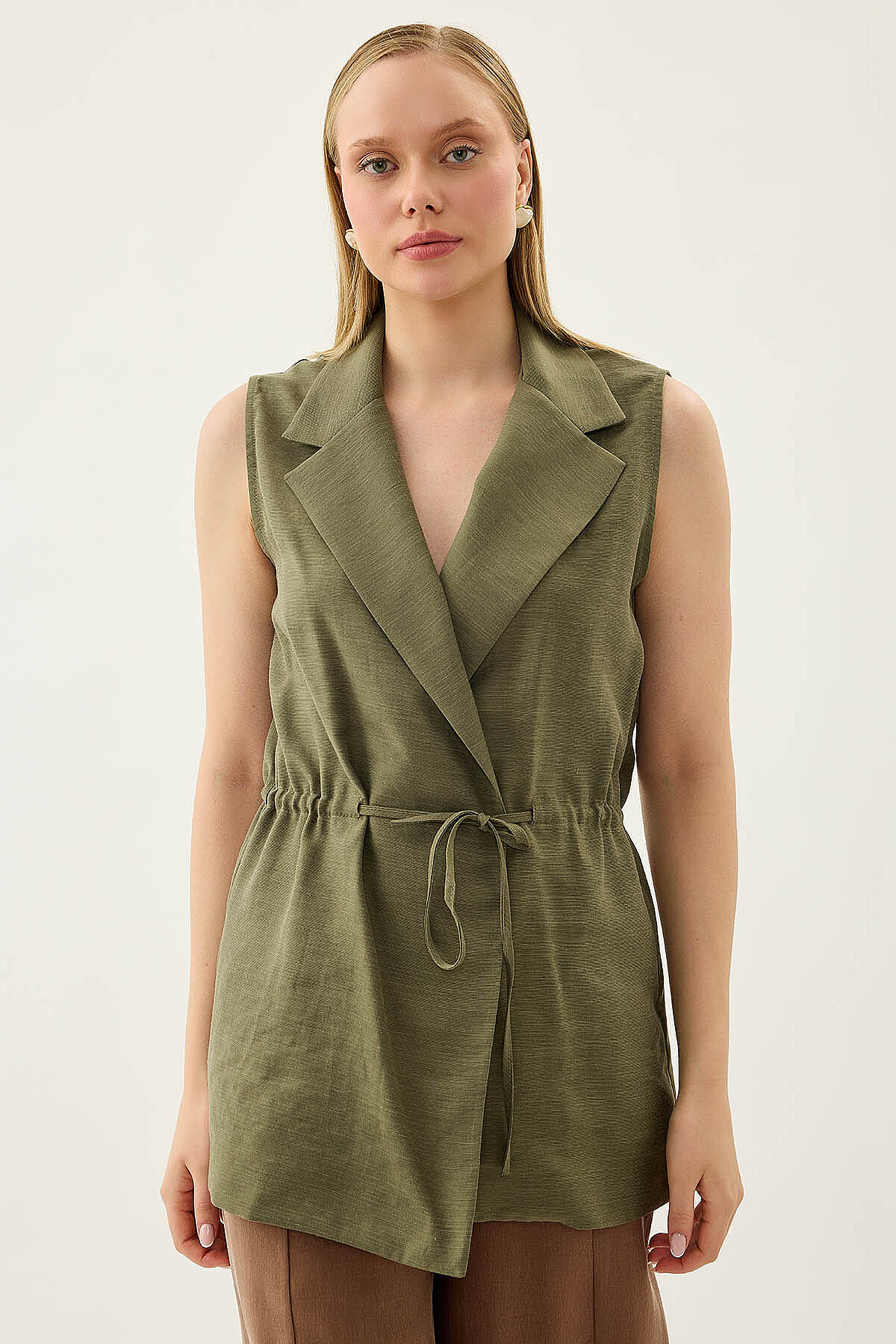 Beli Büzgü Kapamalı Yelek Haki