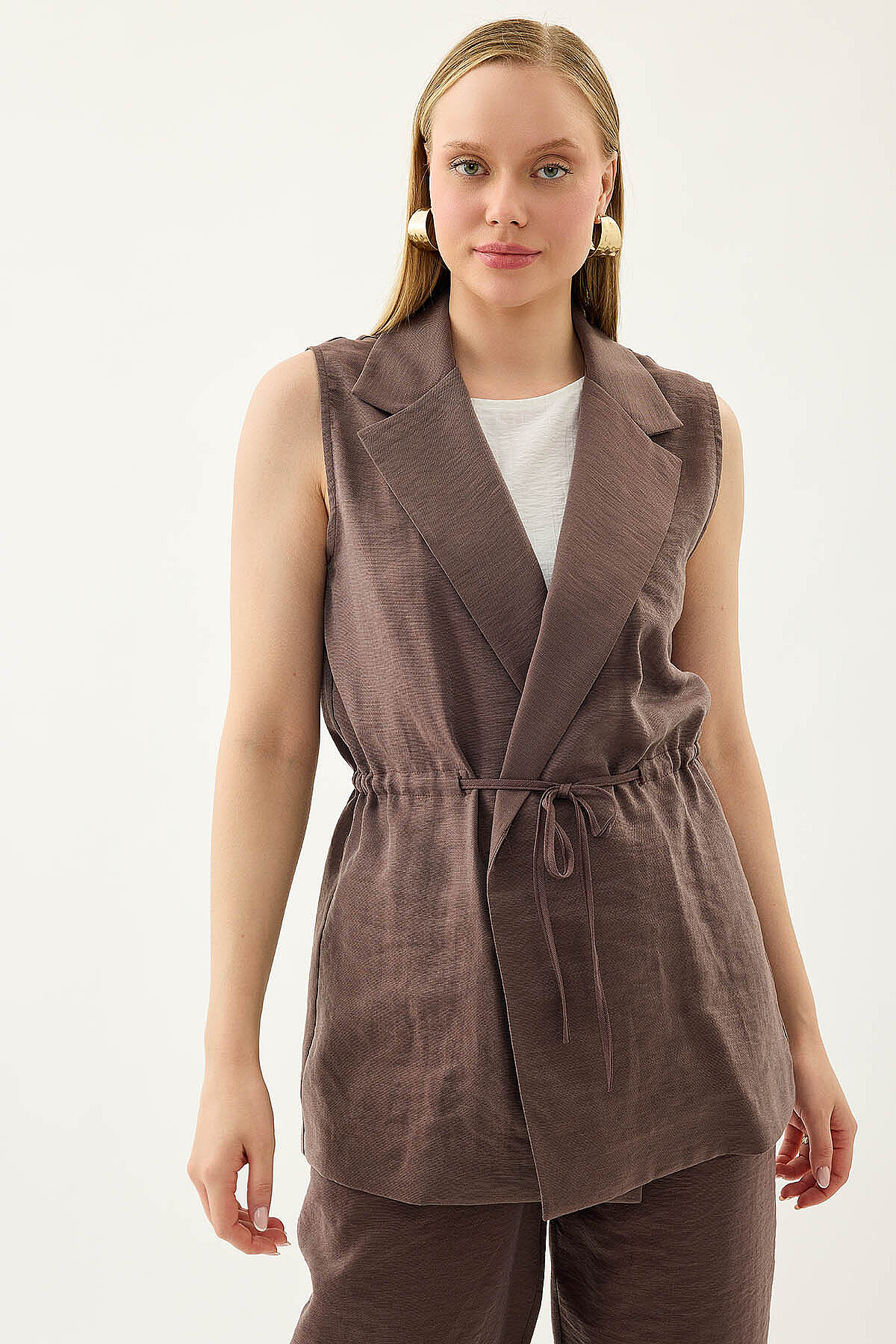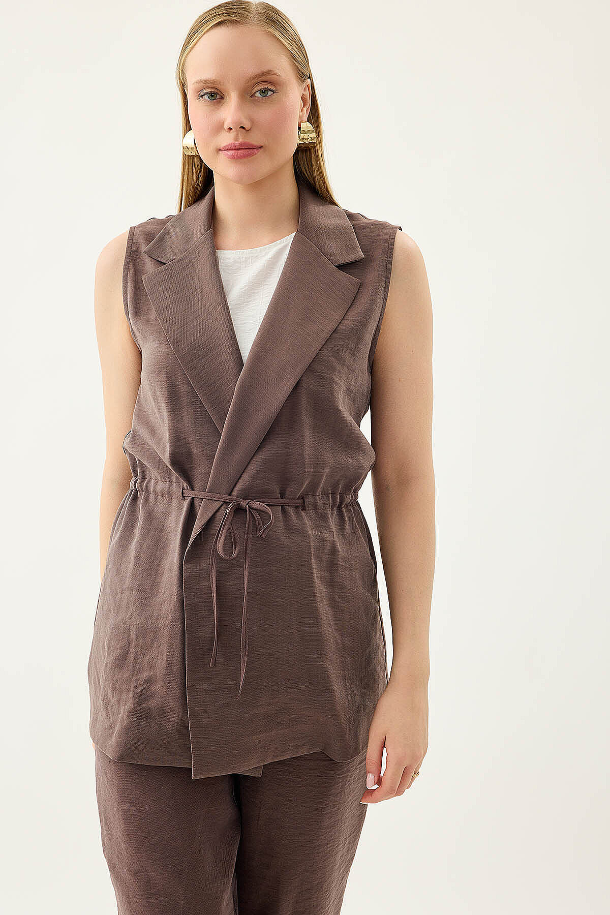 Beli Büzgü Kapamalı Yelek S.Kahve