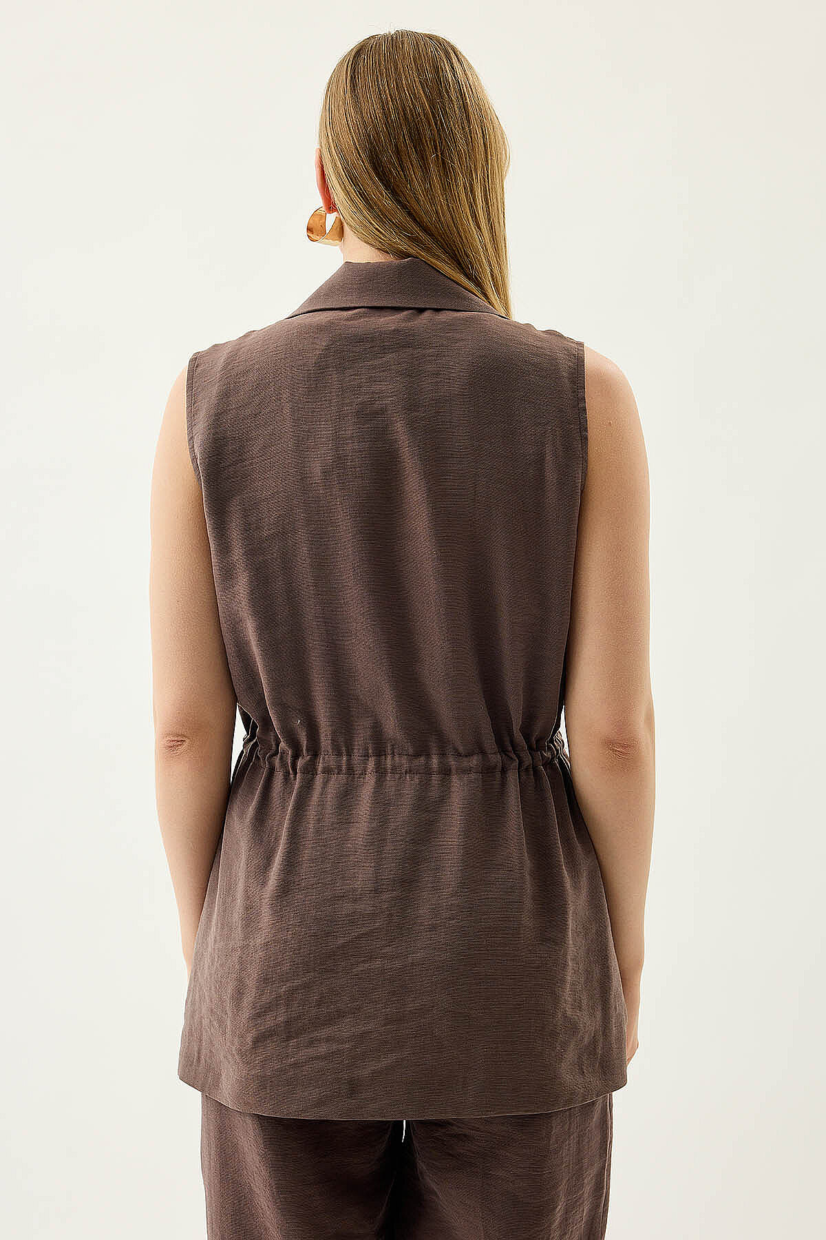 Beli Büzgü Kapamalı Yelek Kahve
