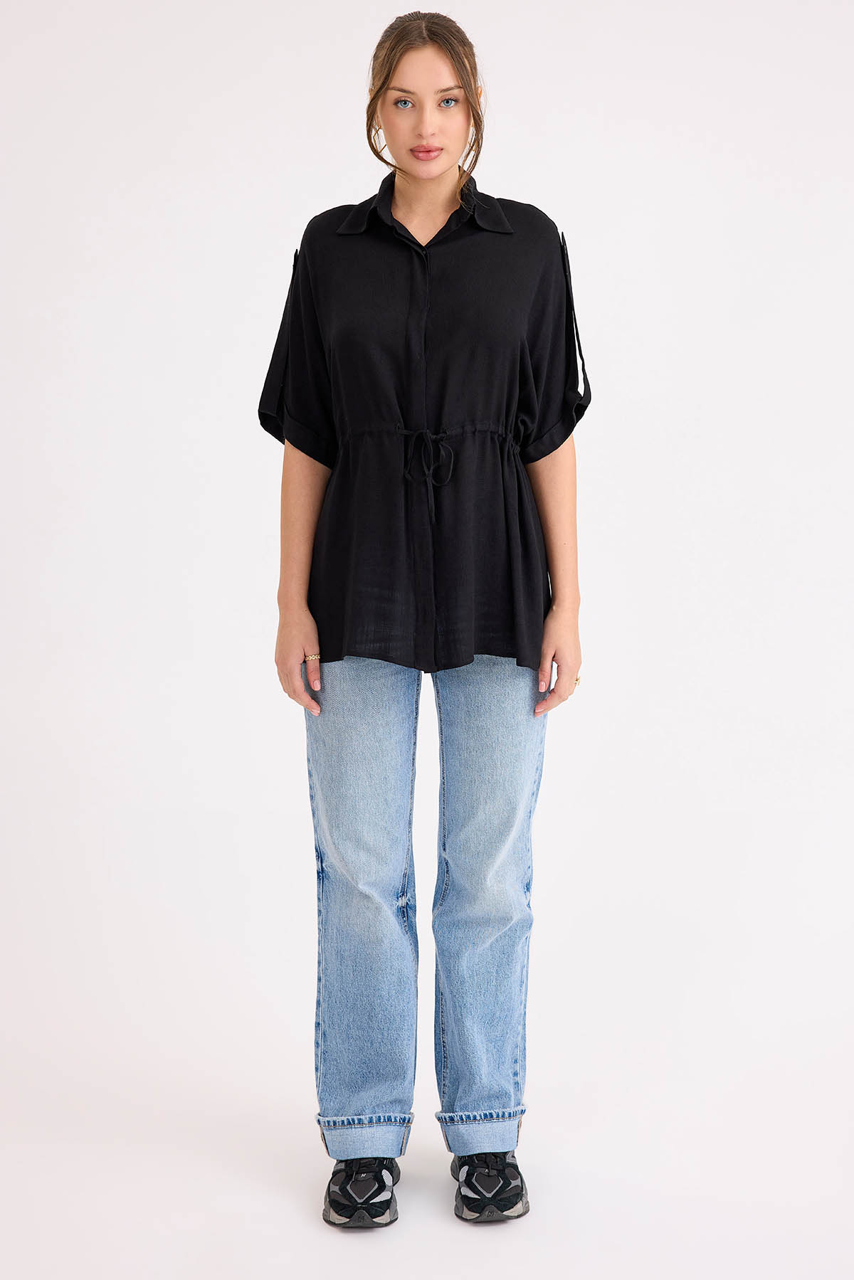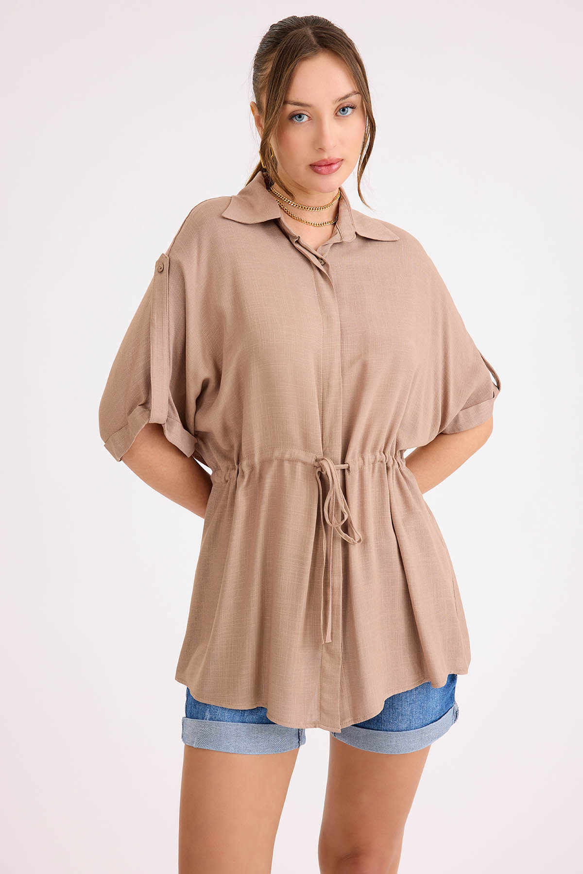 Beli Lastikli Düşük Omuz Salaş Bluz