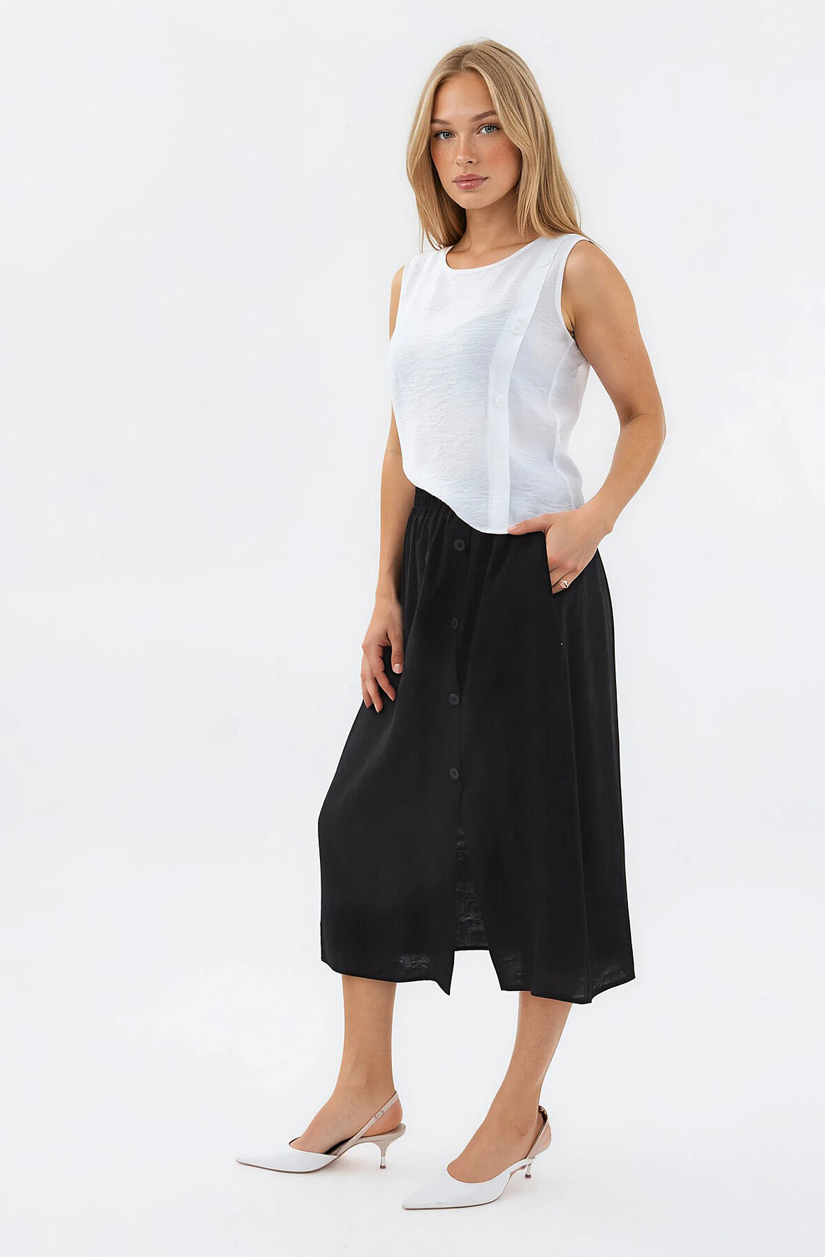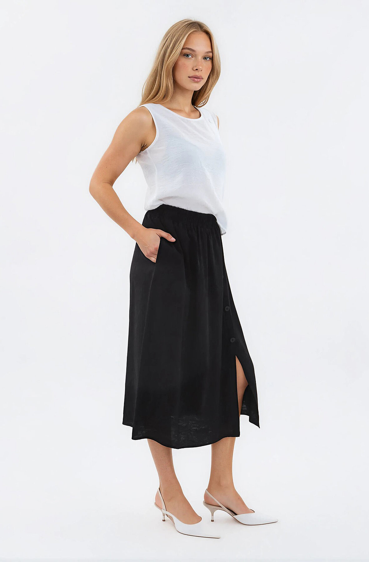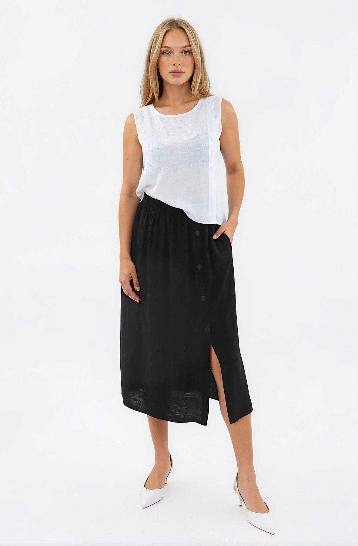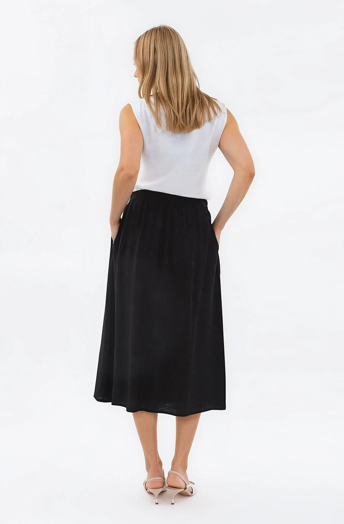 Beli Lastikli Kendinden Desenli Düğmeli Etek Siyah