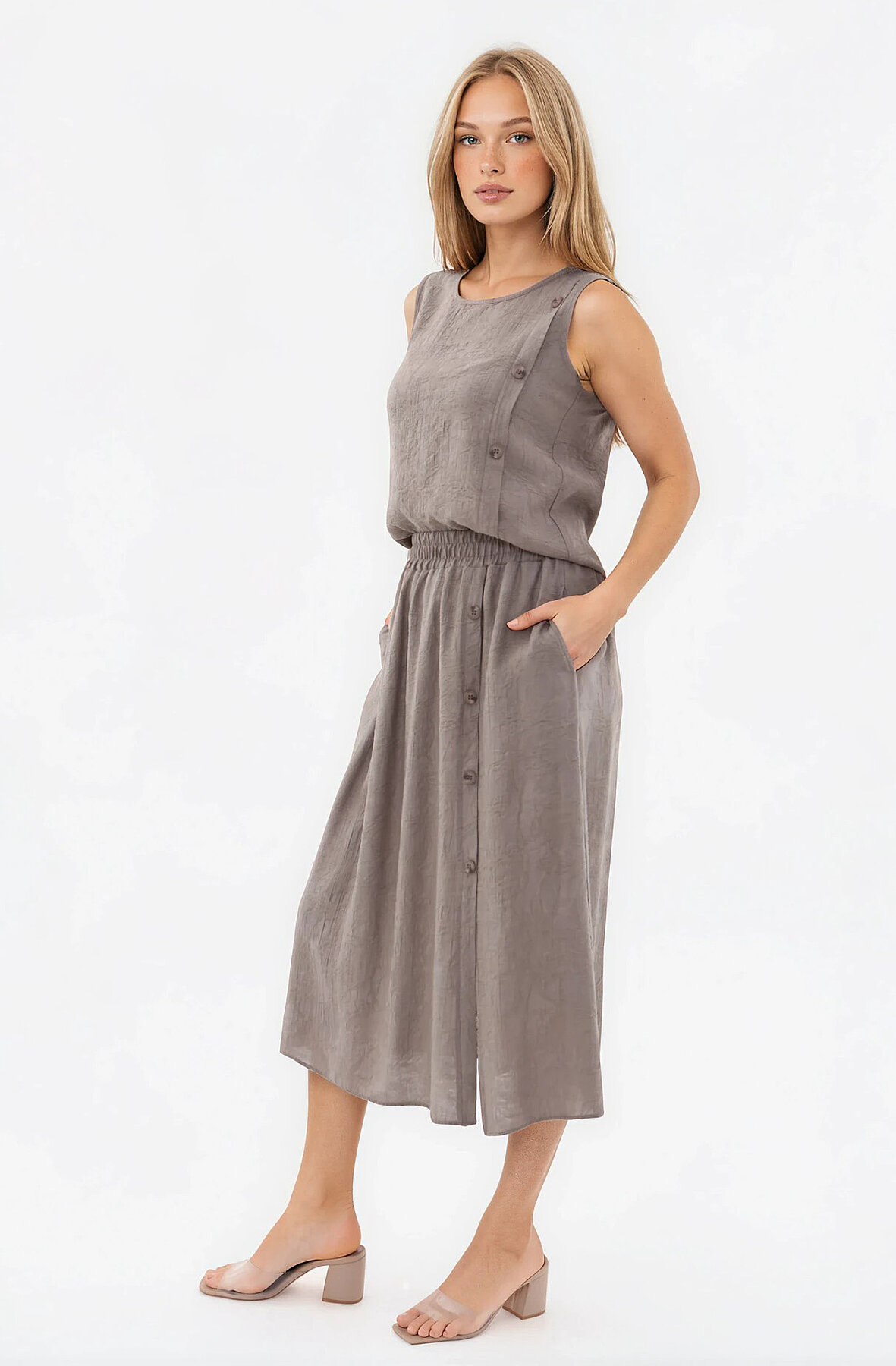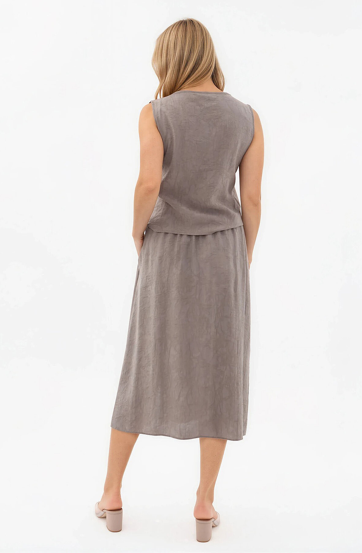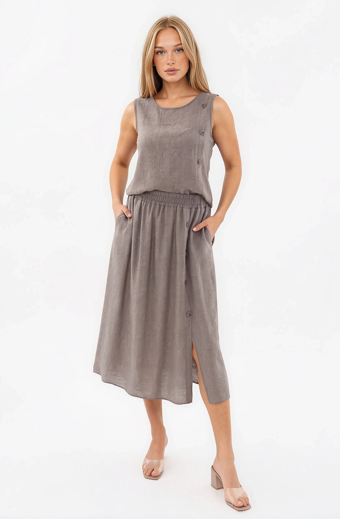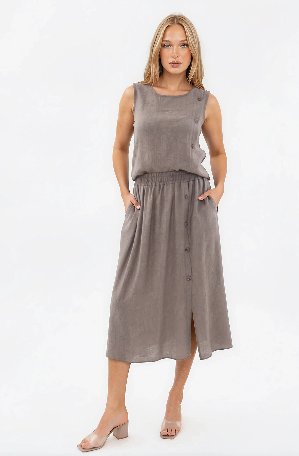 Beli Lastikli Kendinden Desenli Düğmeli Etek Duman