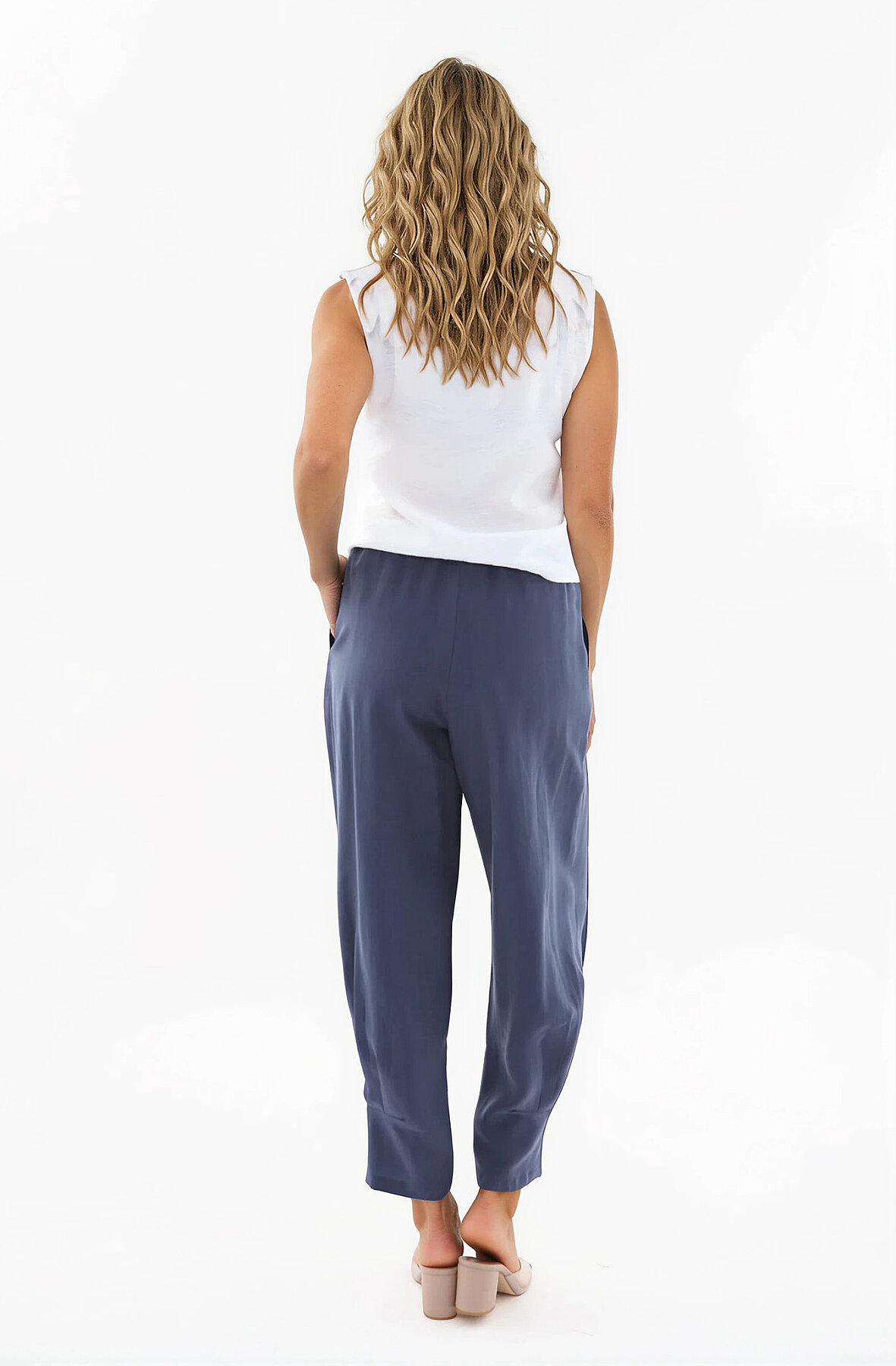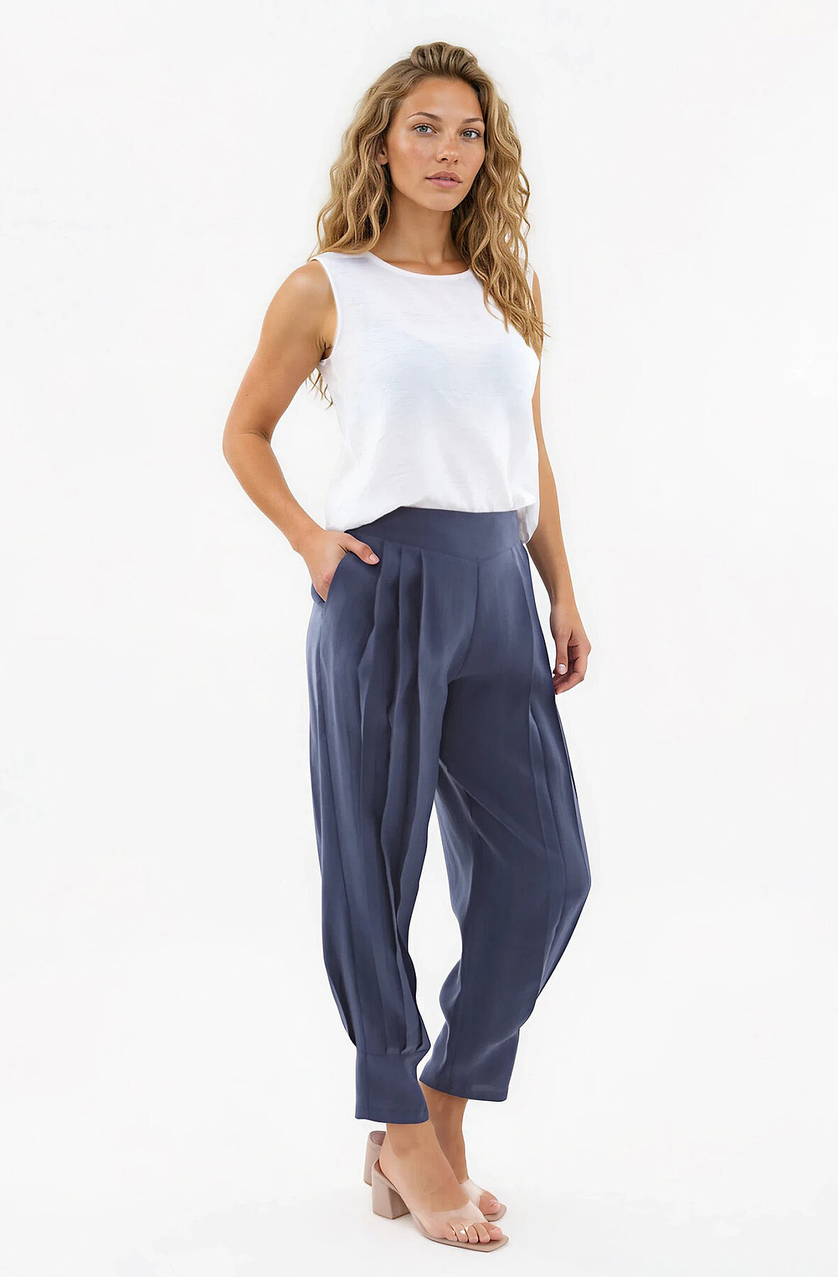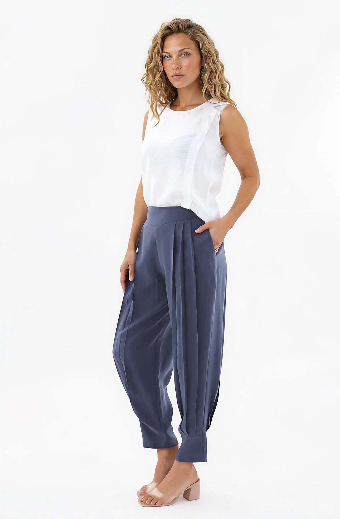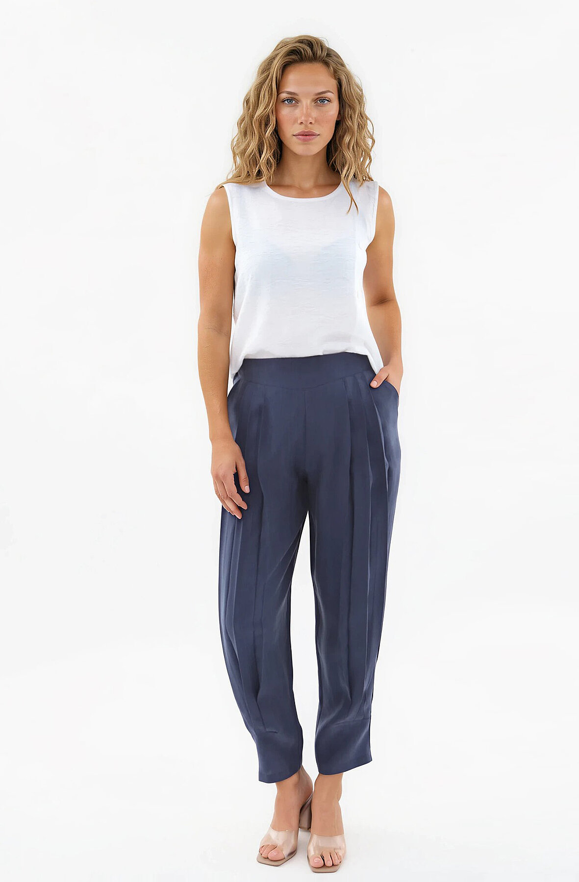 Beli Lastikli Önü Pileli Pantolon Lacivert