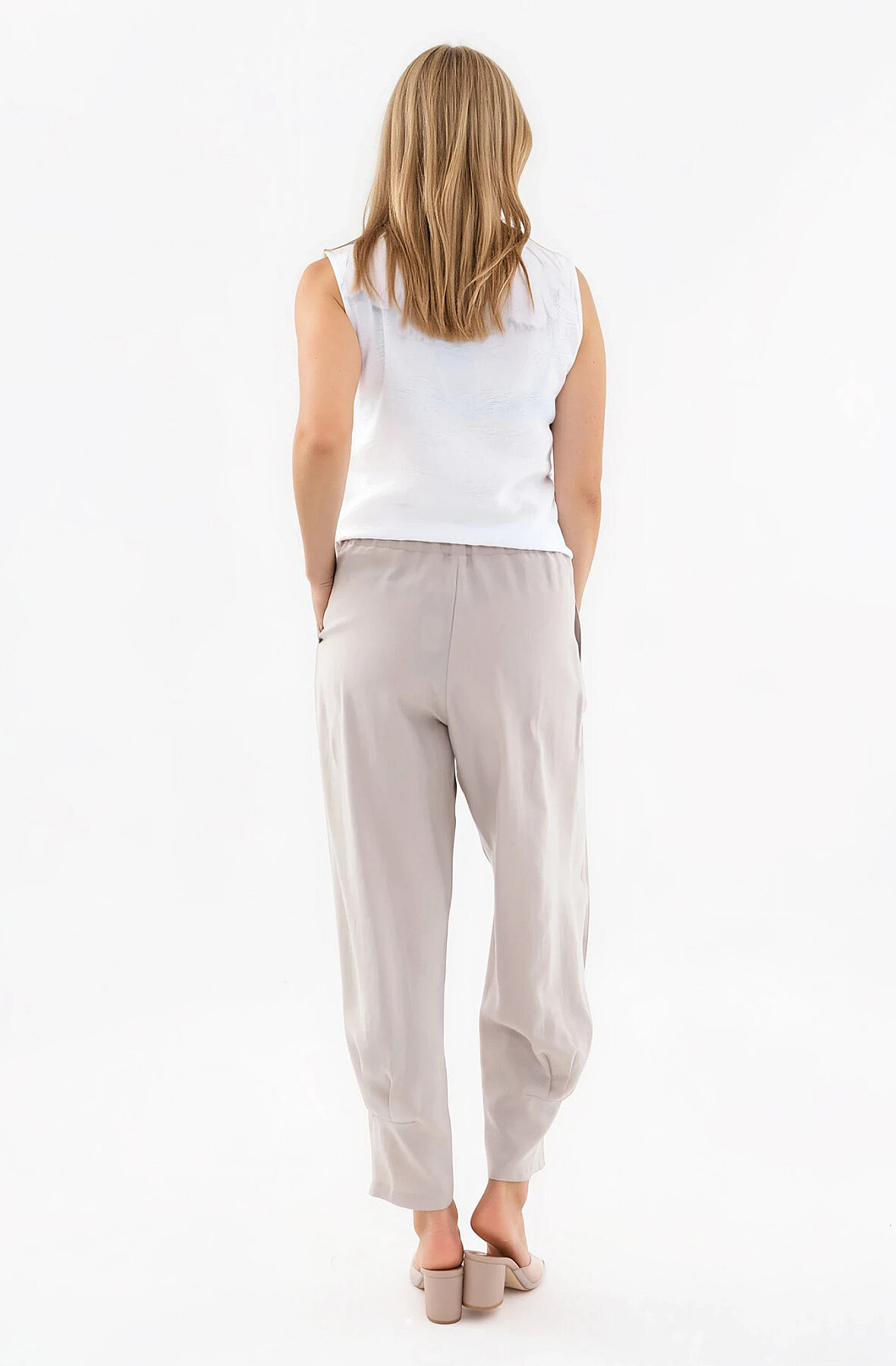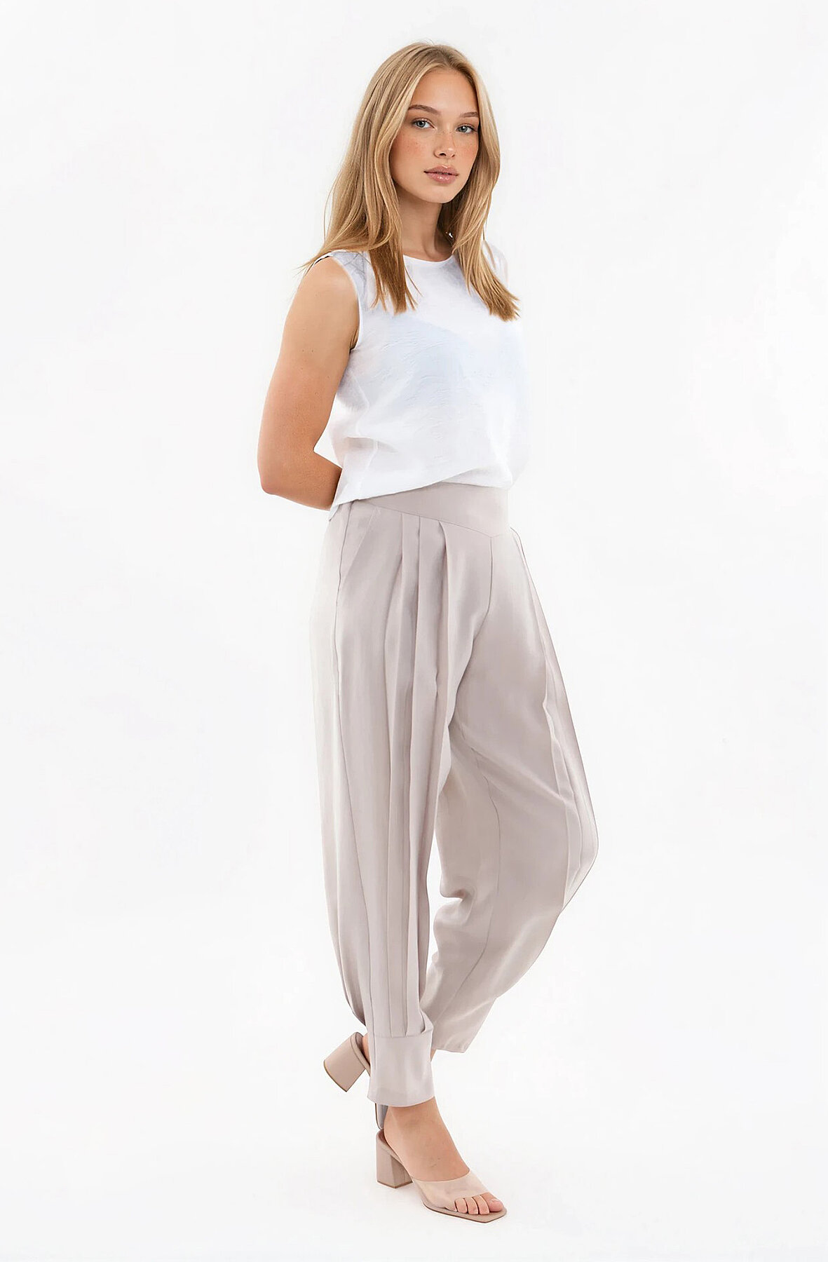 Beli Lastikli Önü Pileli Pantolon Bej