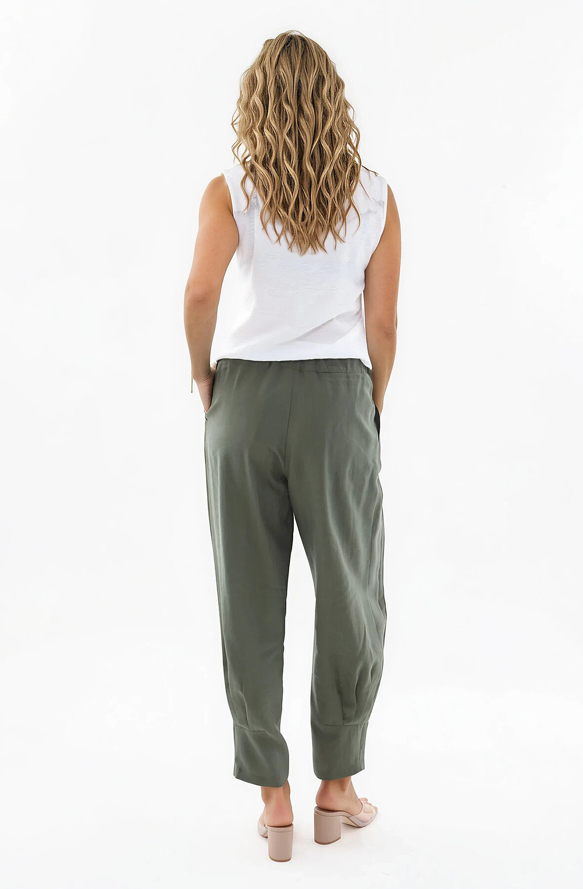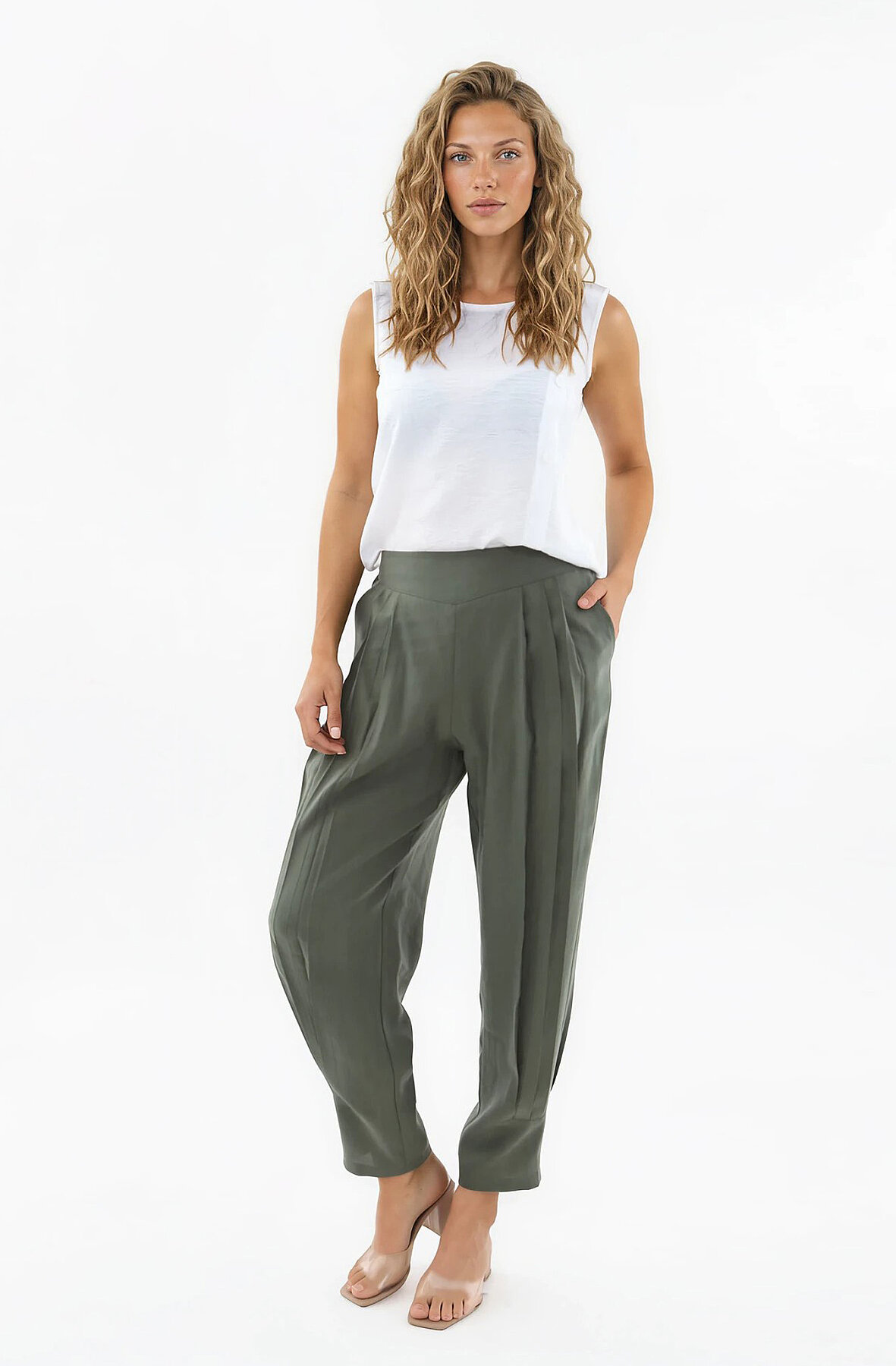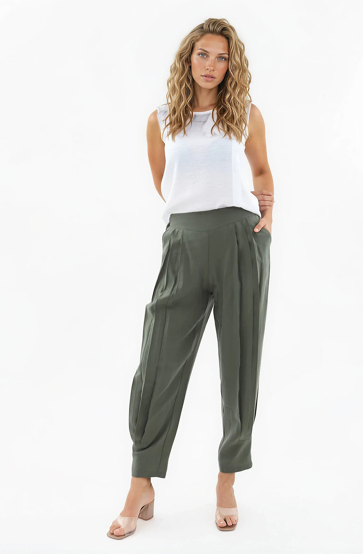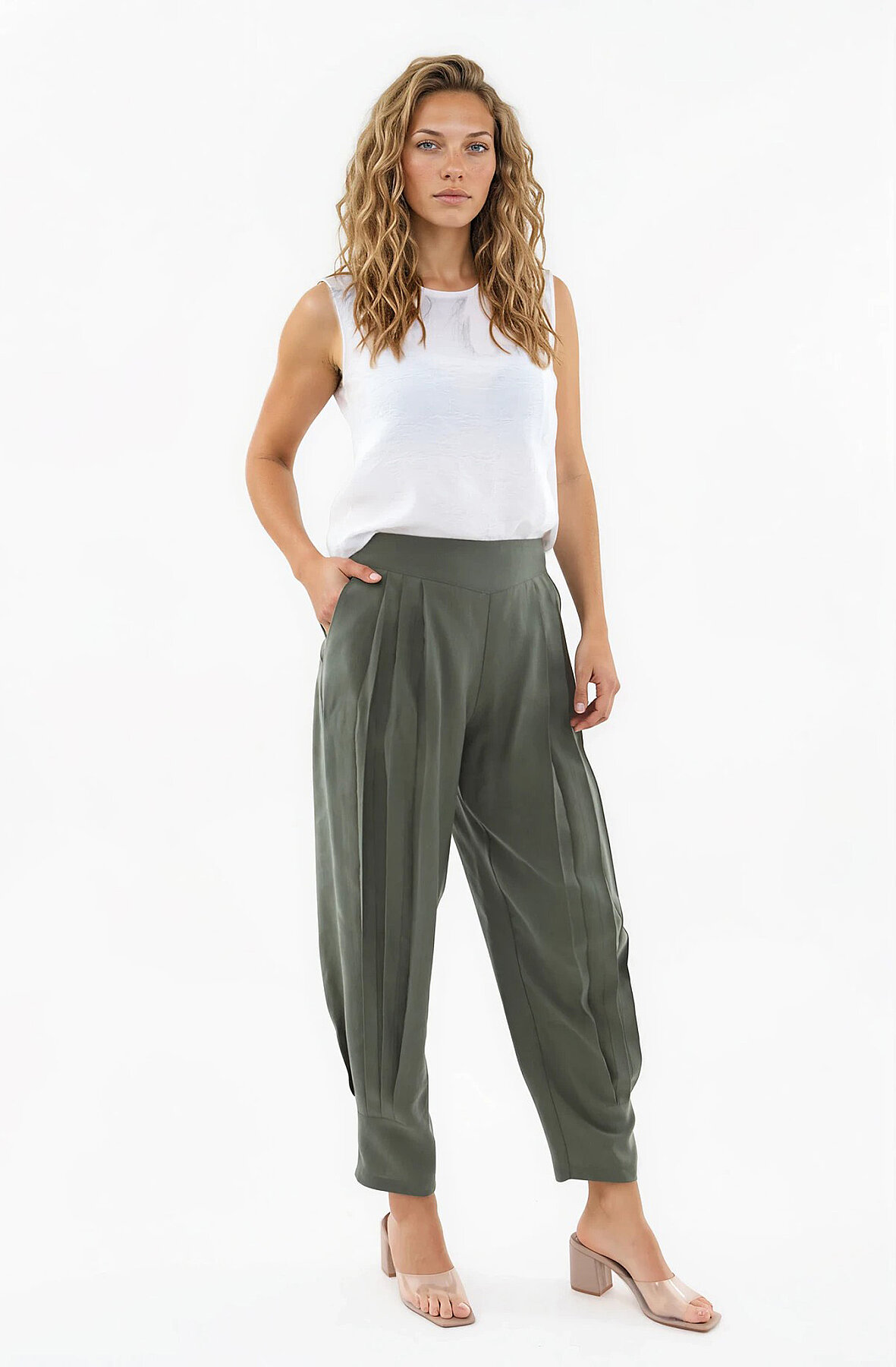 Beli Lastikli Önü Pileli Pantolon Haki