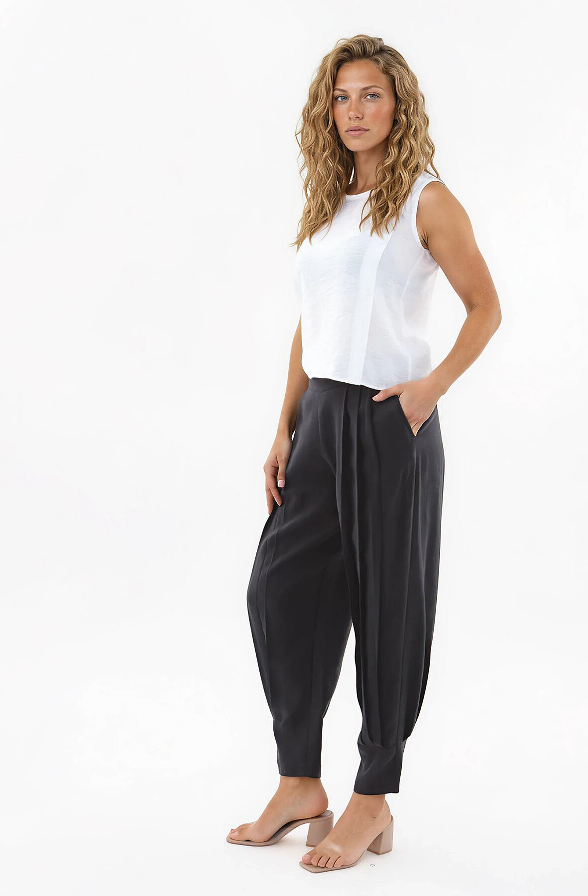 Beli Lastikli Önü Pileli Pantolon