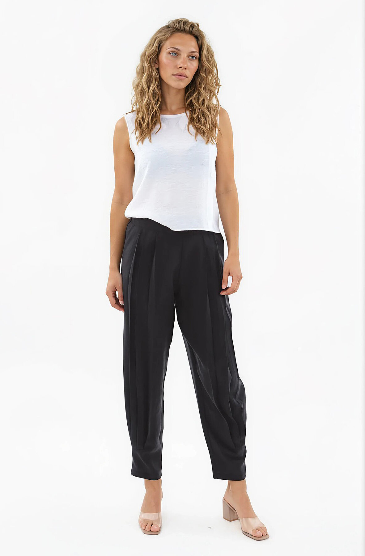 Beli Lastikli Önü Pileli Pantolon Siyah