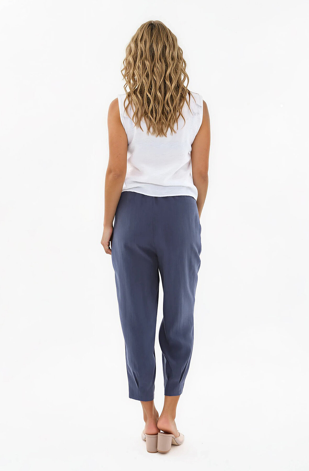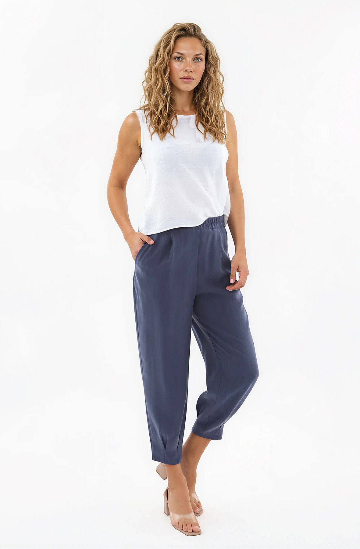 Beli Lastikli Pileli Havuç Pantolon Lacivert