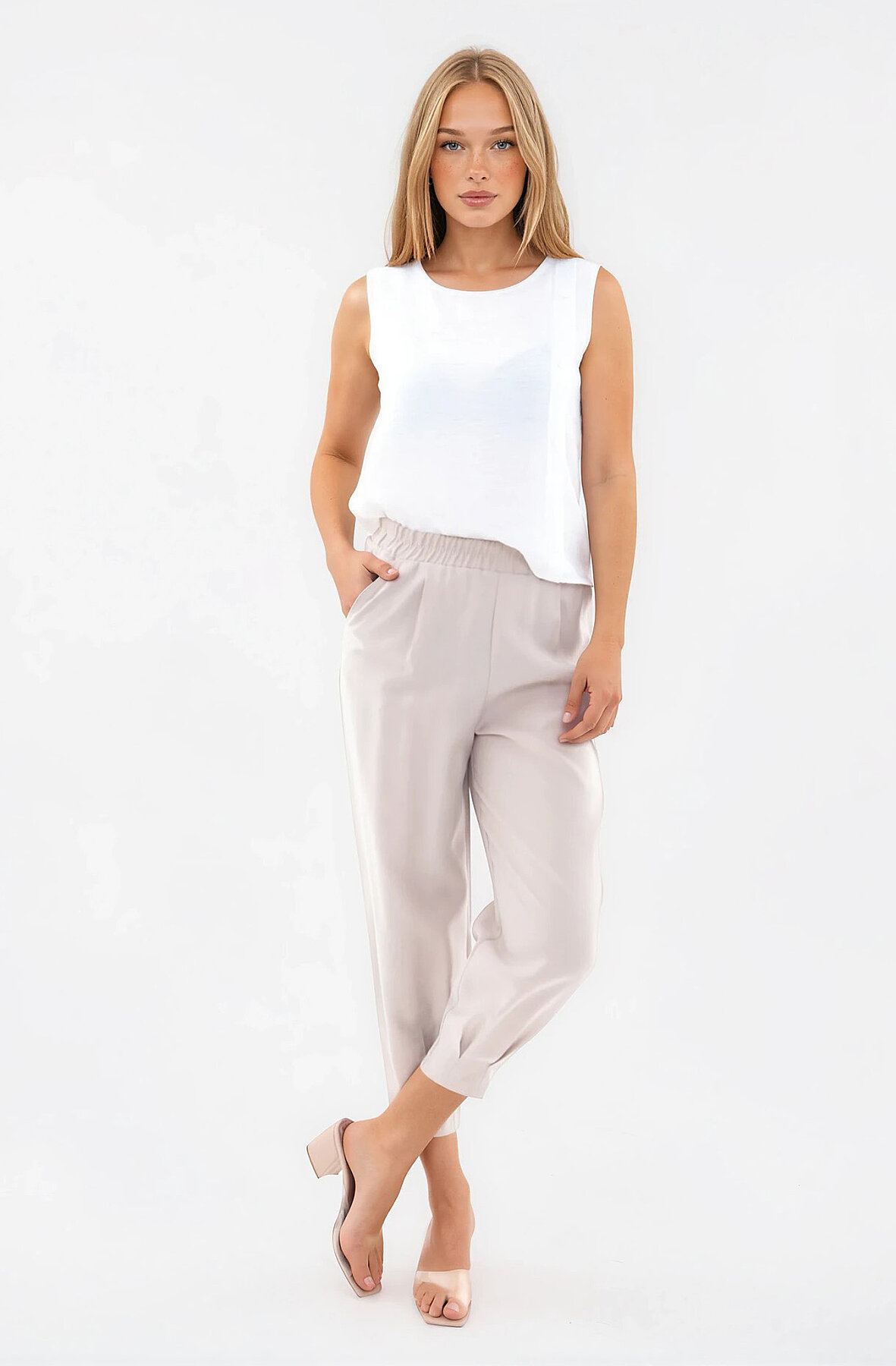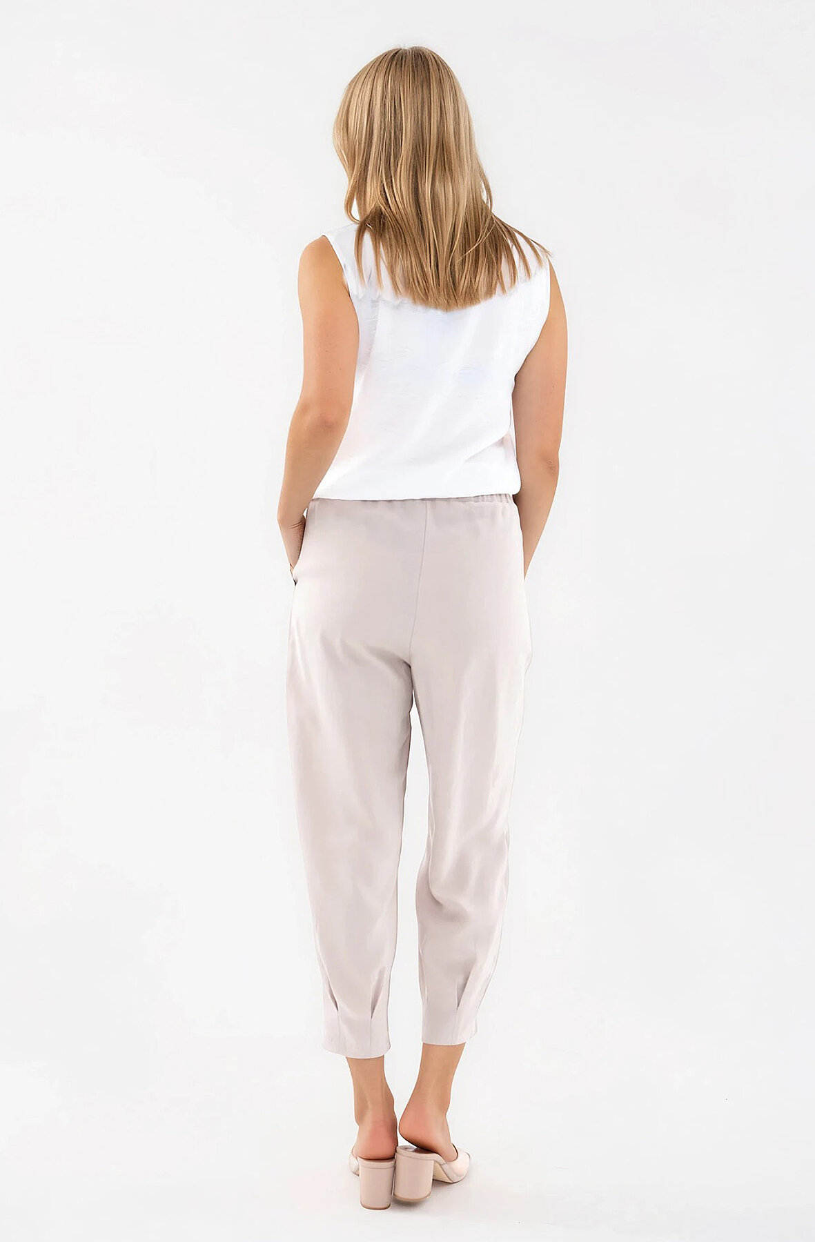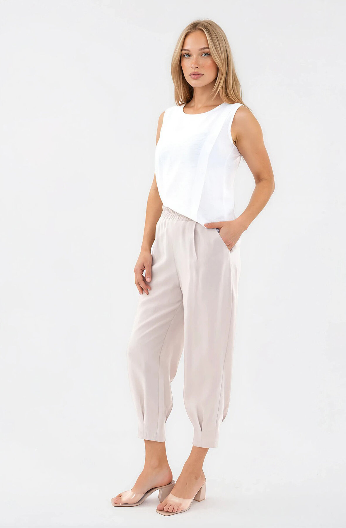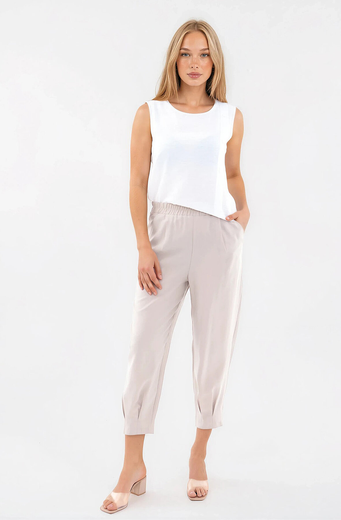 Beli Lastikli Pileli Havuç Pantolon Bej