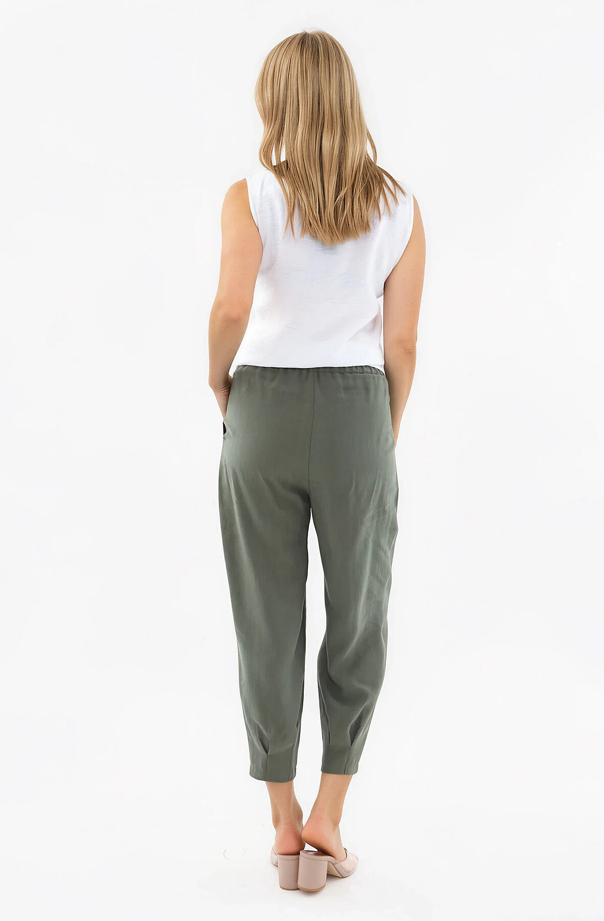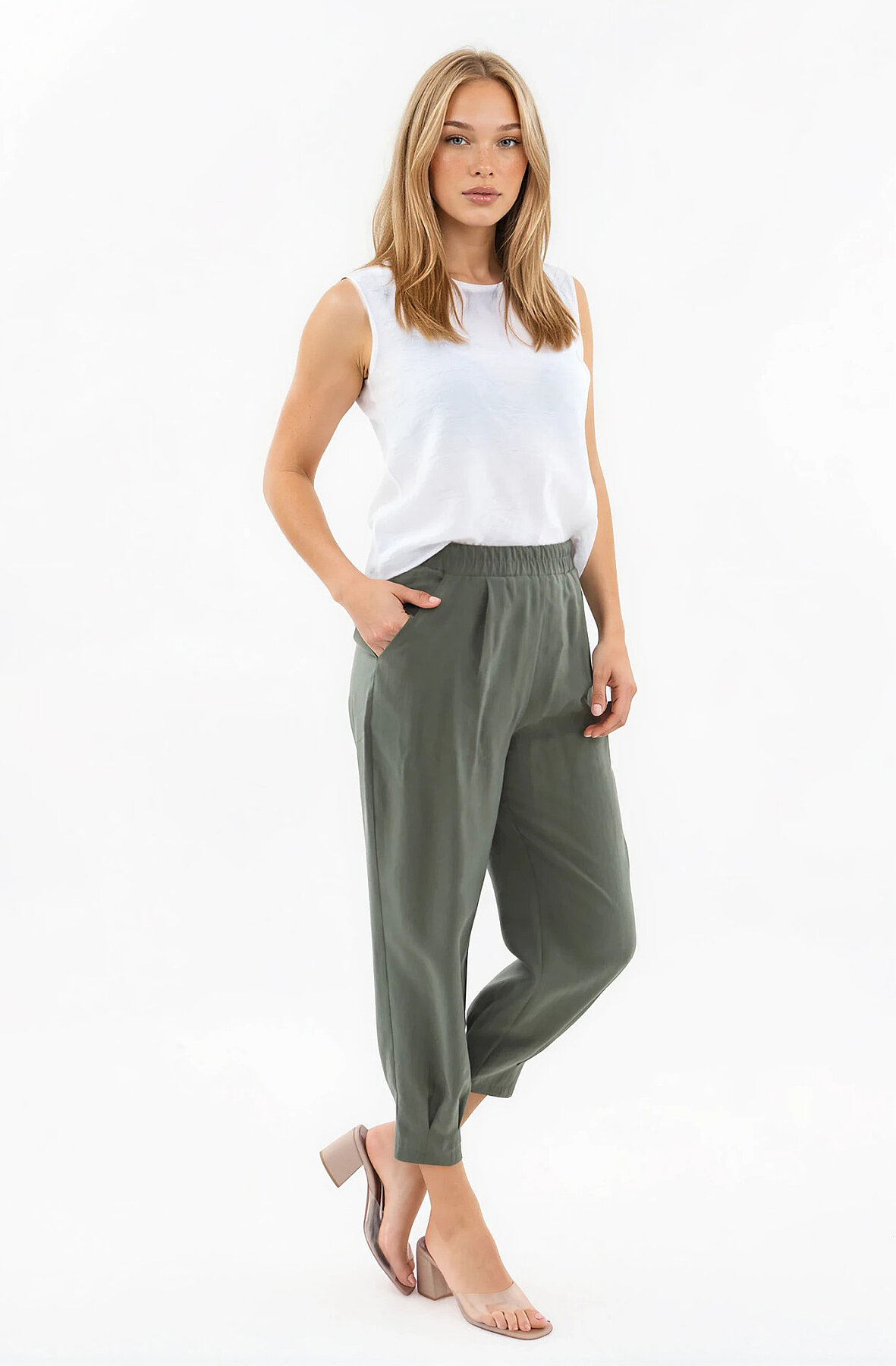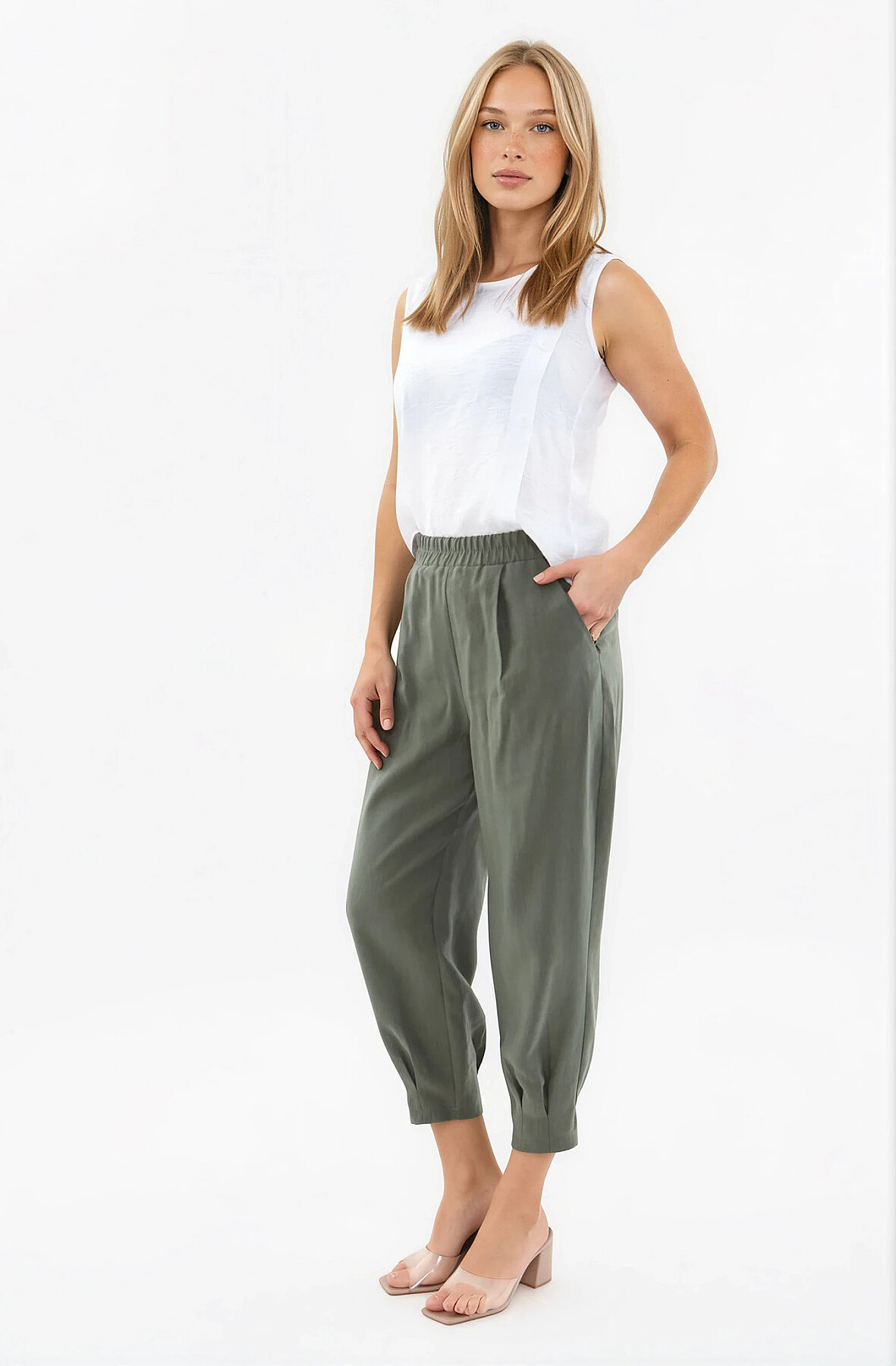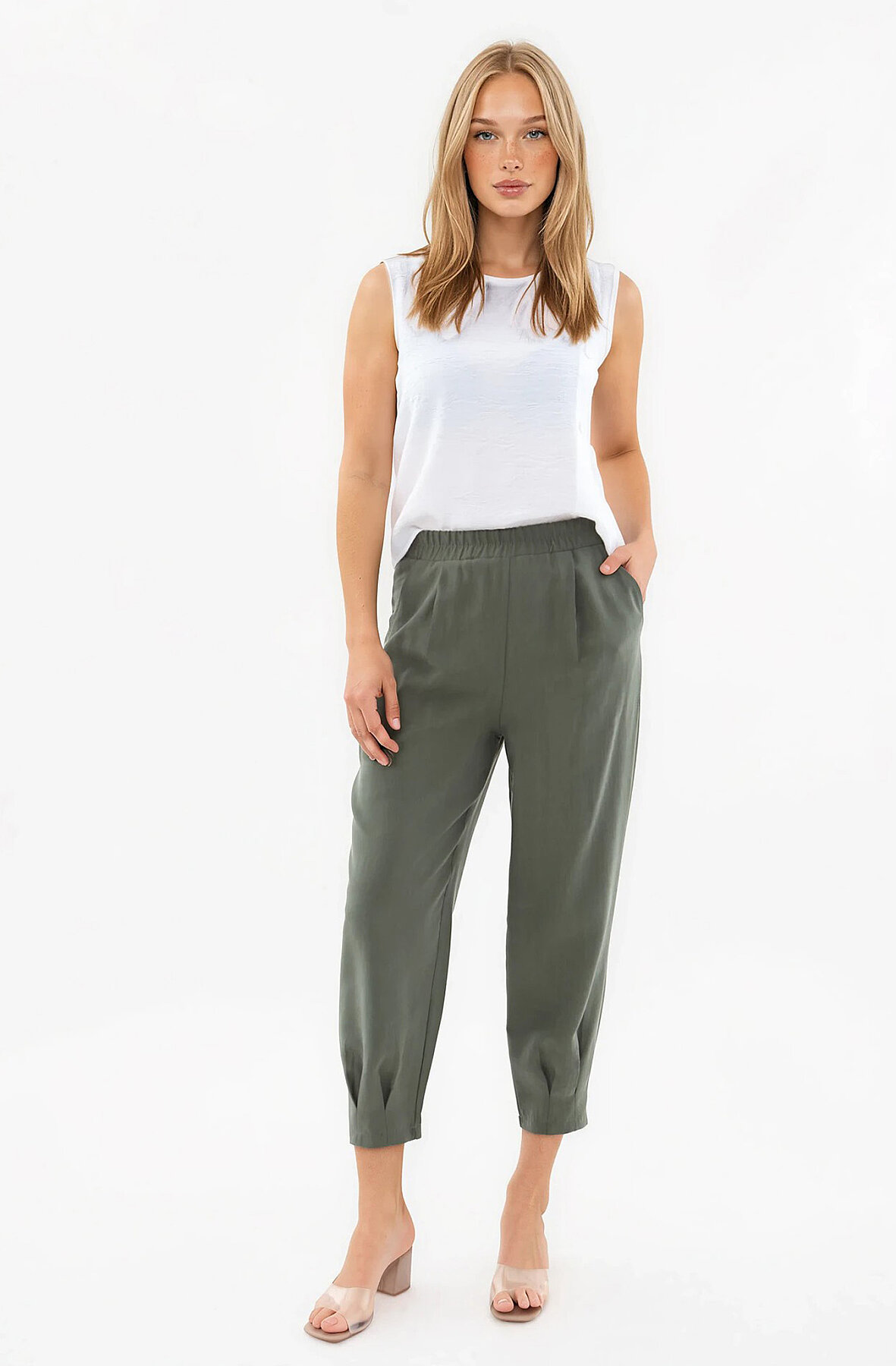 Beli Lastikli Pileli Havuç Pantolon Haki
