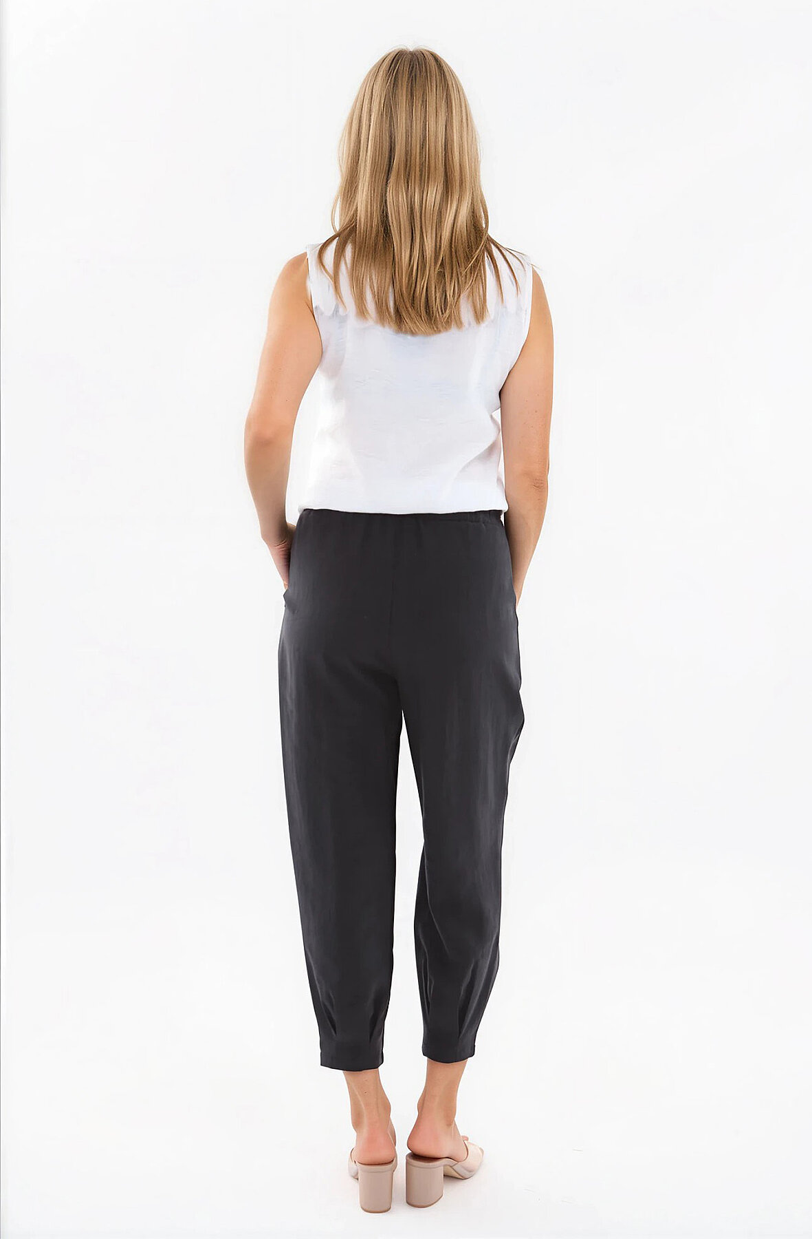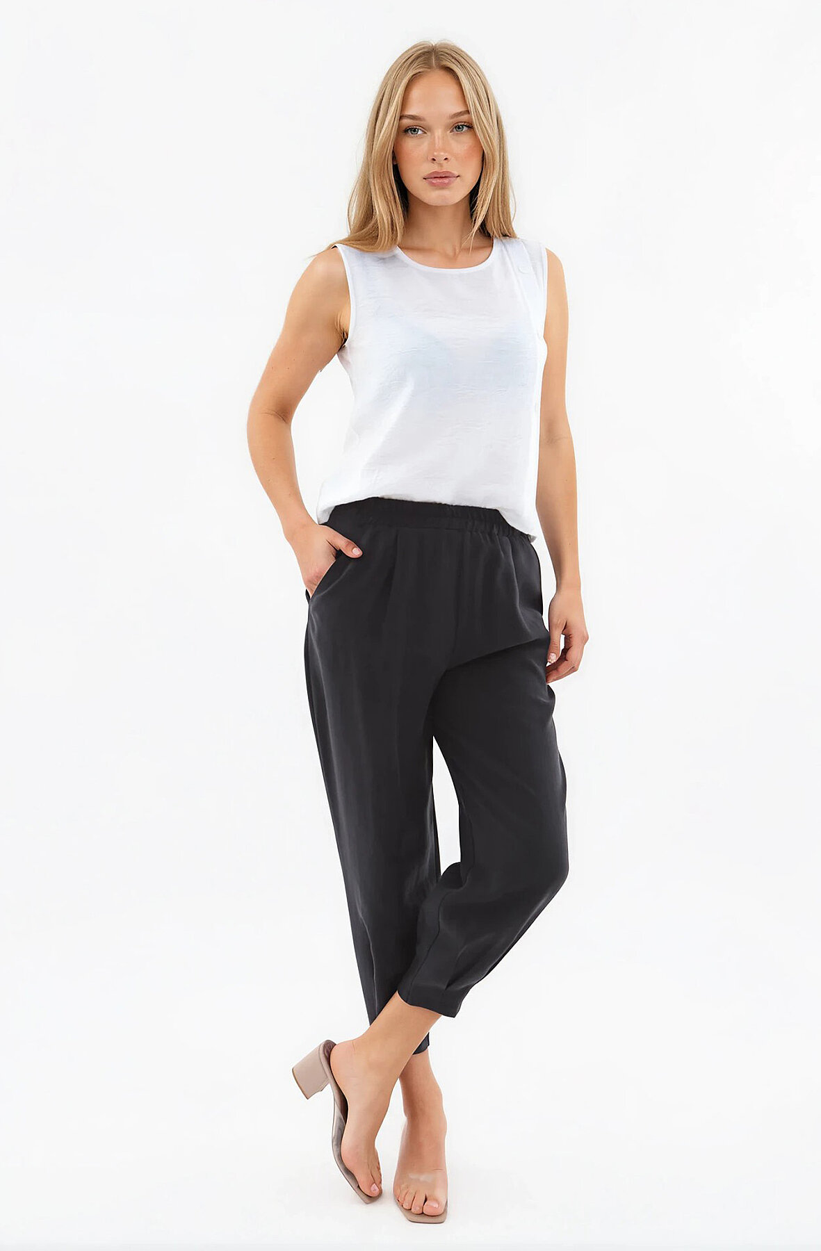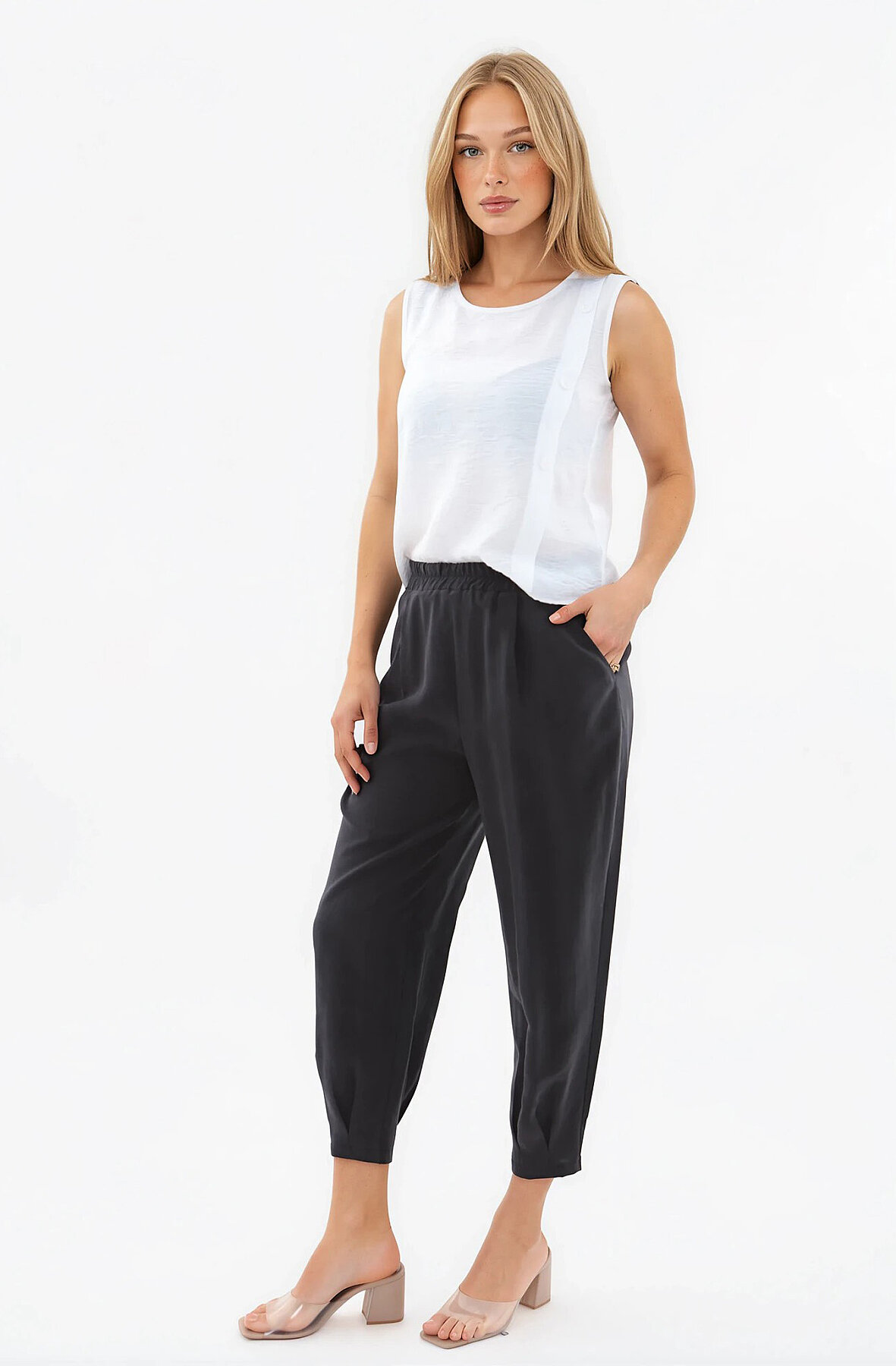 Beli Lastikli Pileli Havuç Pantolon Siyah