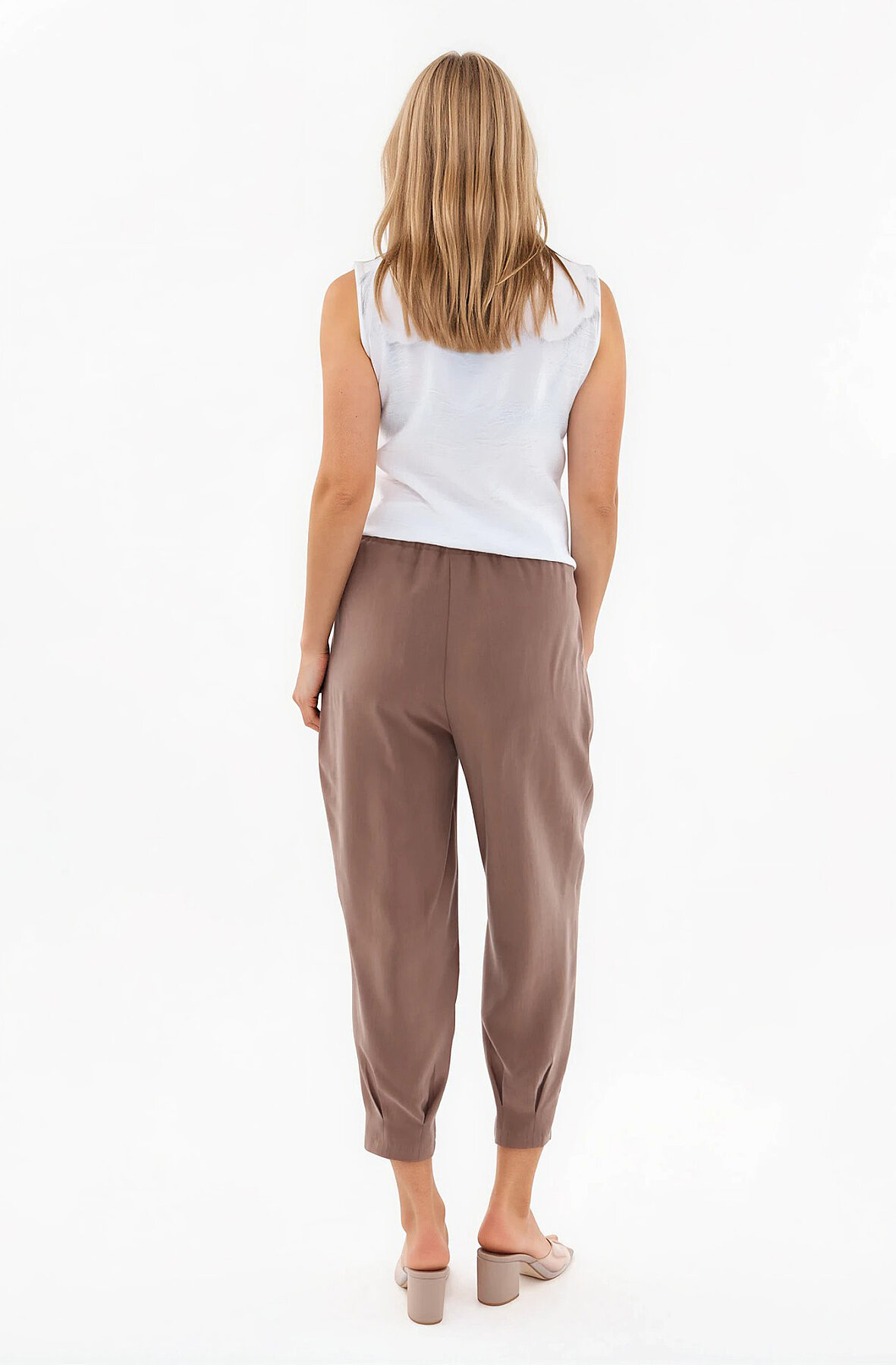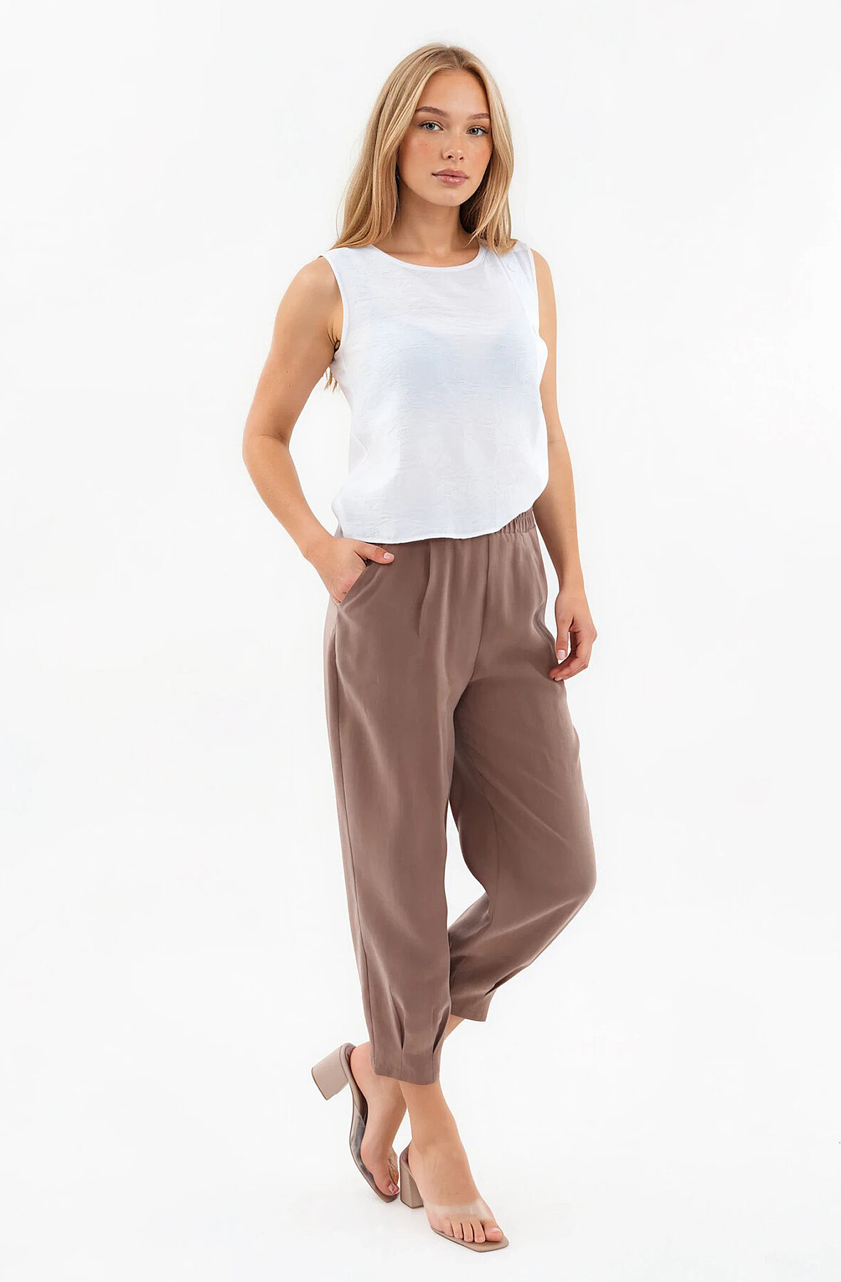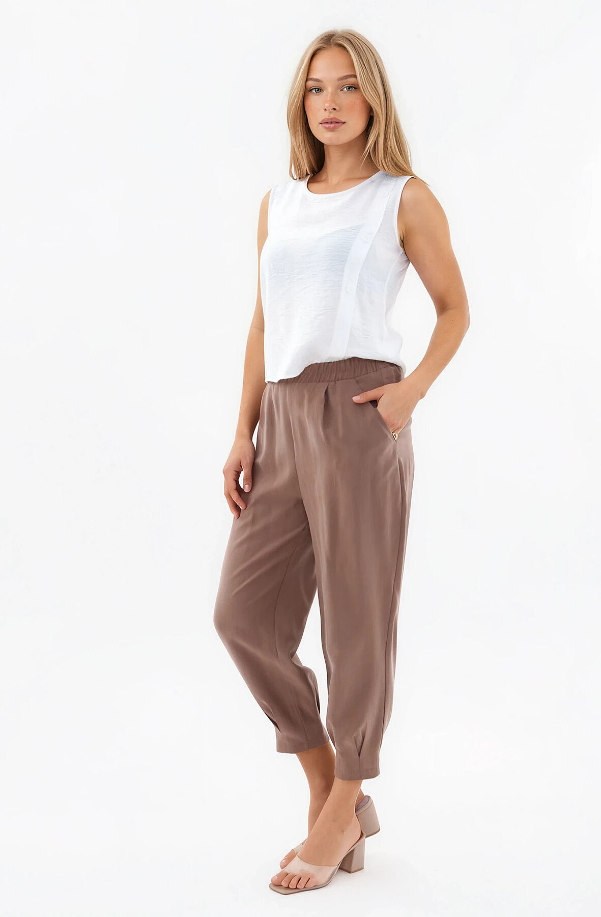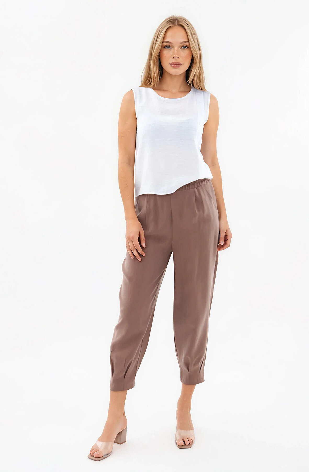 Beli Lastikli Pileli Havuç Pantolon Kahve