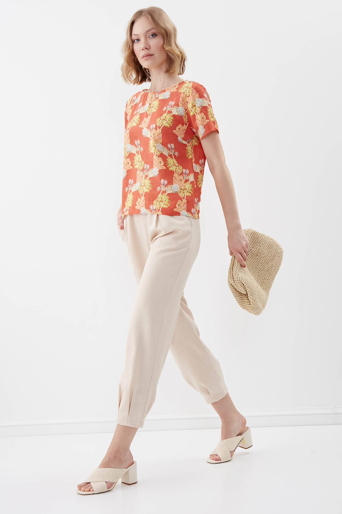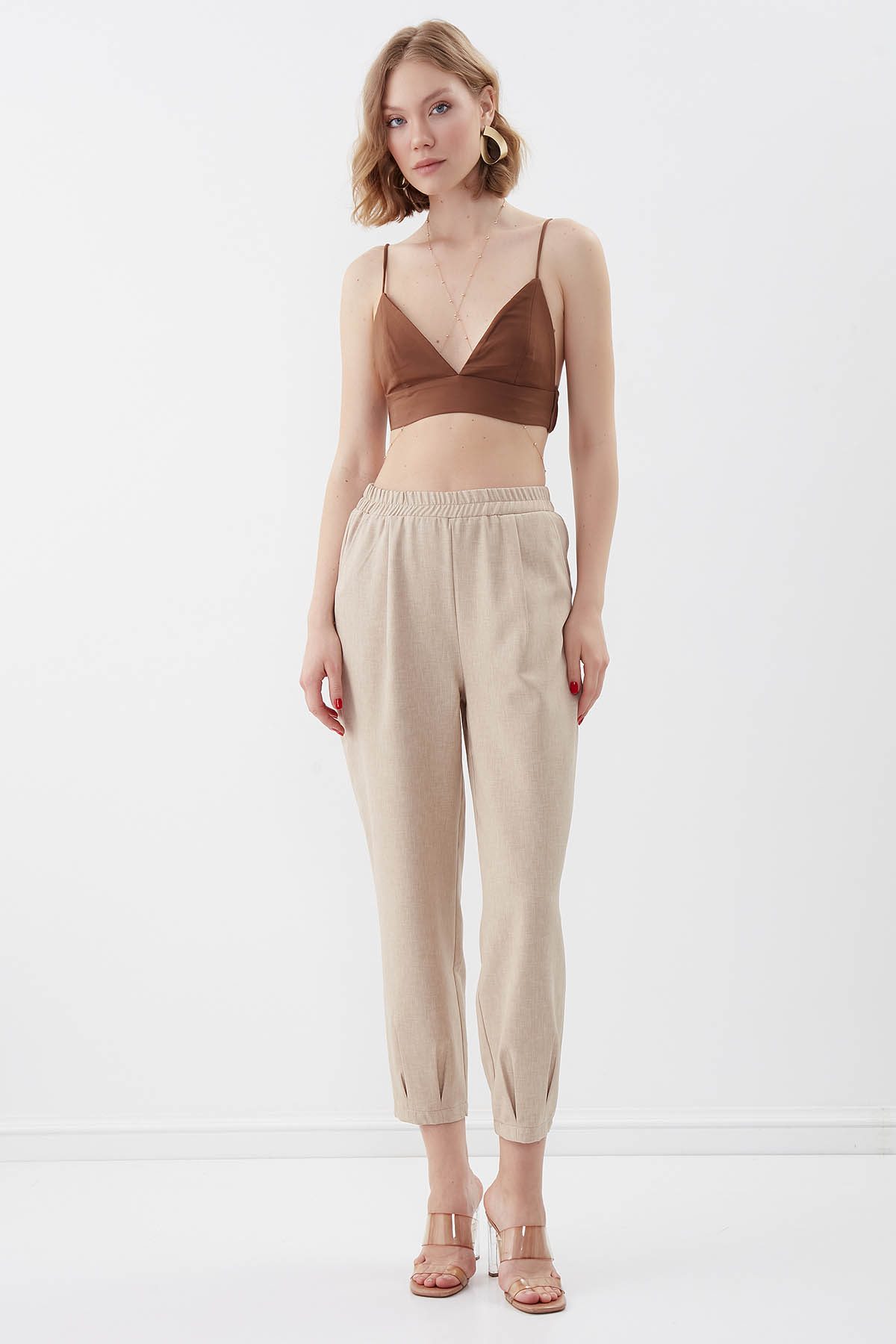 Beli Lastikli Pileli Yüksek Bel Pantolon