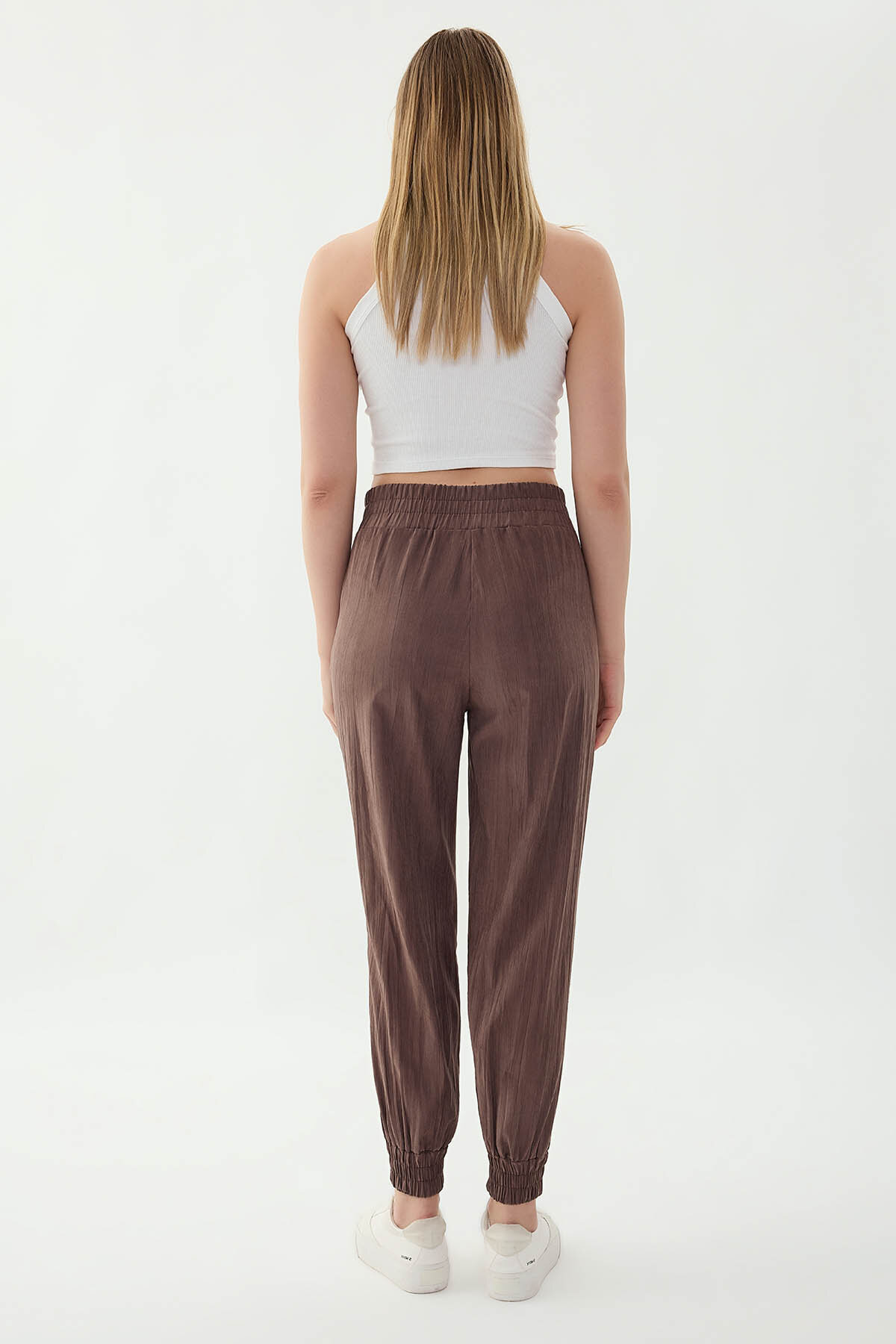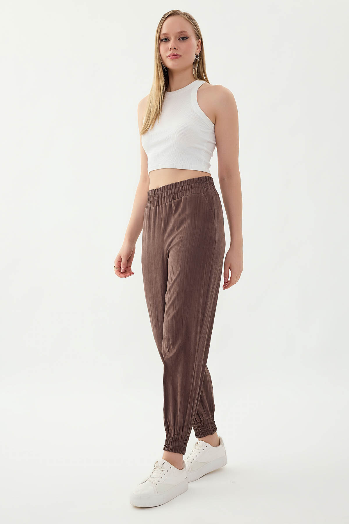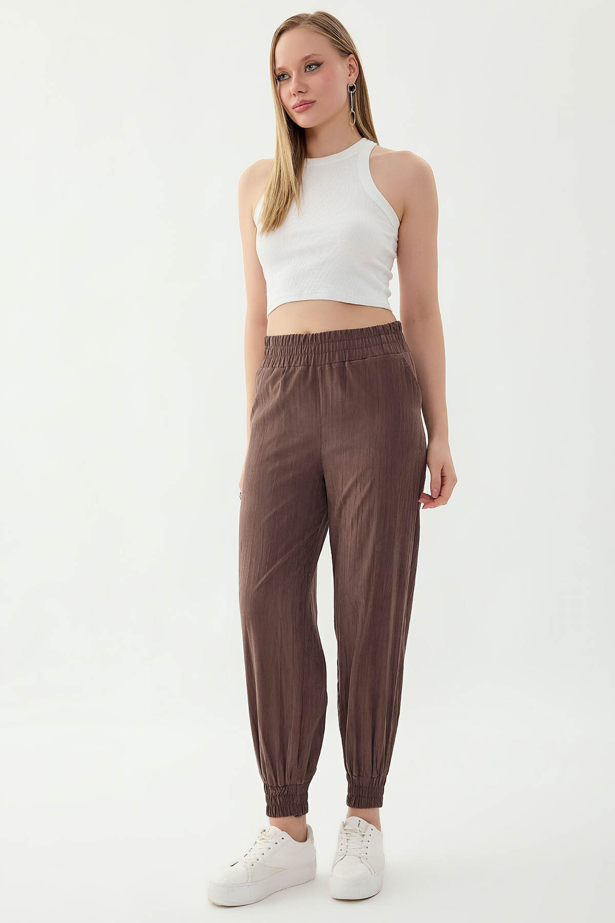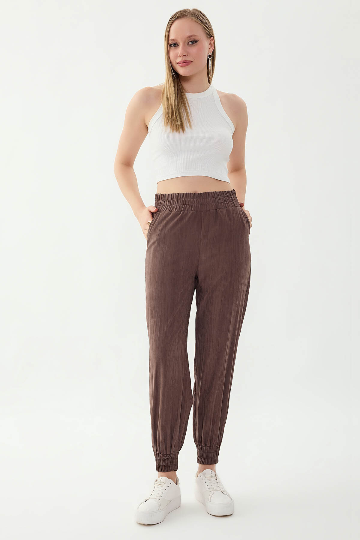 Beli Ve Paçası Lastikli Pantolon Kahve