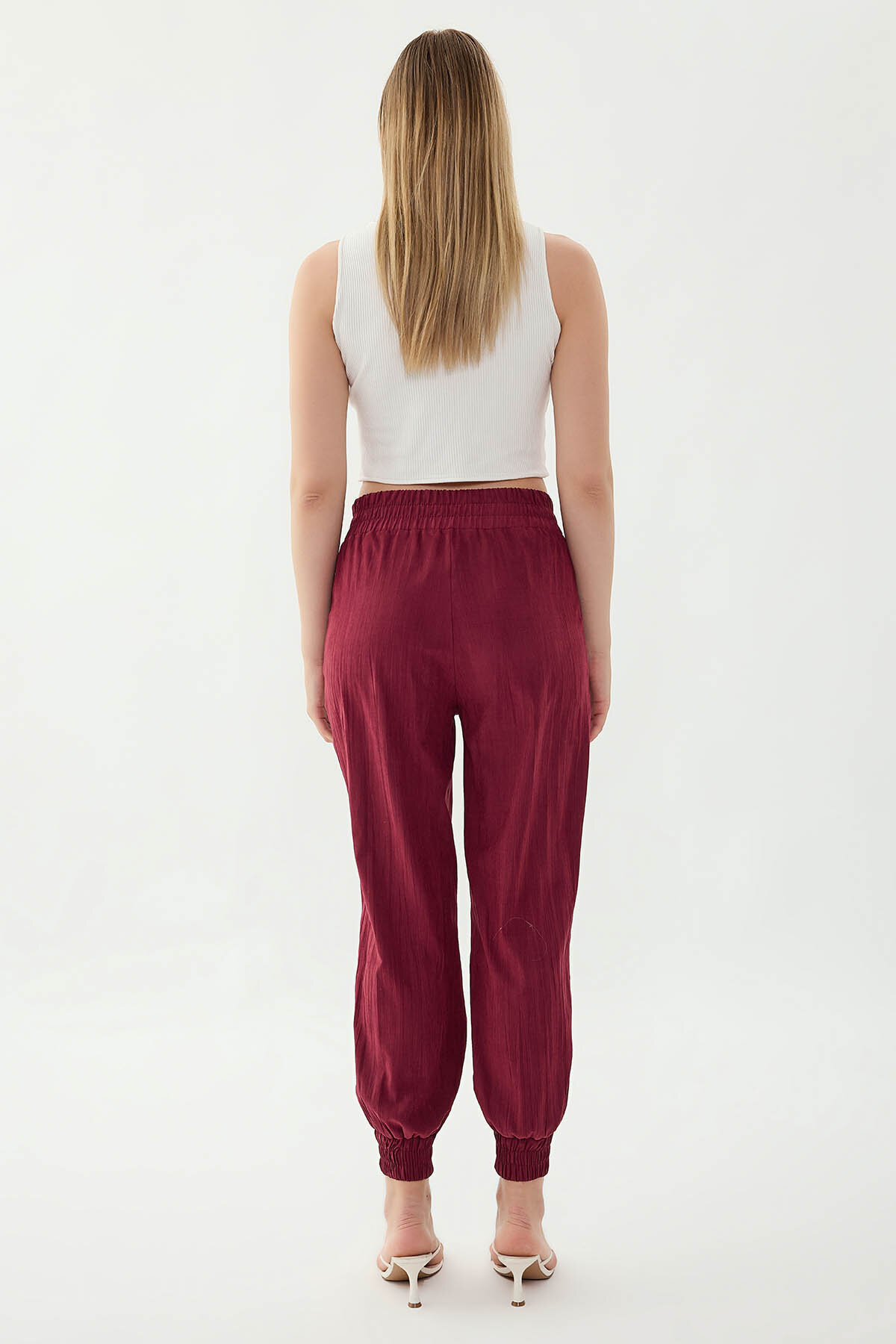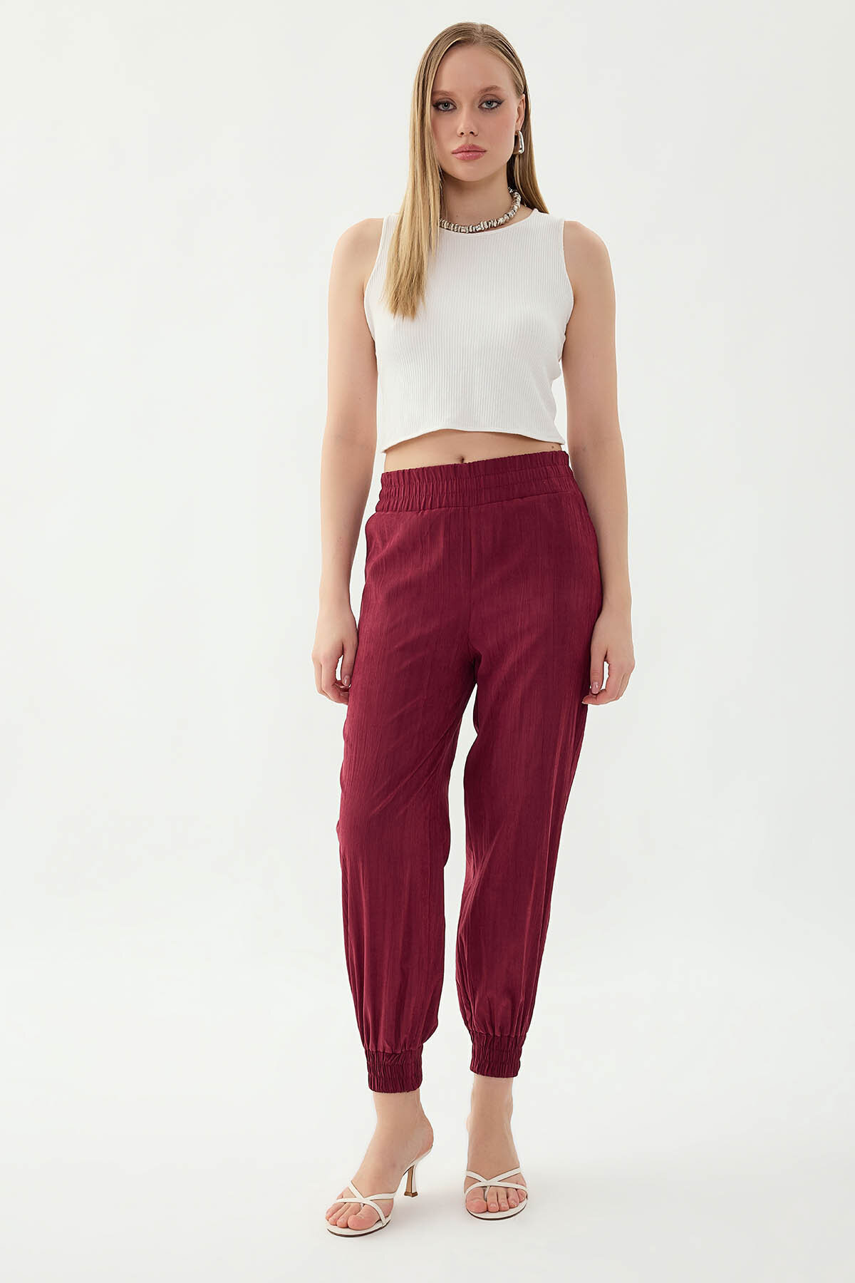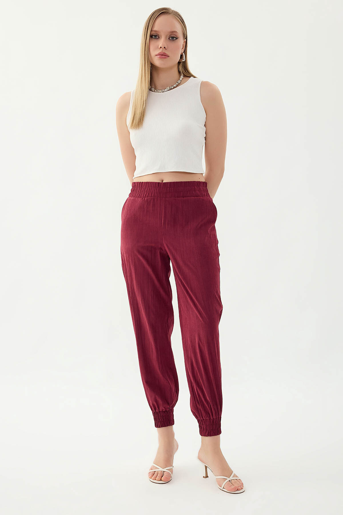Beli Ve Paçası Lastikli Pantolon Bordo