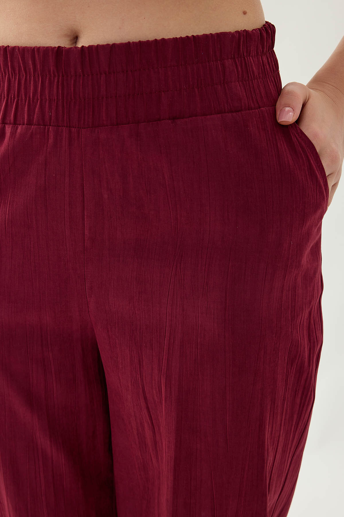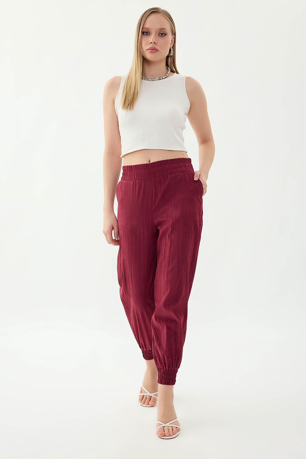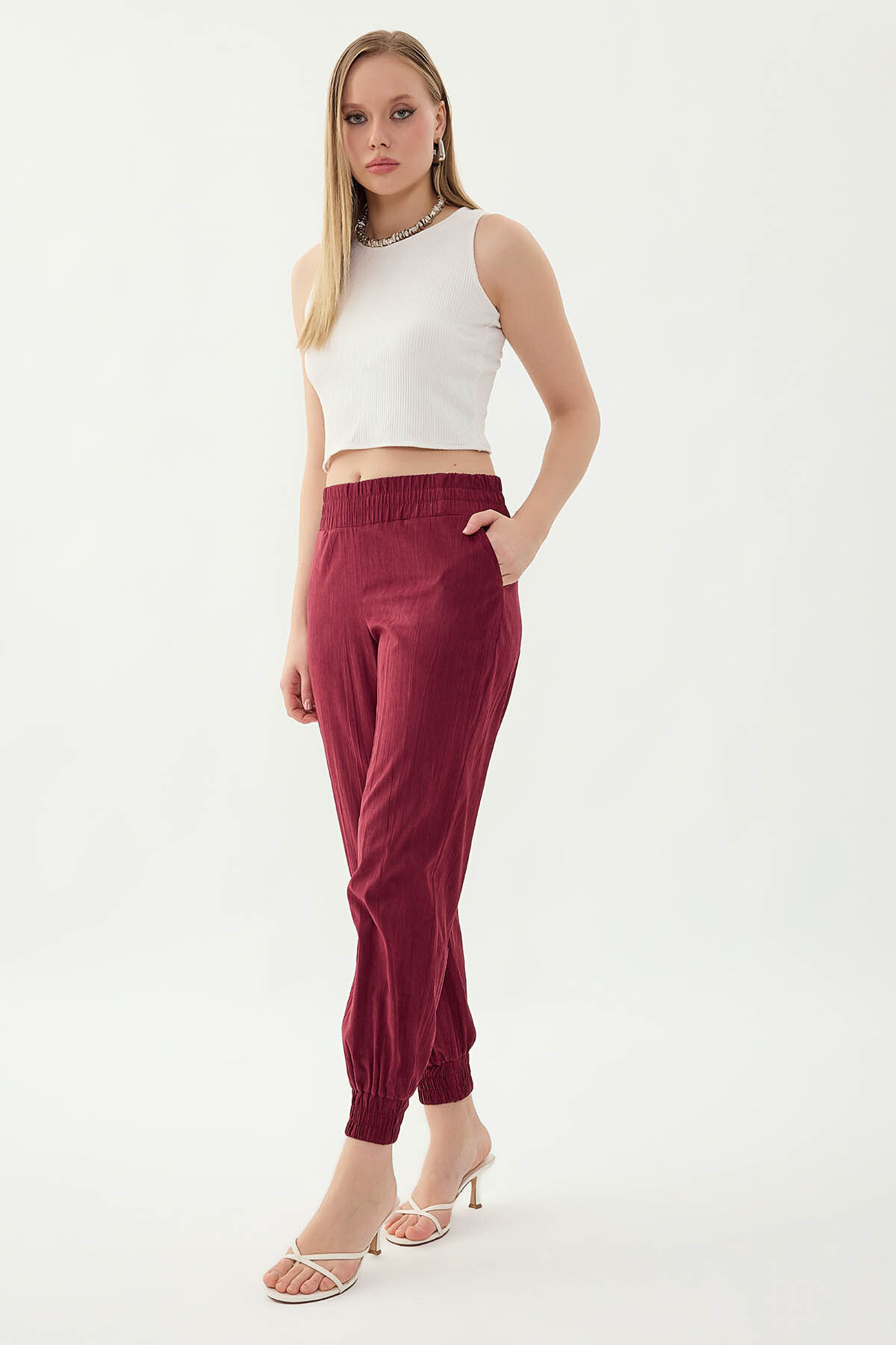 Beli Ve Paçası Lastikli Pantolon Bordo