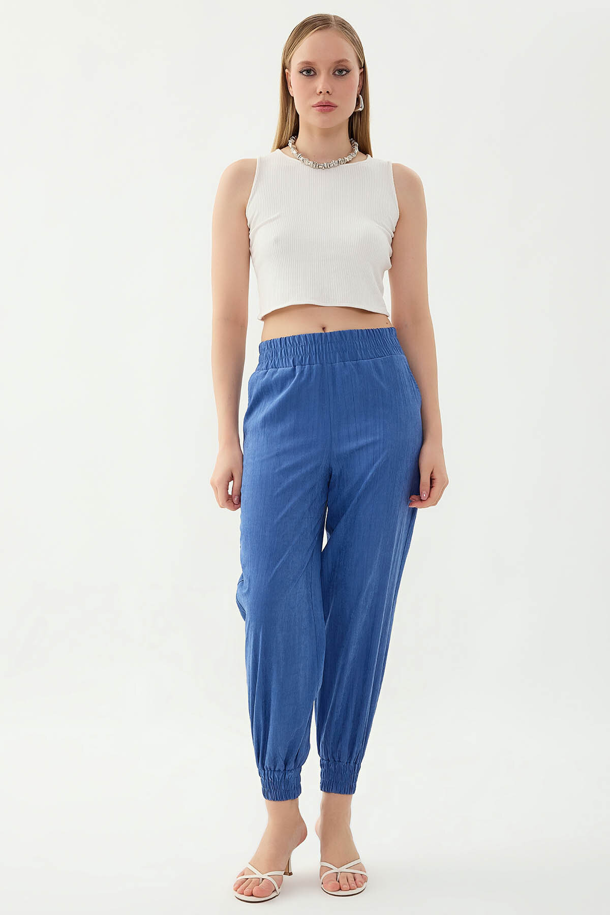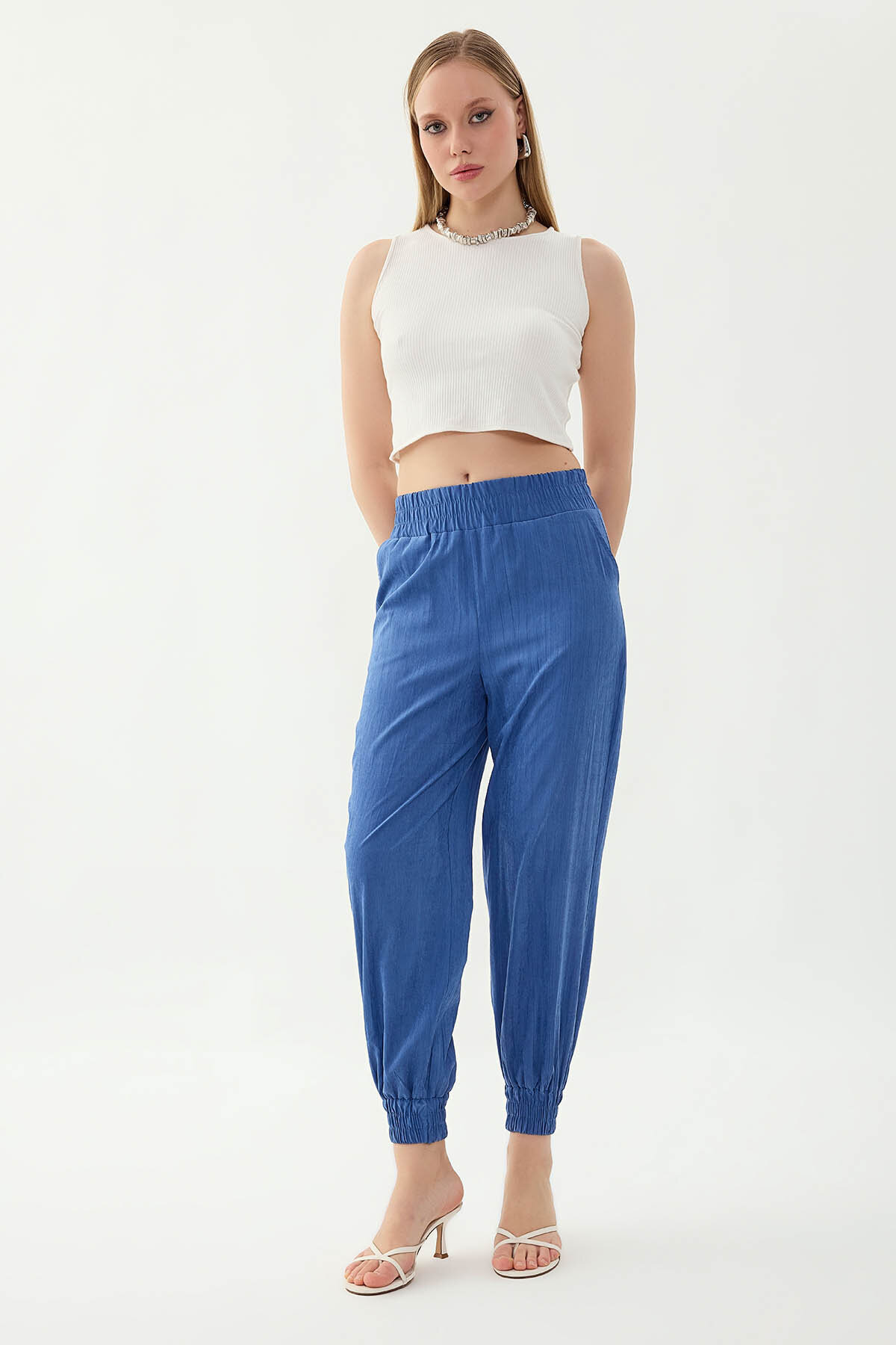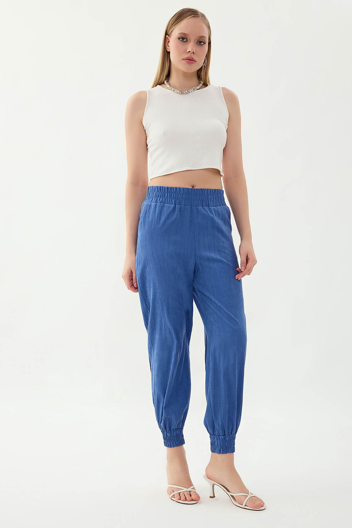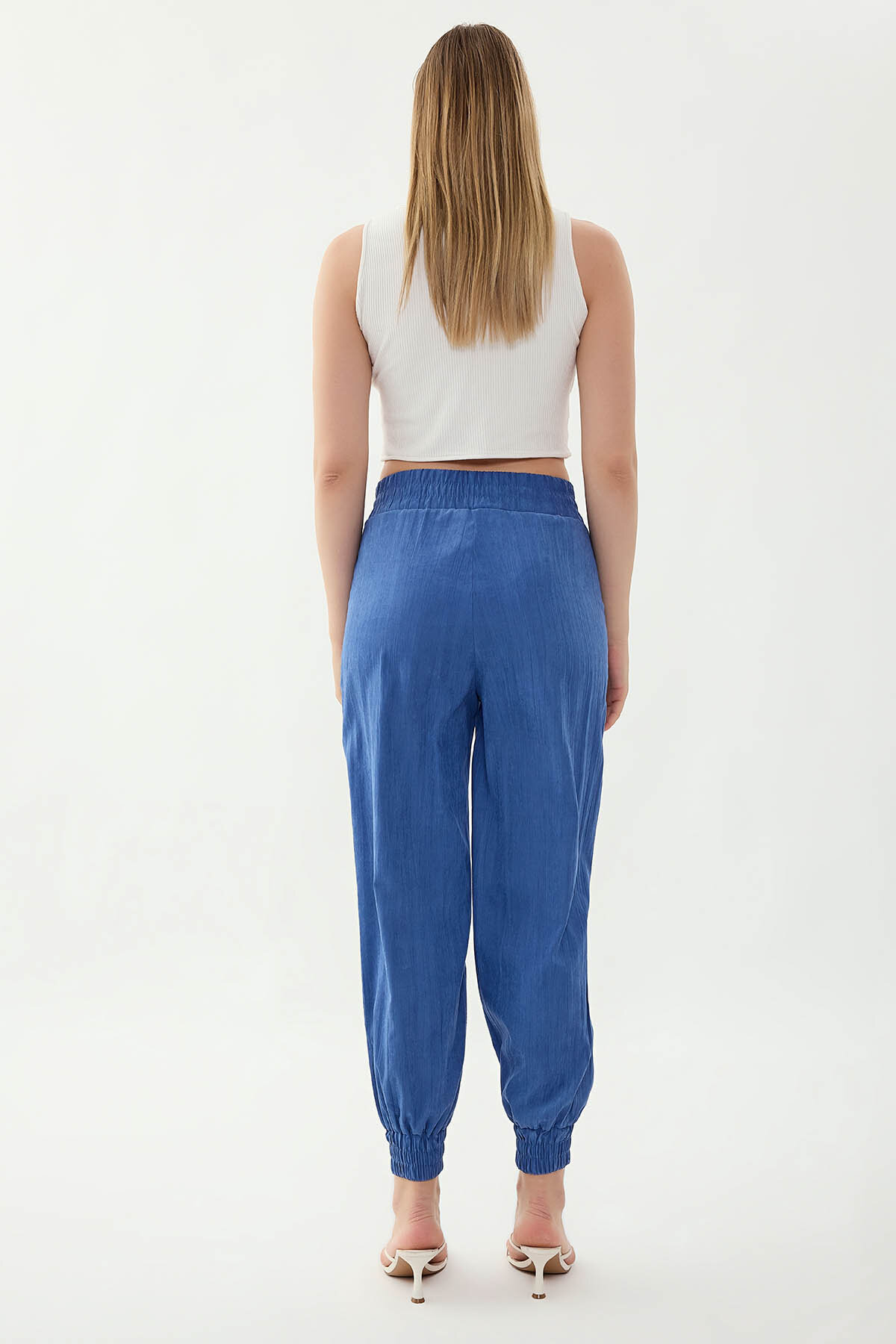 Beli Ve Paçası Lastikli Pantolon İndigo