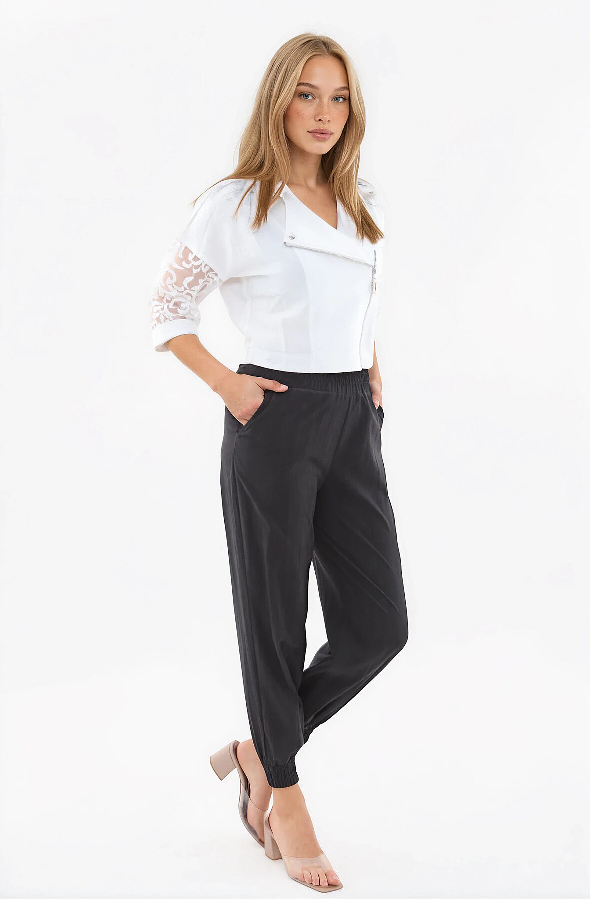 Beli Ve Paçası Lastikli Pantolon Siyah