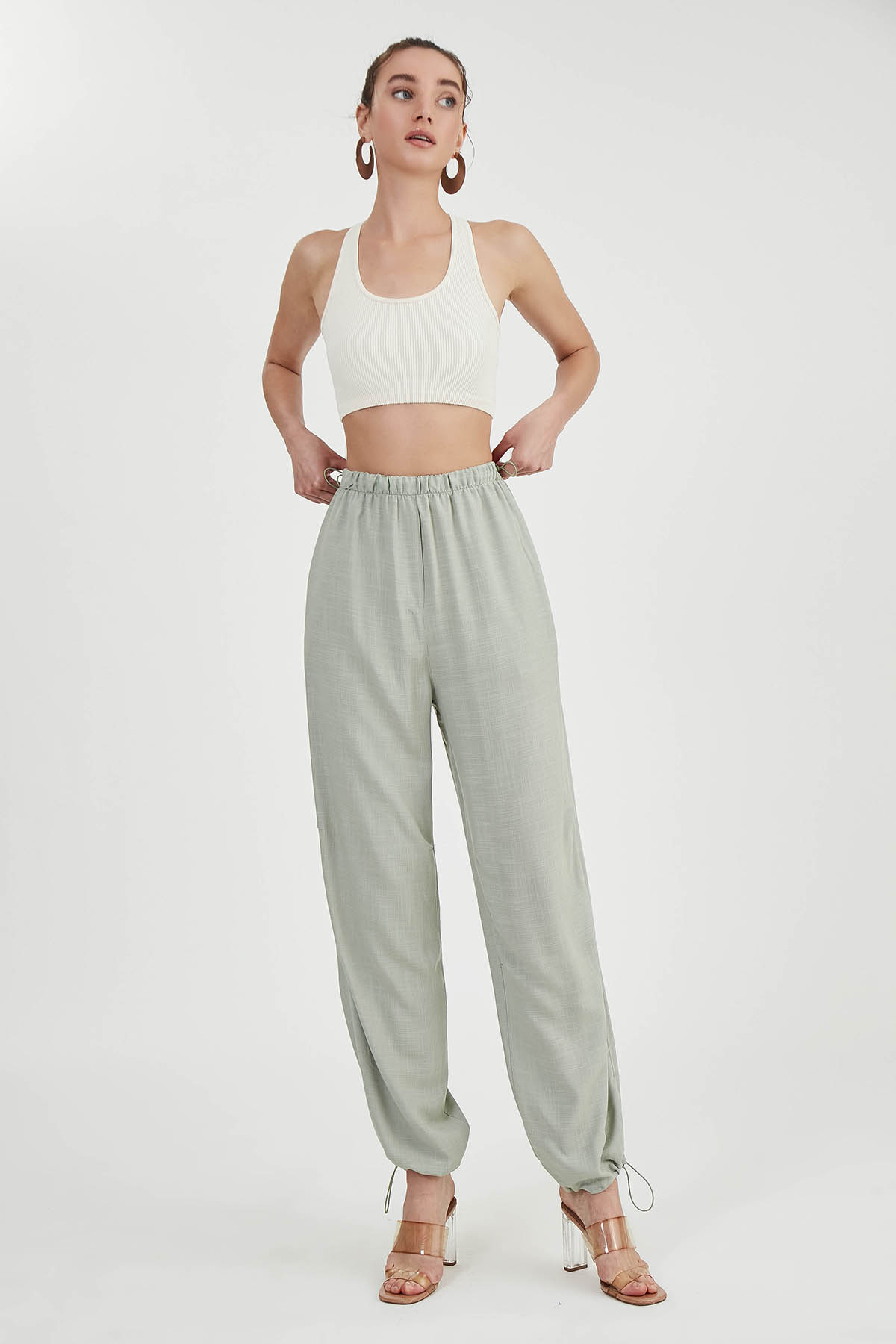 Beli Ve Paçası Lastikli Viskon Keten Pantolon