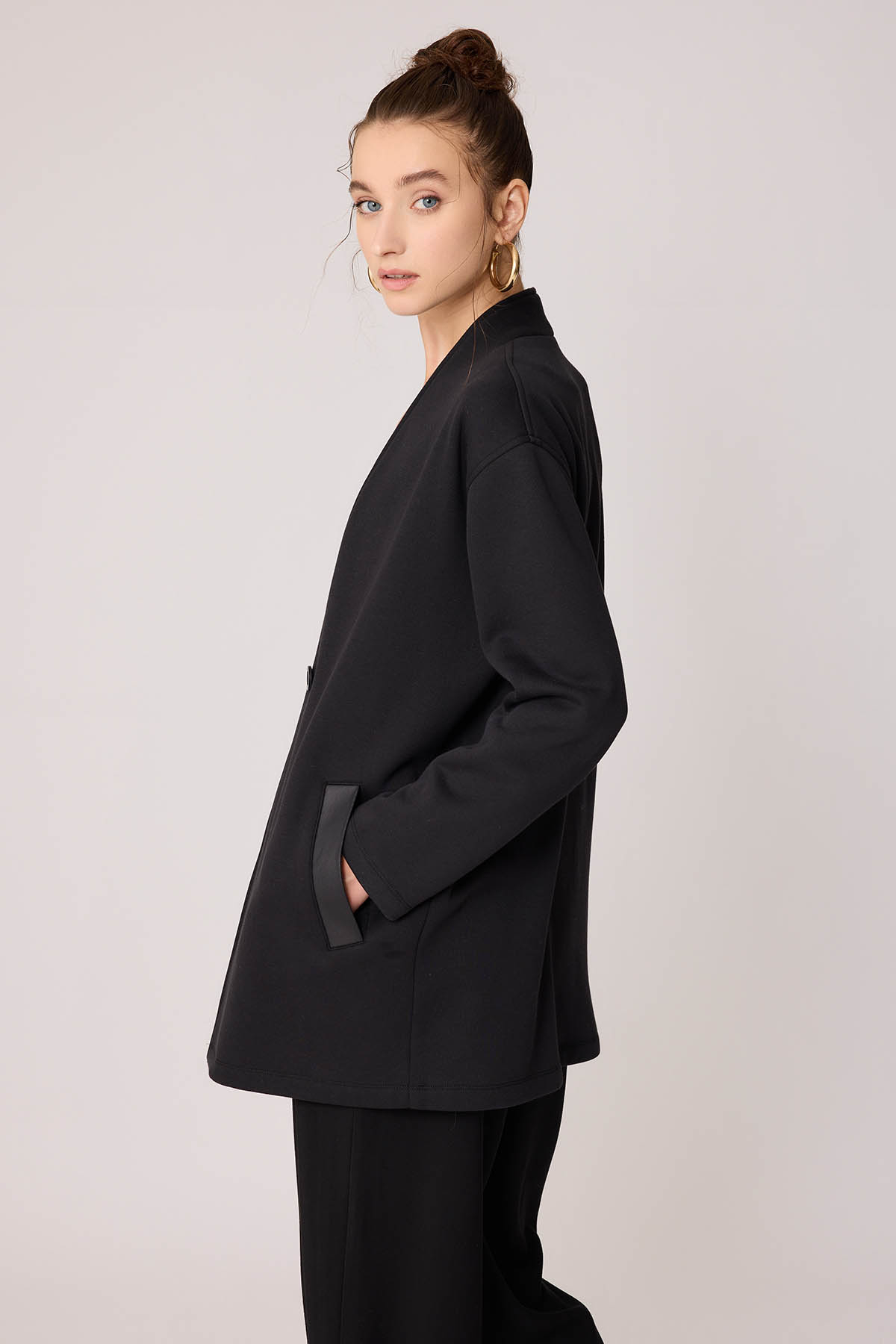 Cep Kısmı Suni Deri Tek Düğme Ceket