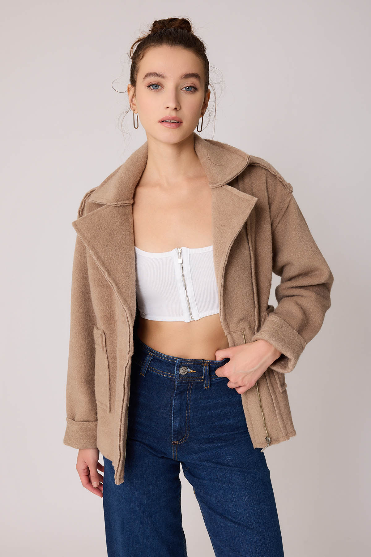 Çift Cep Fermuarlı Ters Dikiş Ceket