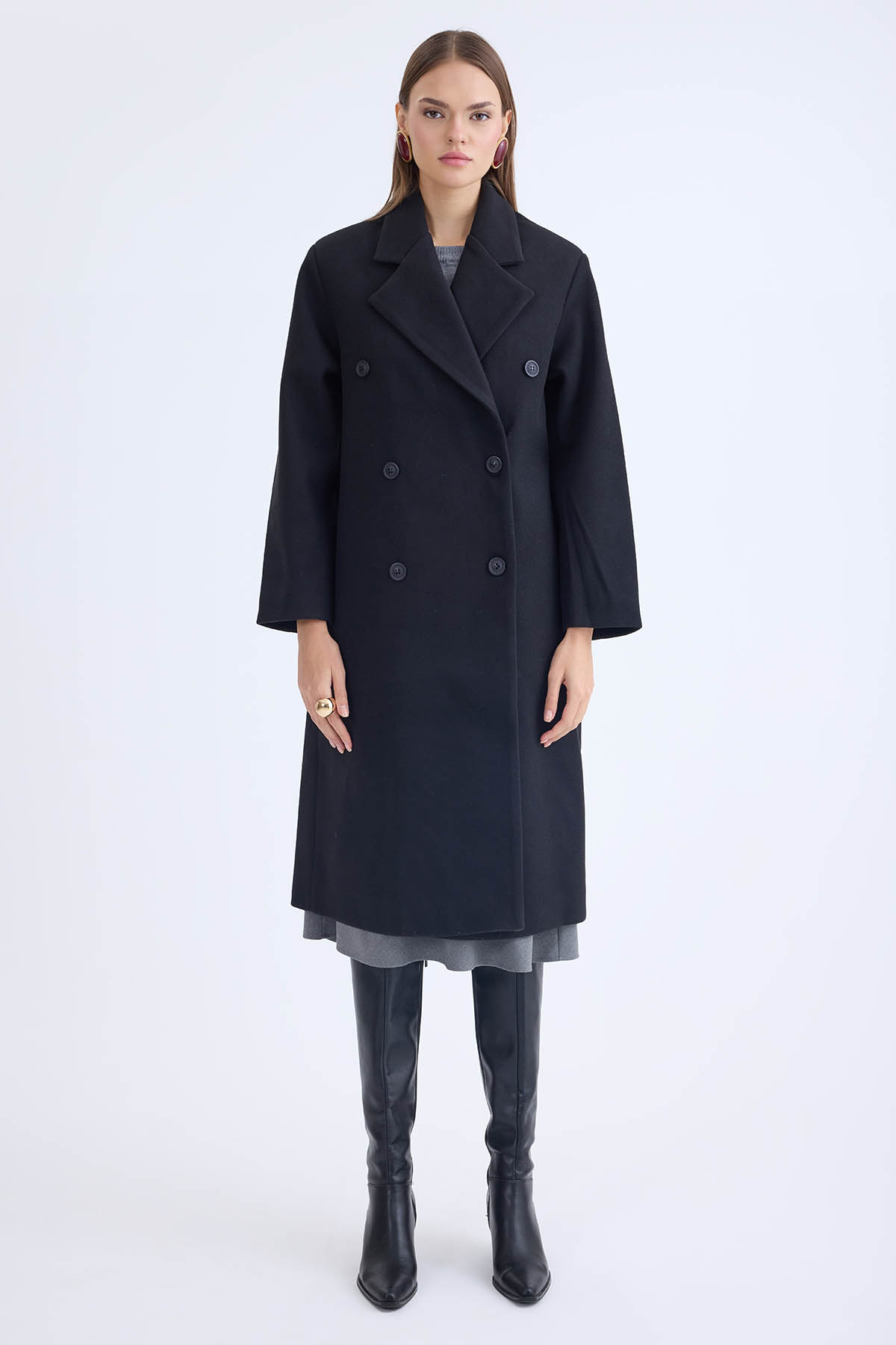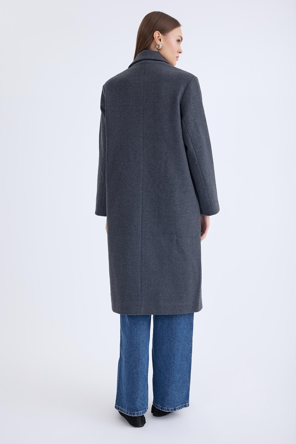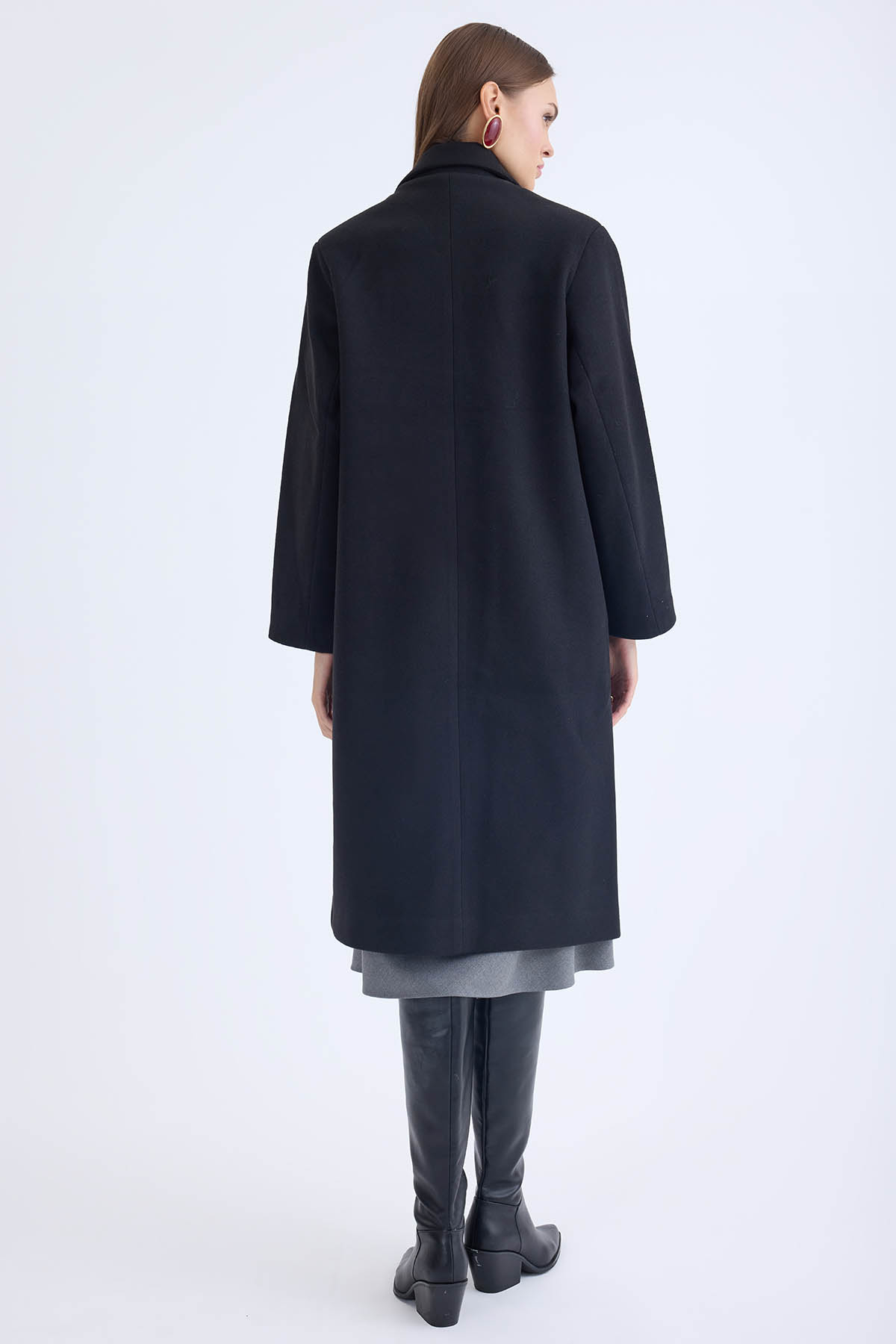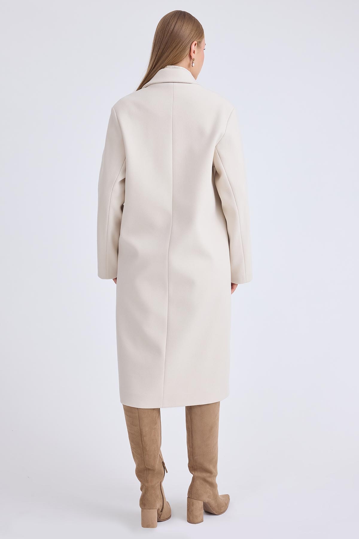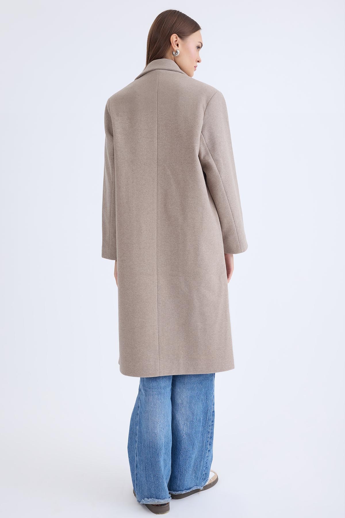 Düğmeli Uzun Kaşe Kaban
