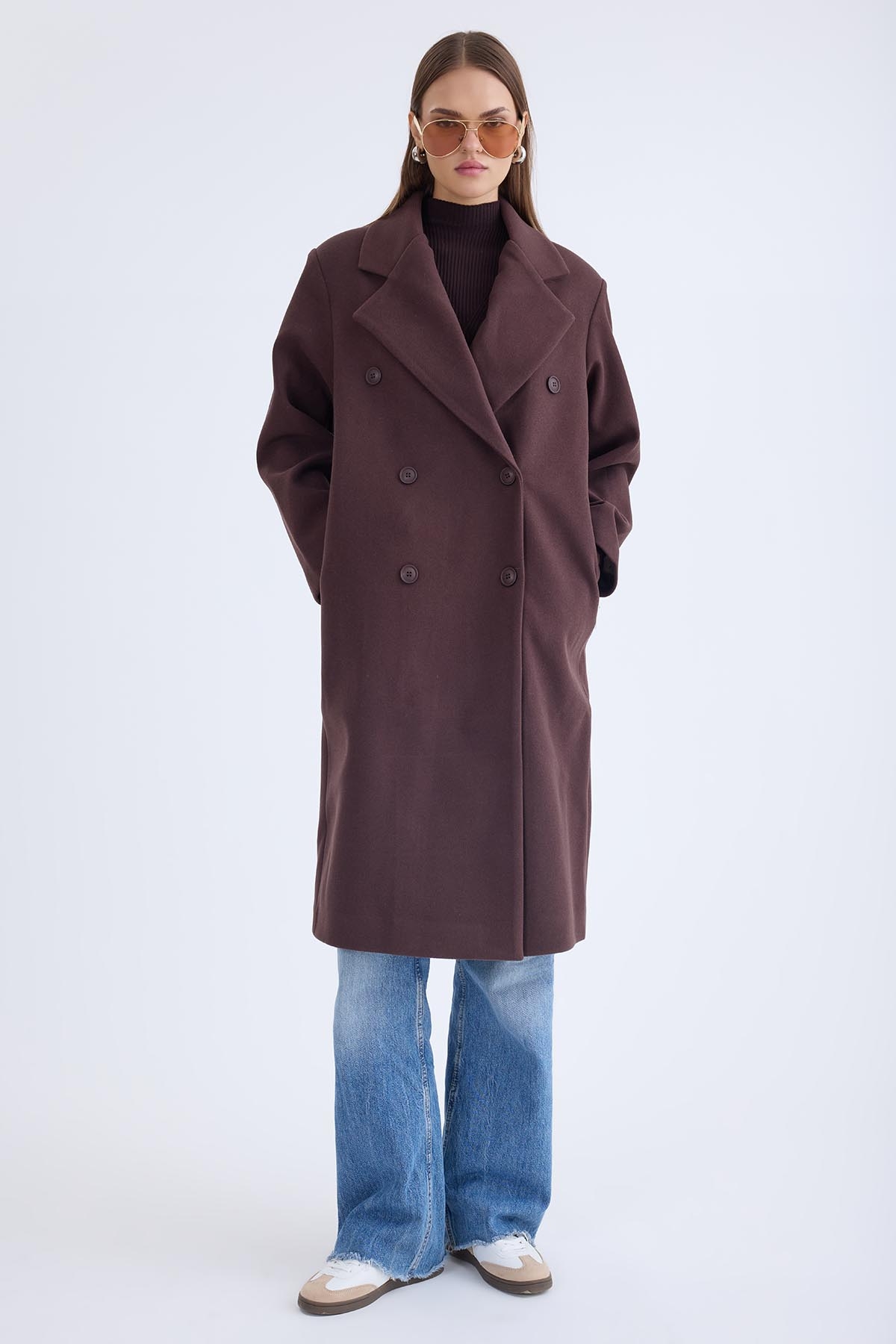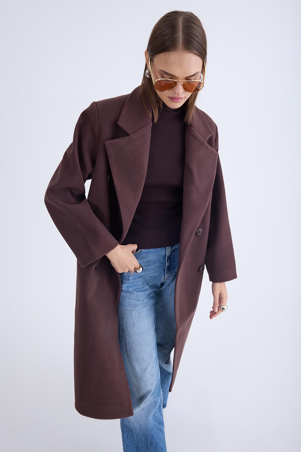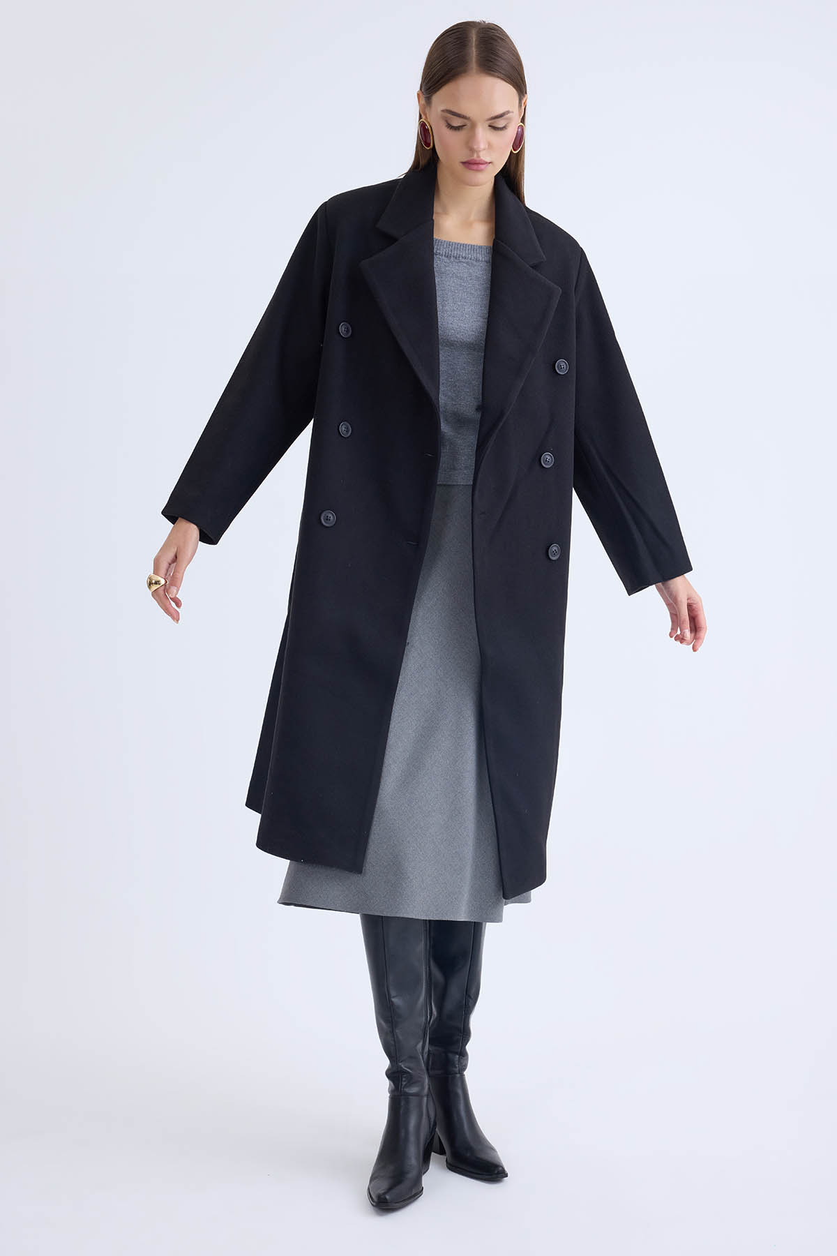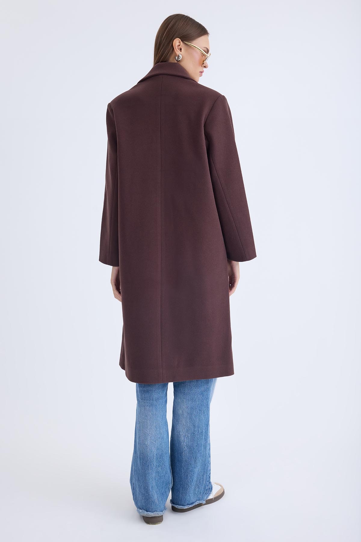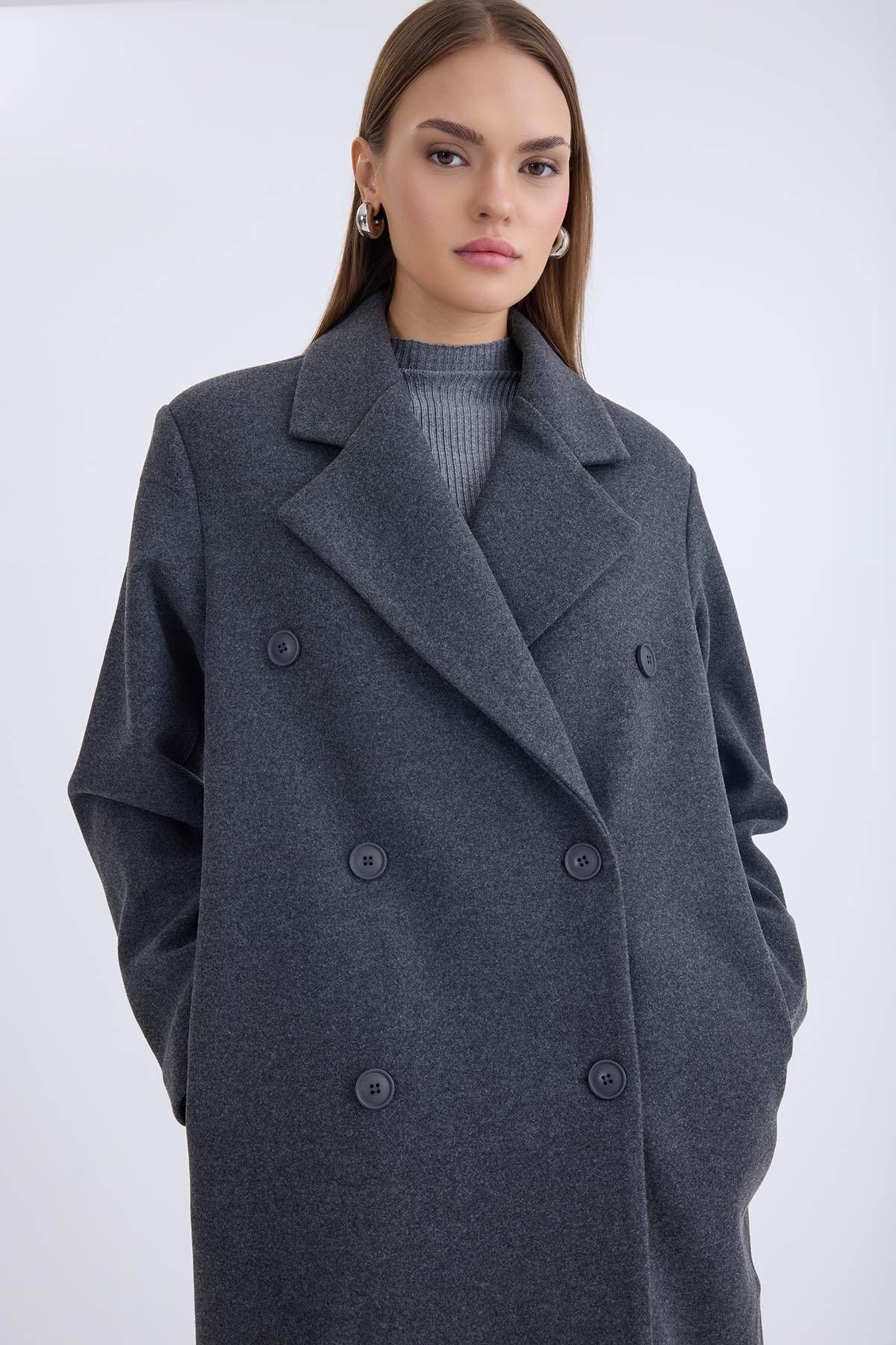 Düğmeli Uzun Kaşe Kaban