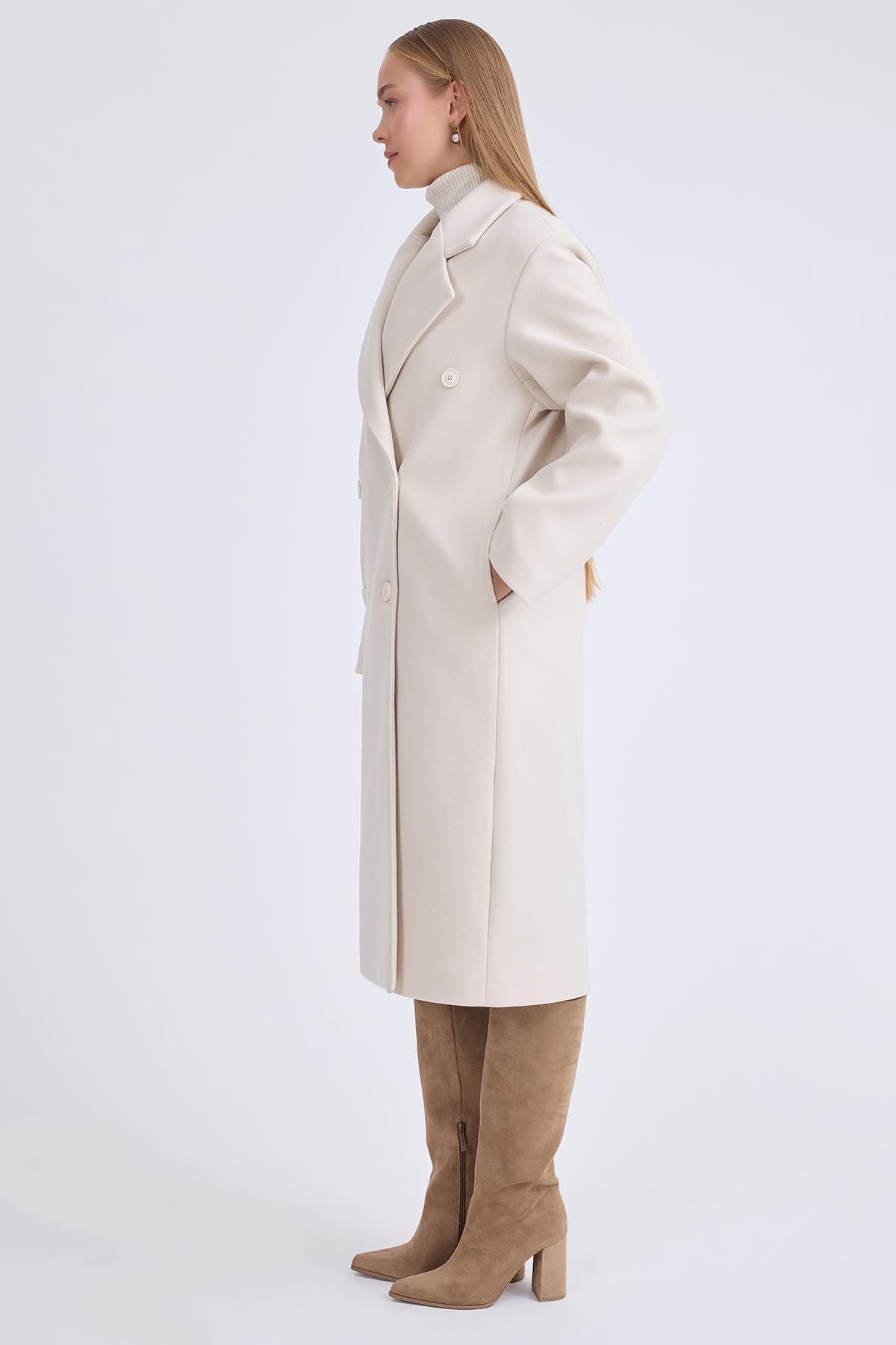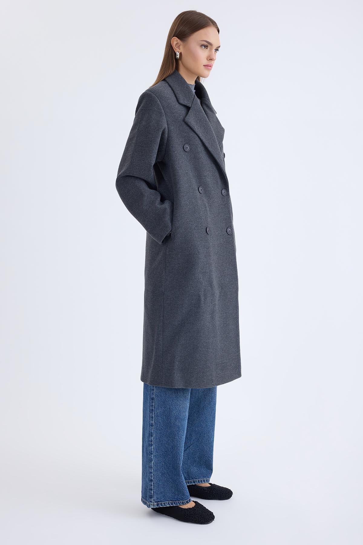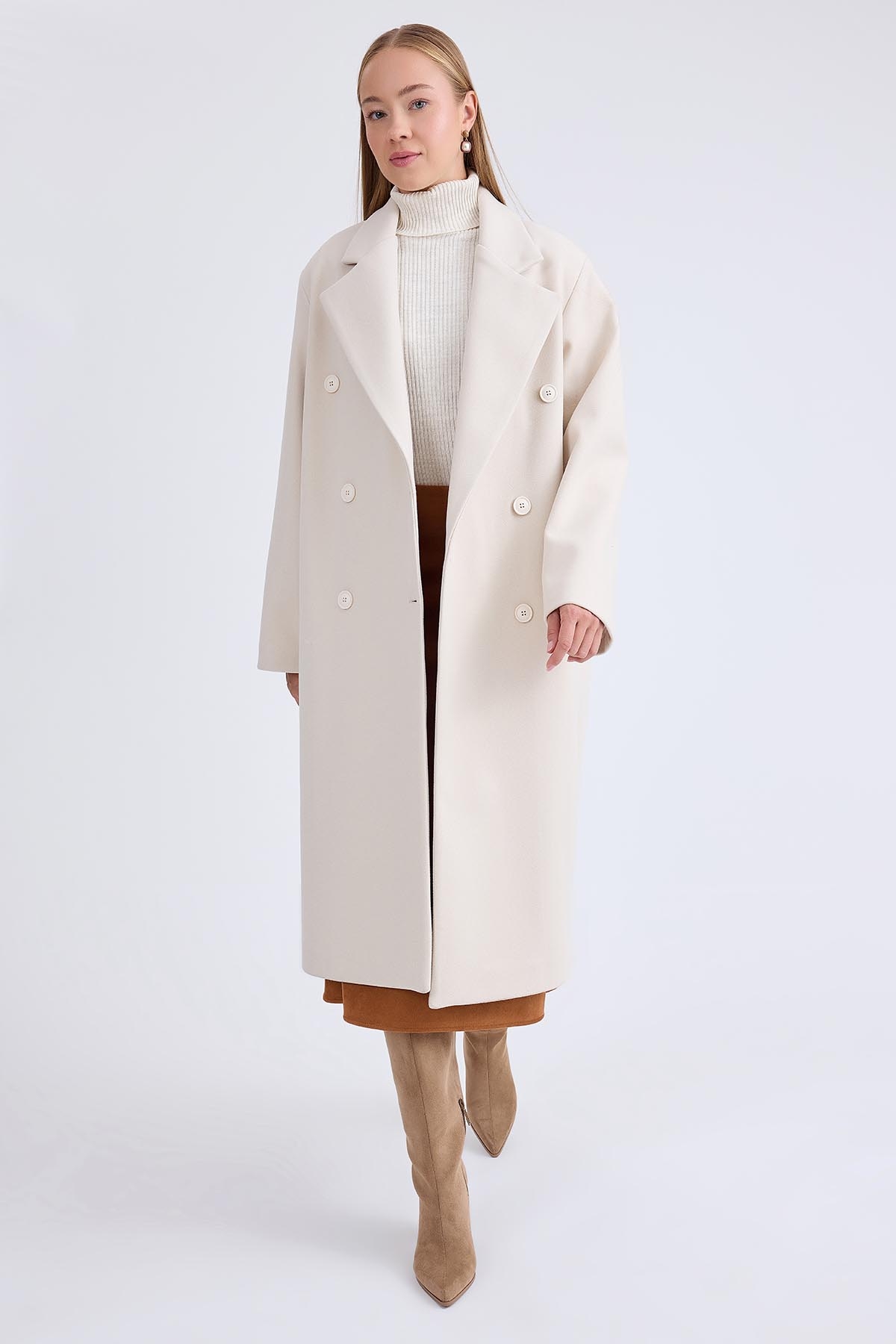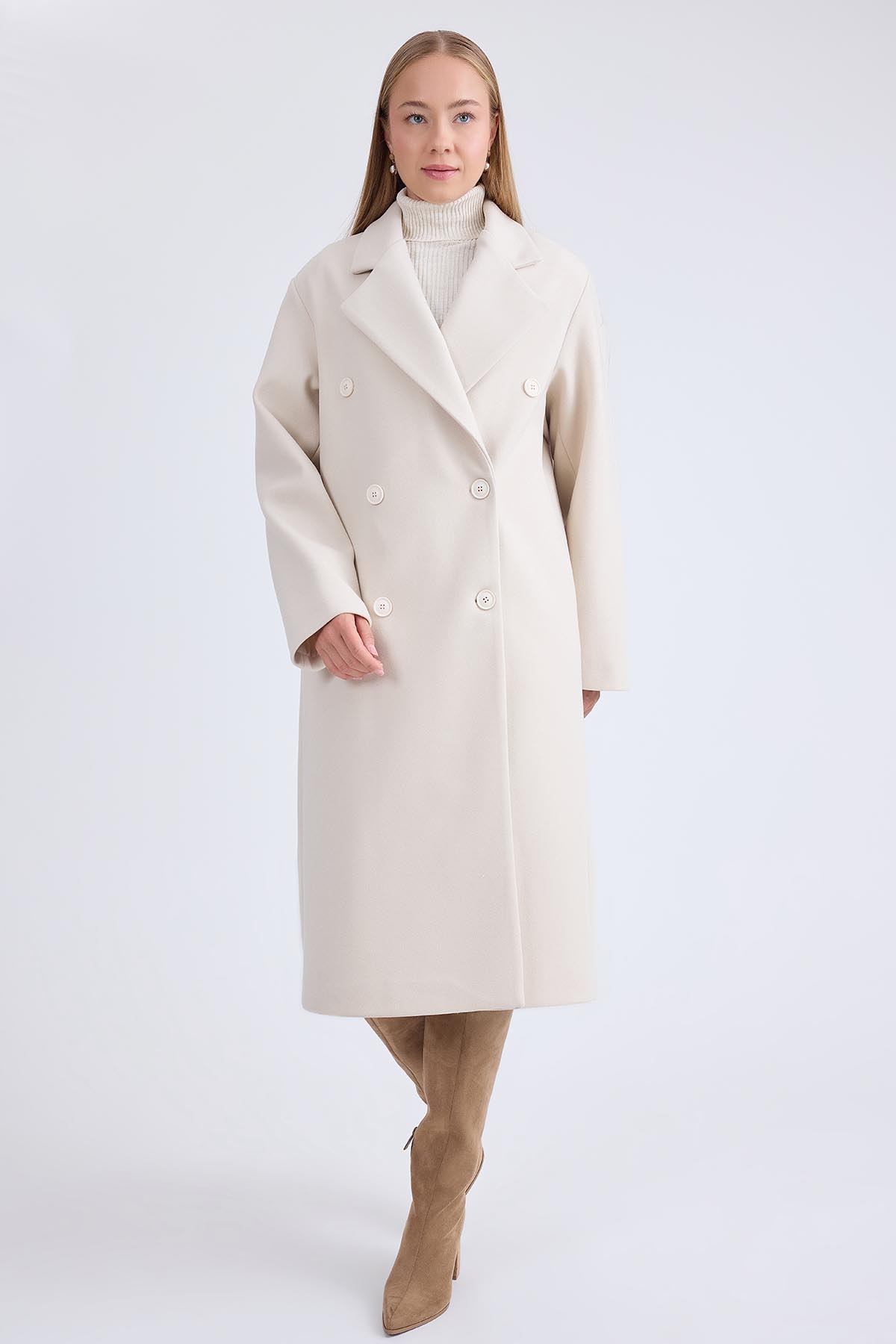 Düğmeli Uzun Kaşe Kaban
