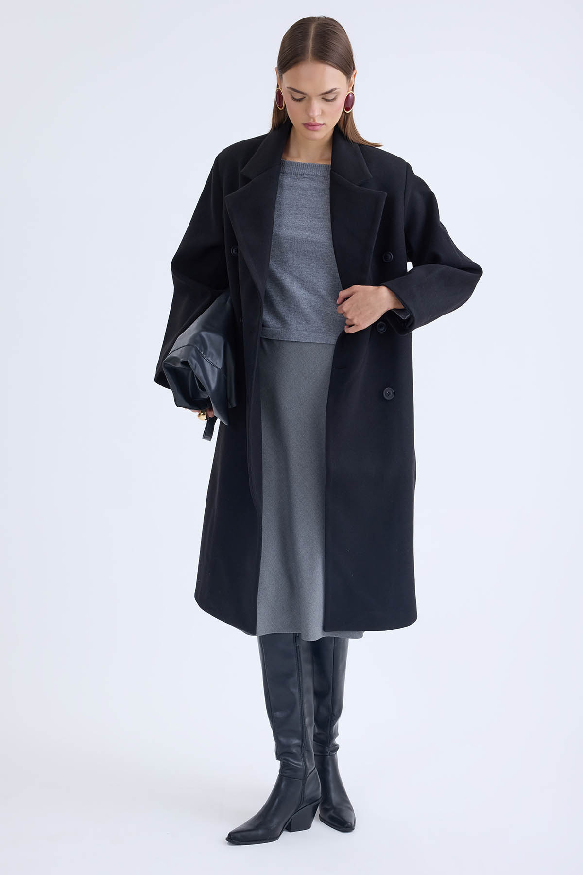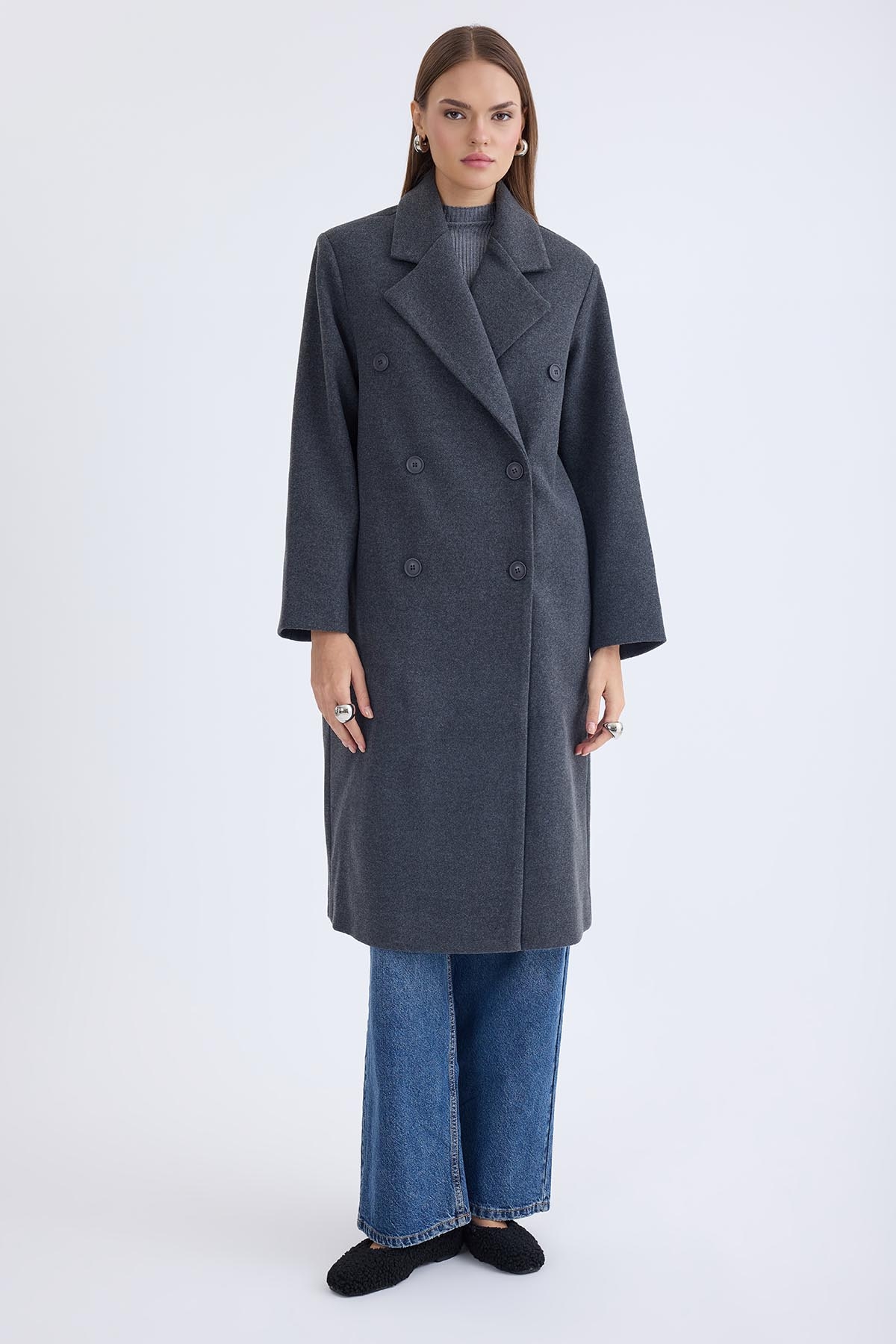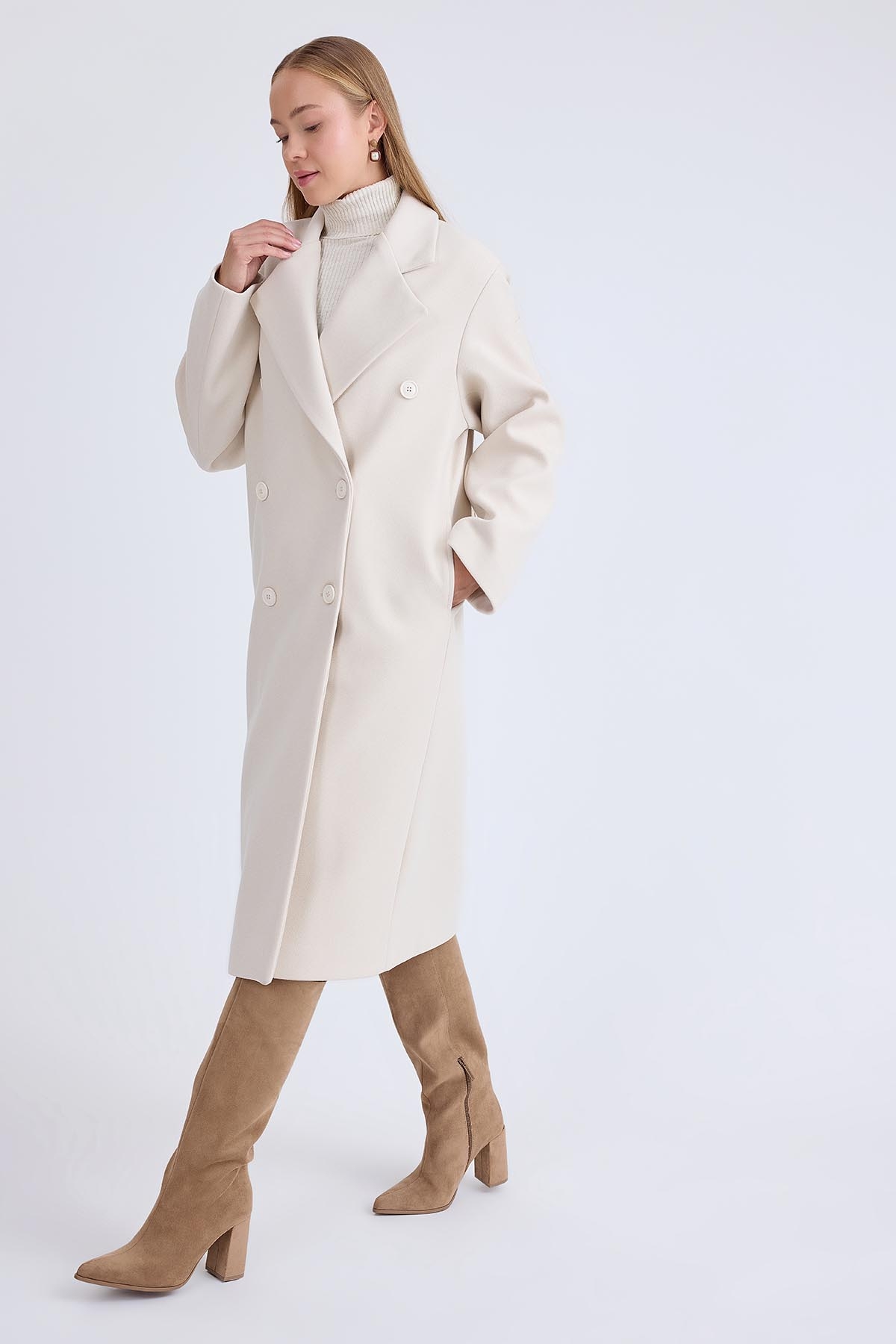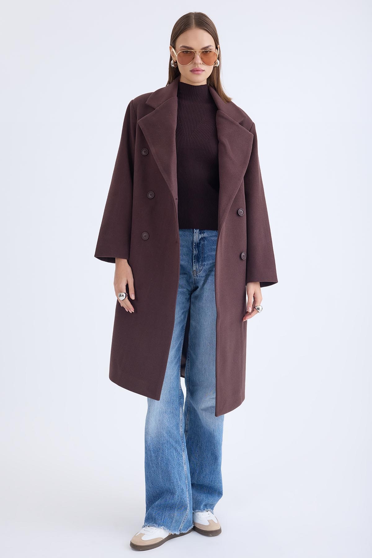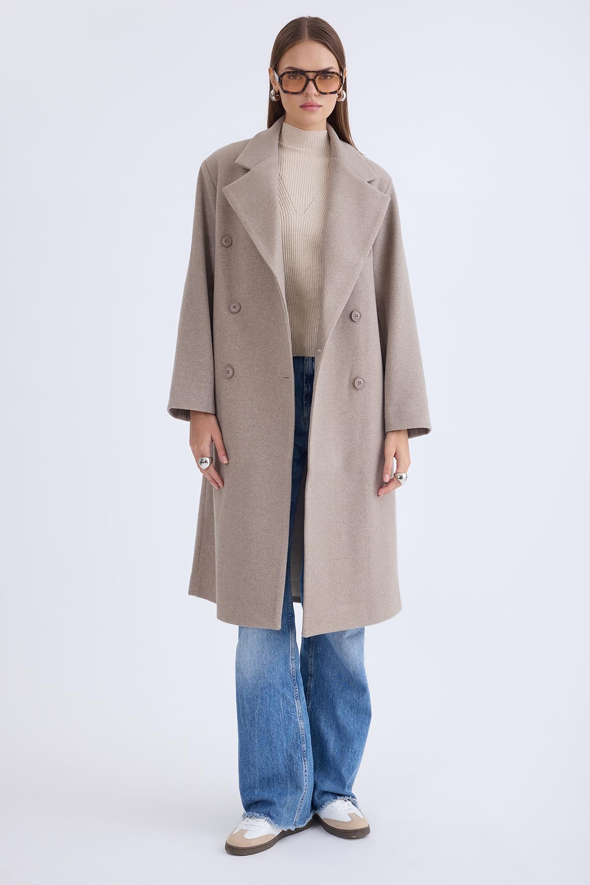 Düğmeli Uzun Kaşe Kaban