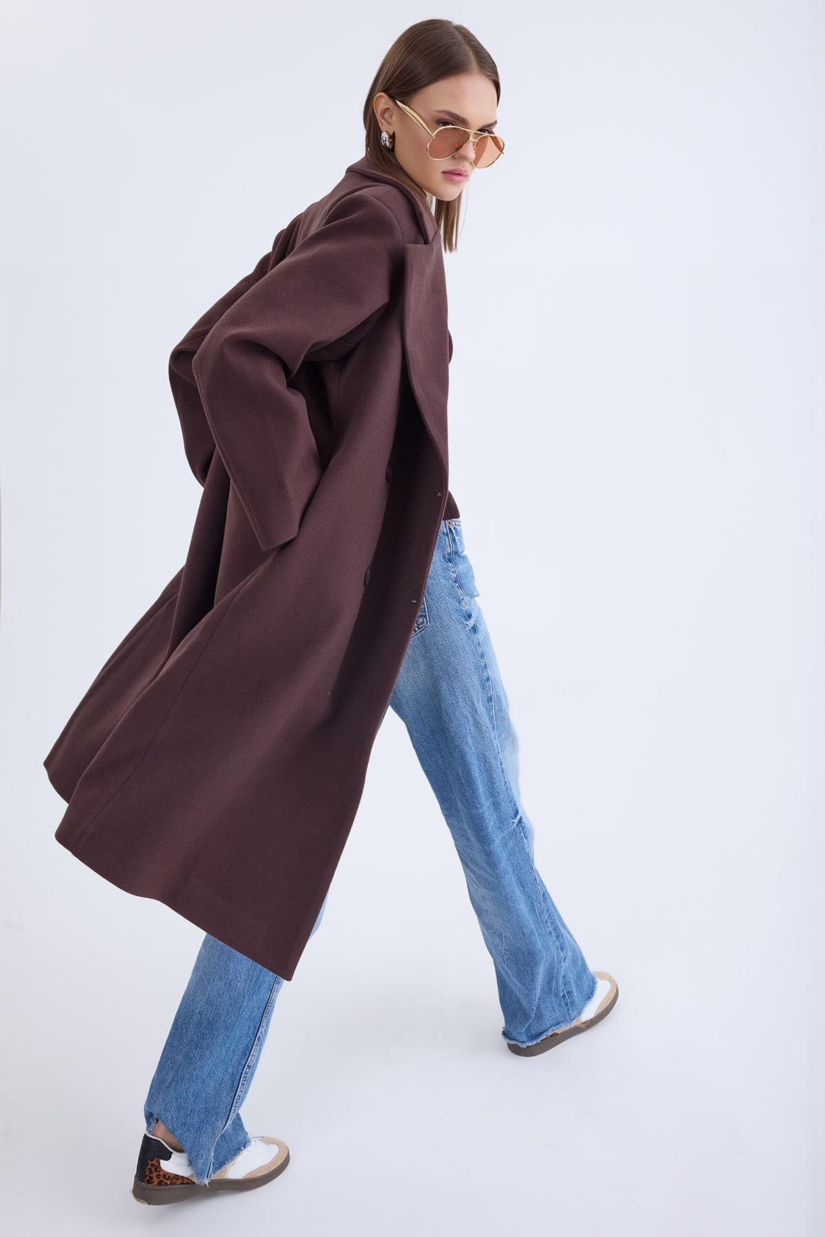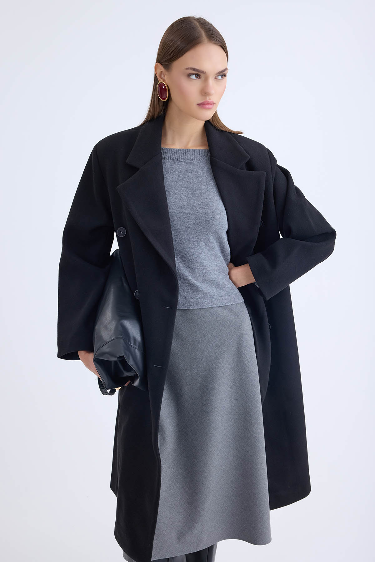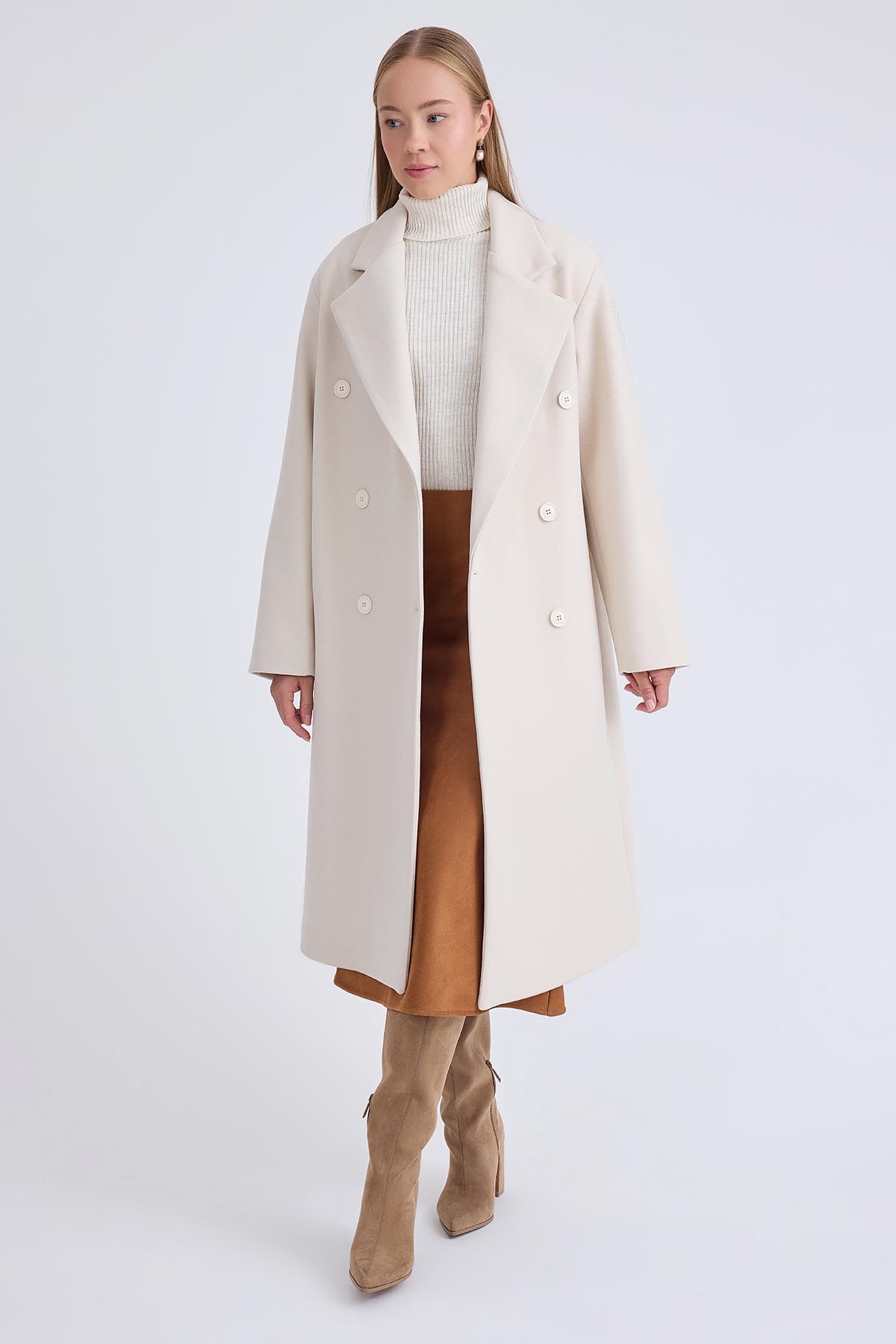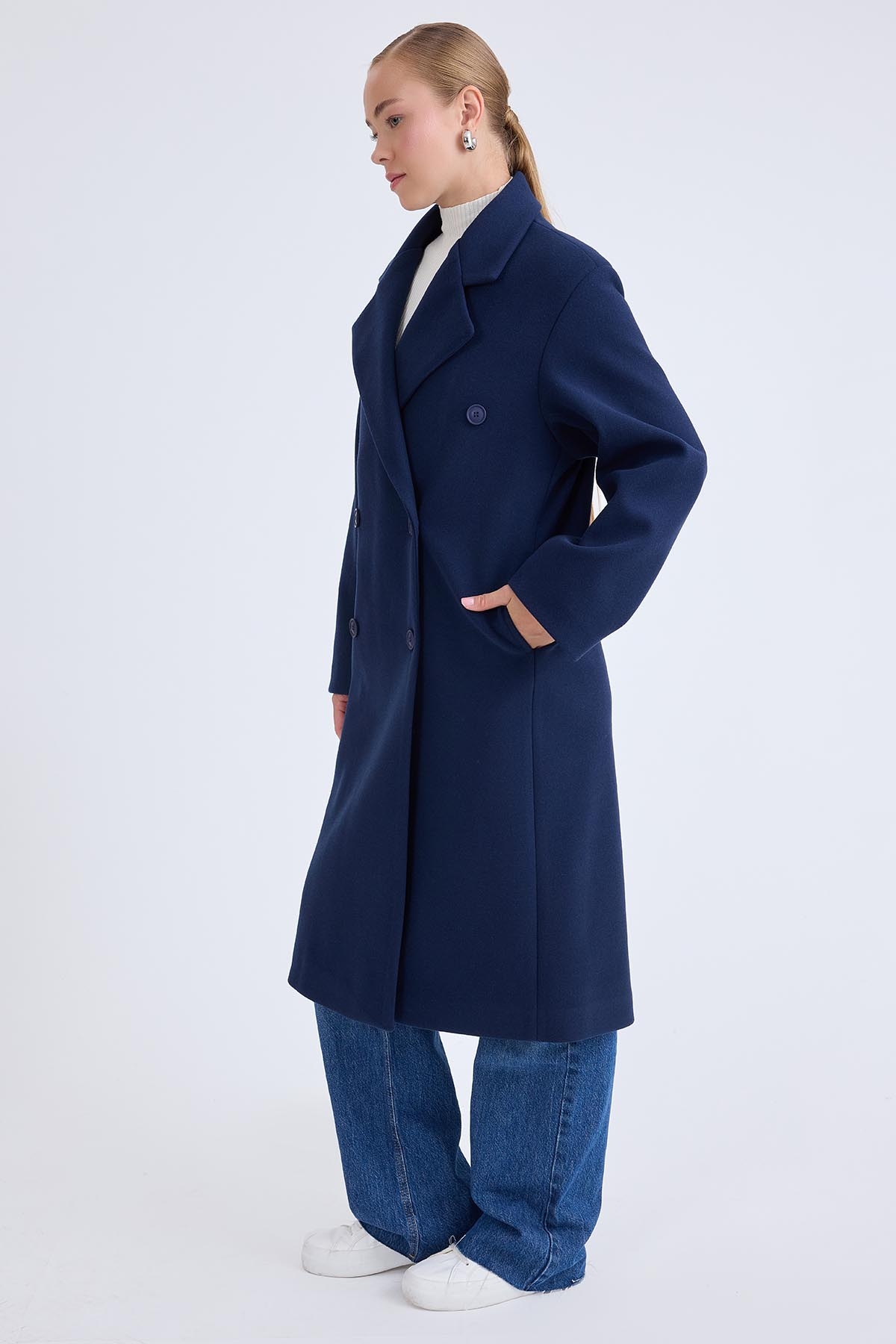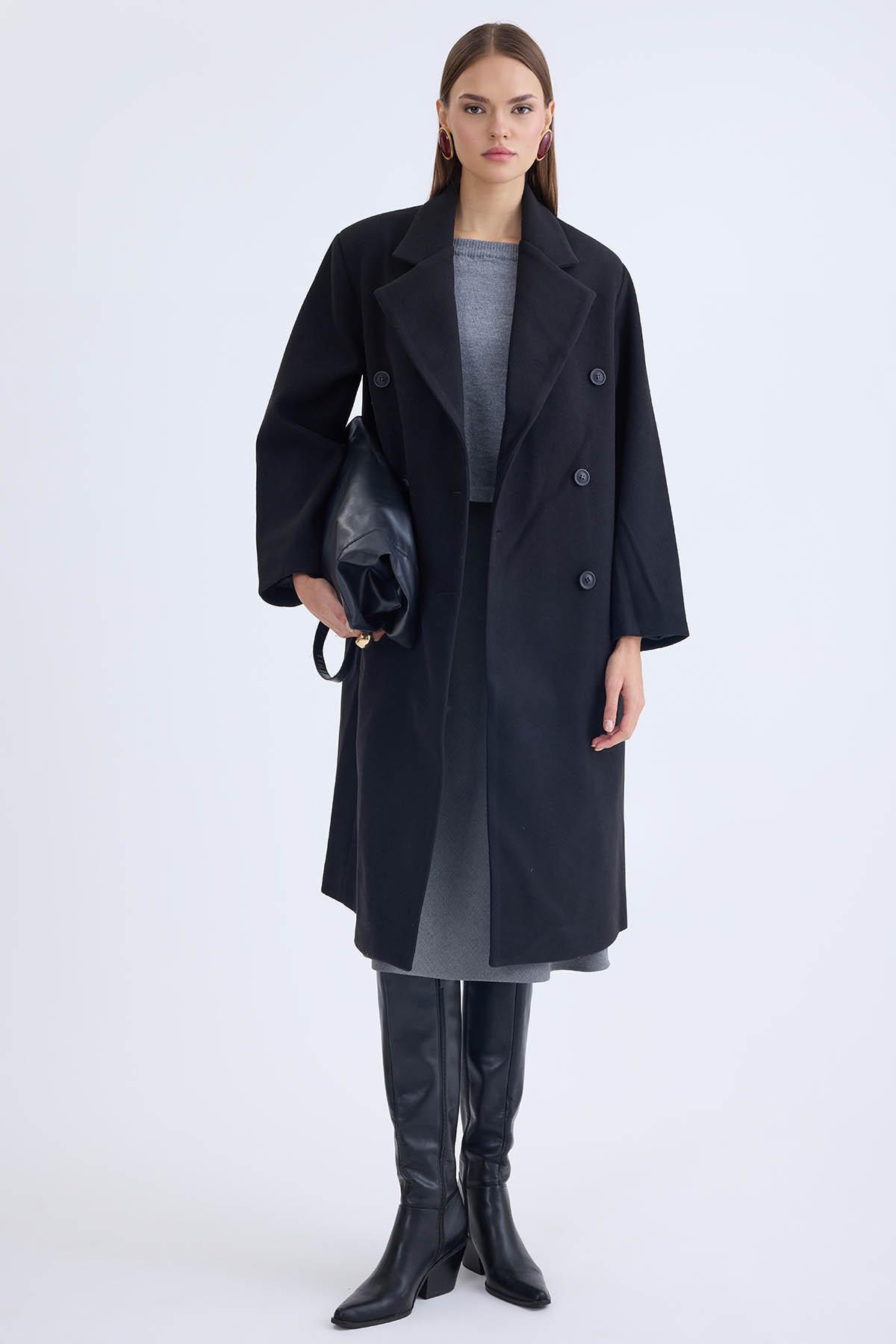 Düğmeli Uzun Kaşe Kaban