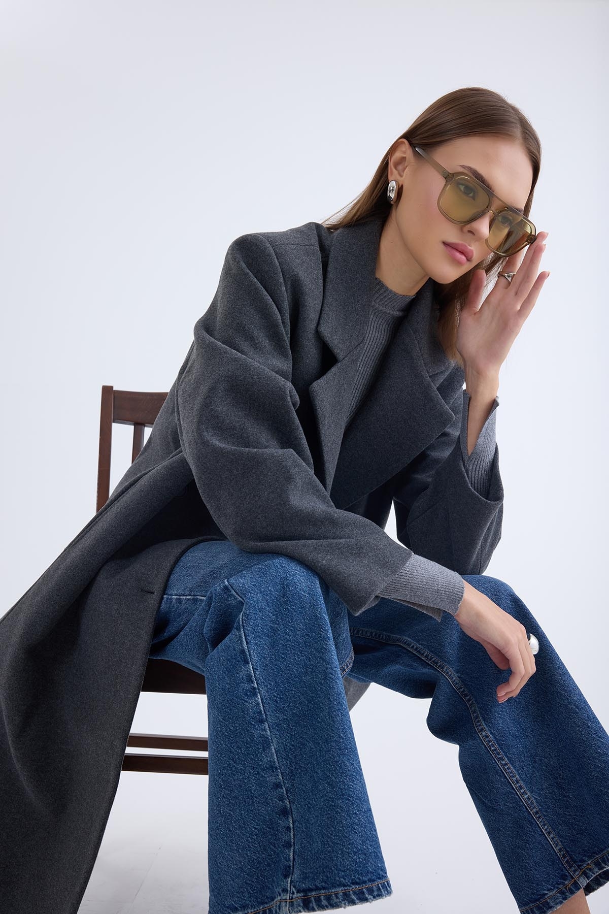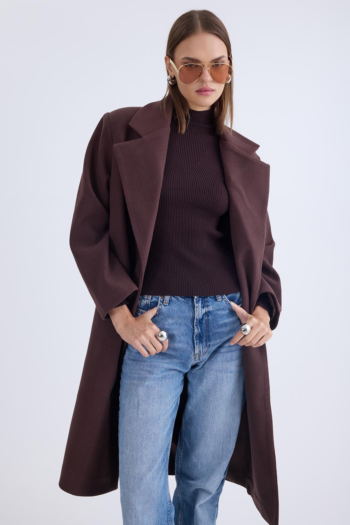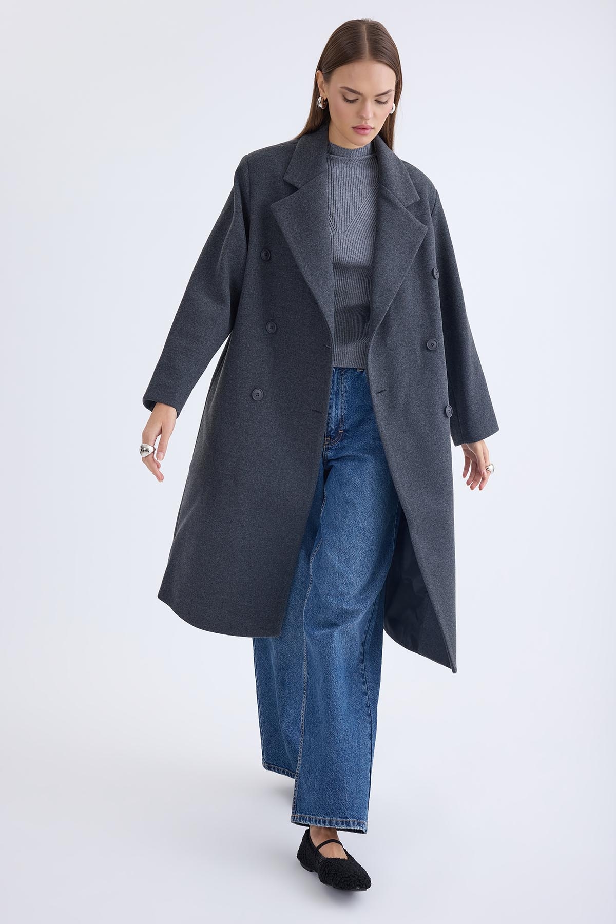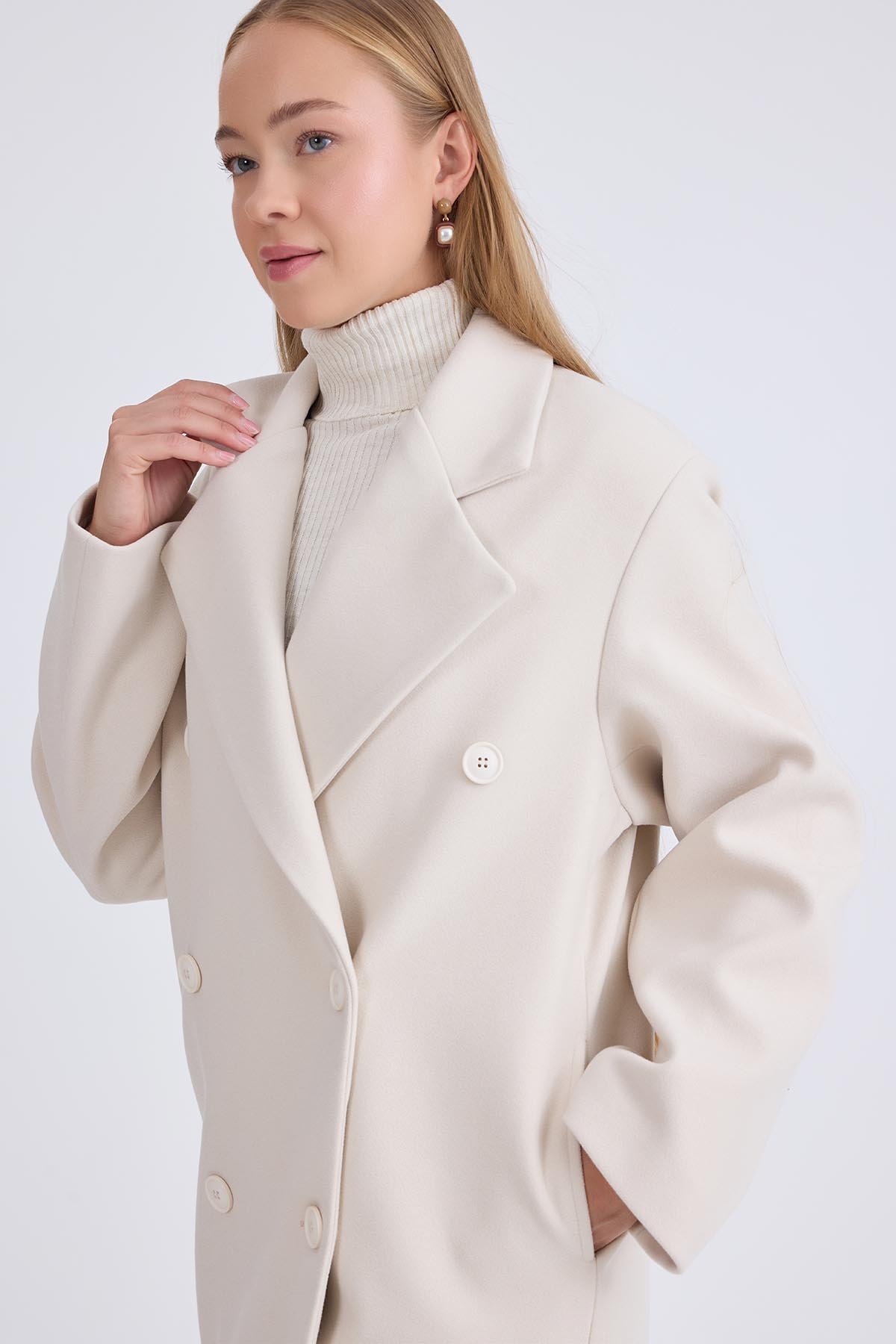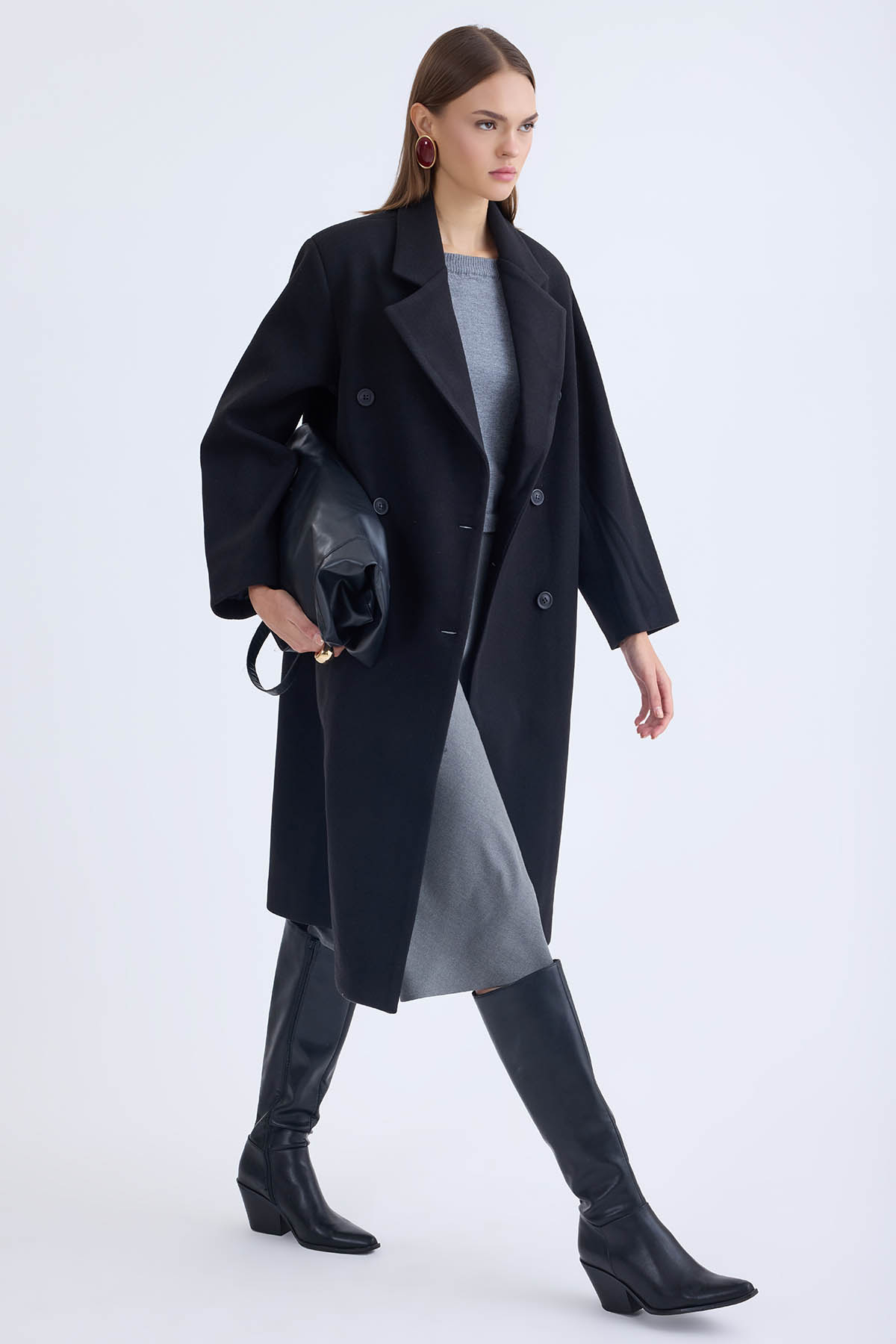 Düğmeli Uzun Kaşe Kaban