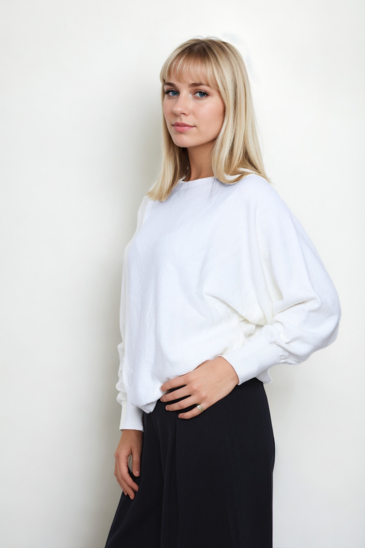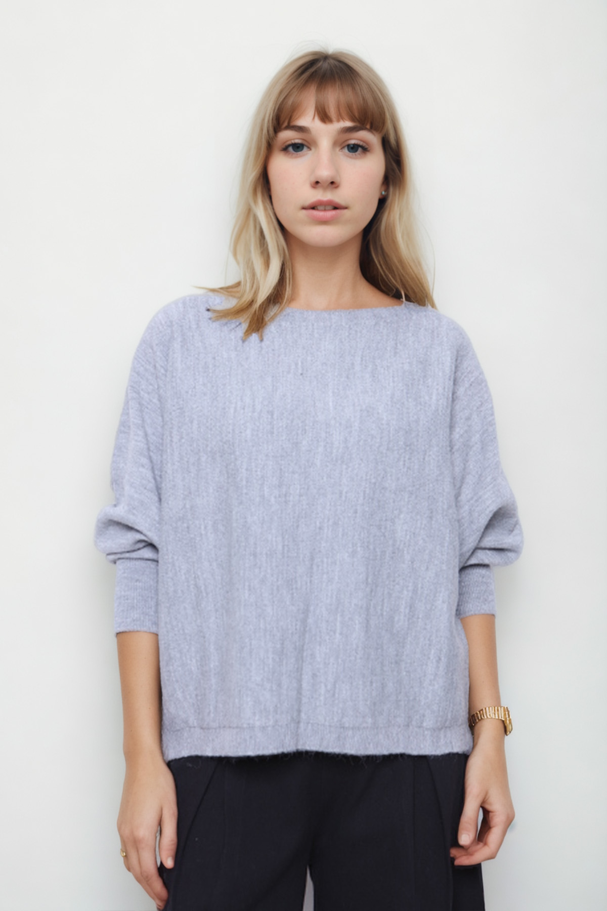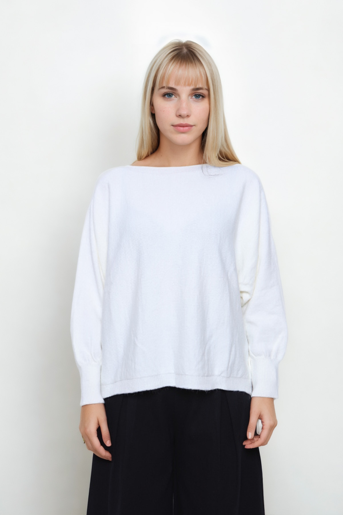 Geniş Yaka Yarasa Kol Oversize Triko Bluz