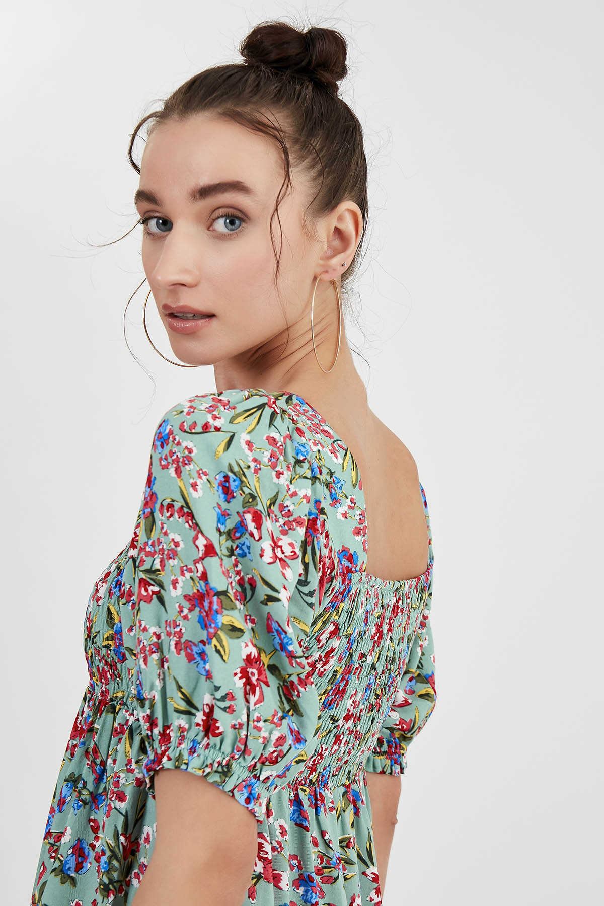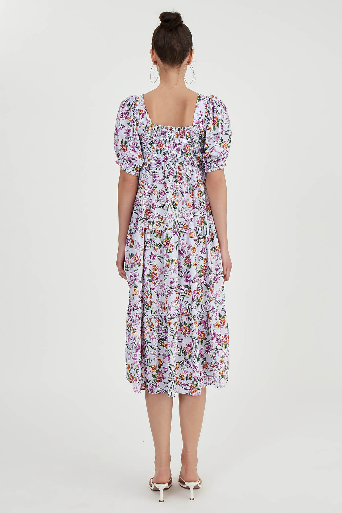 Gipeli Balon Kol Çiçekli Elbise