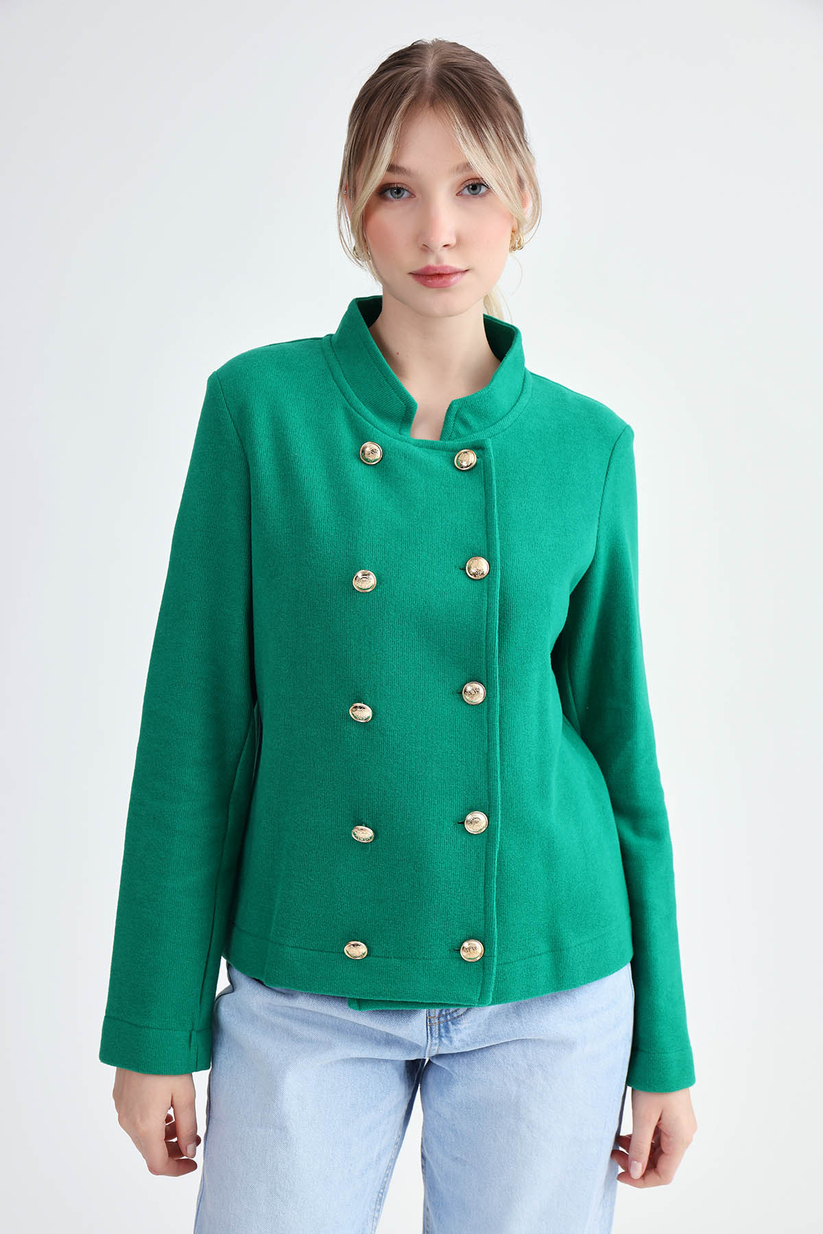 Gold Düğmeli Triko Ceket