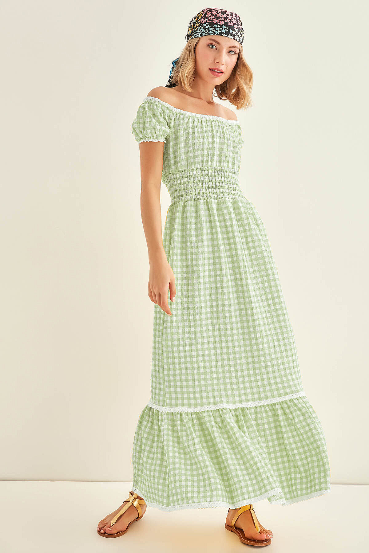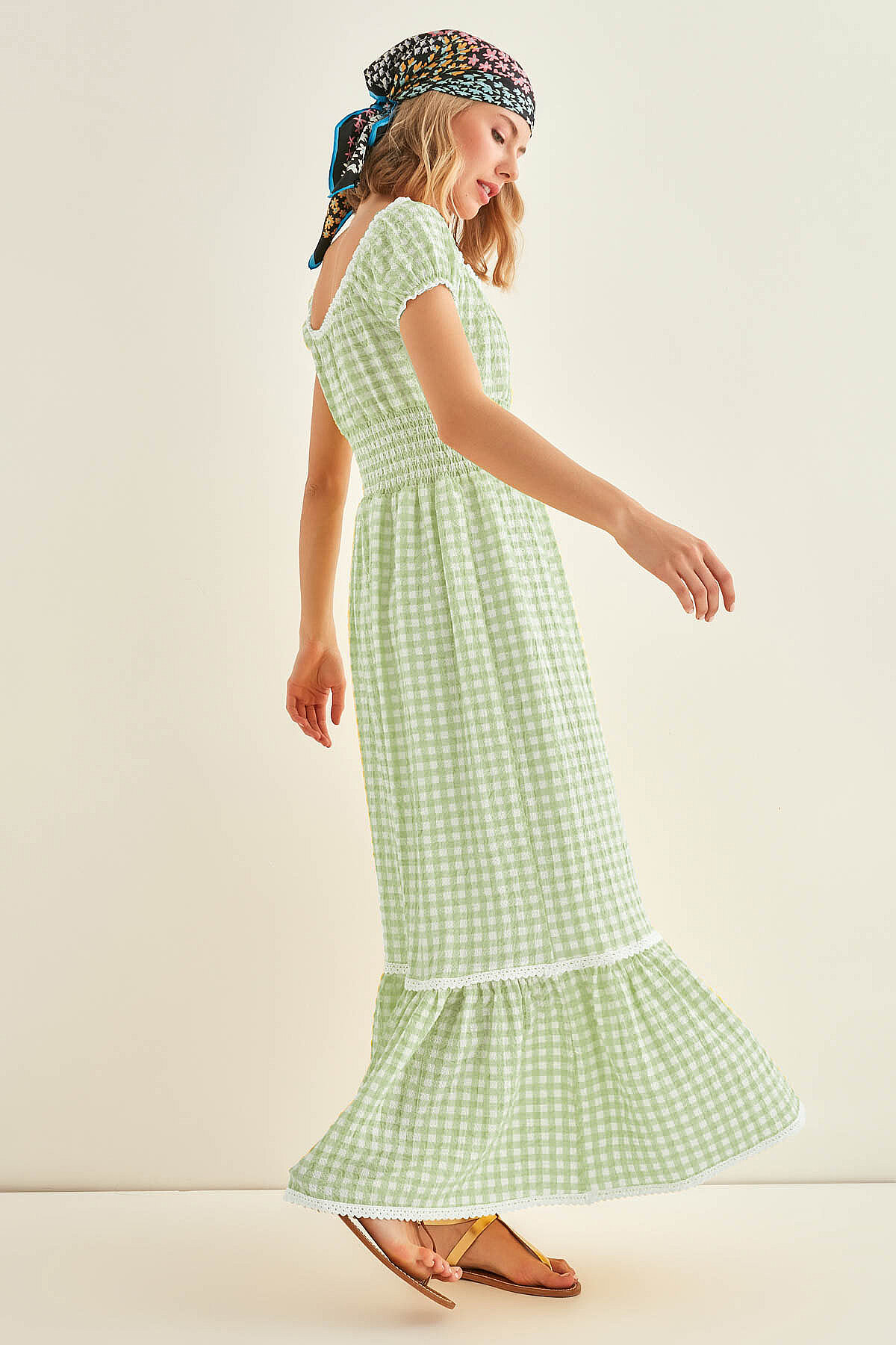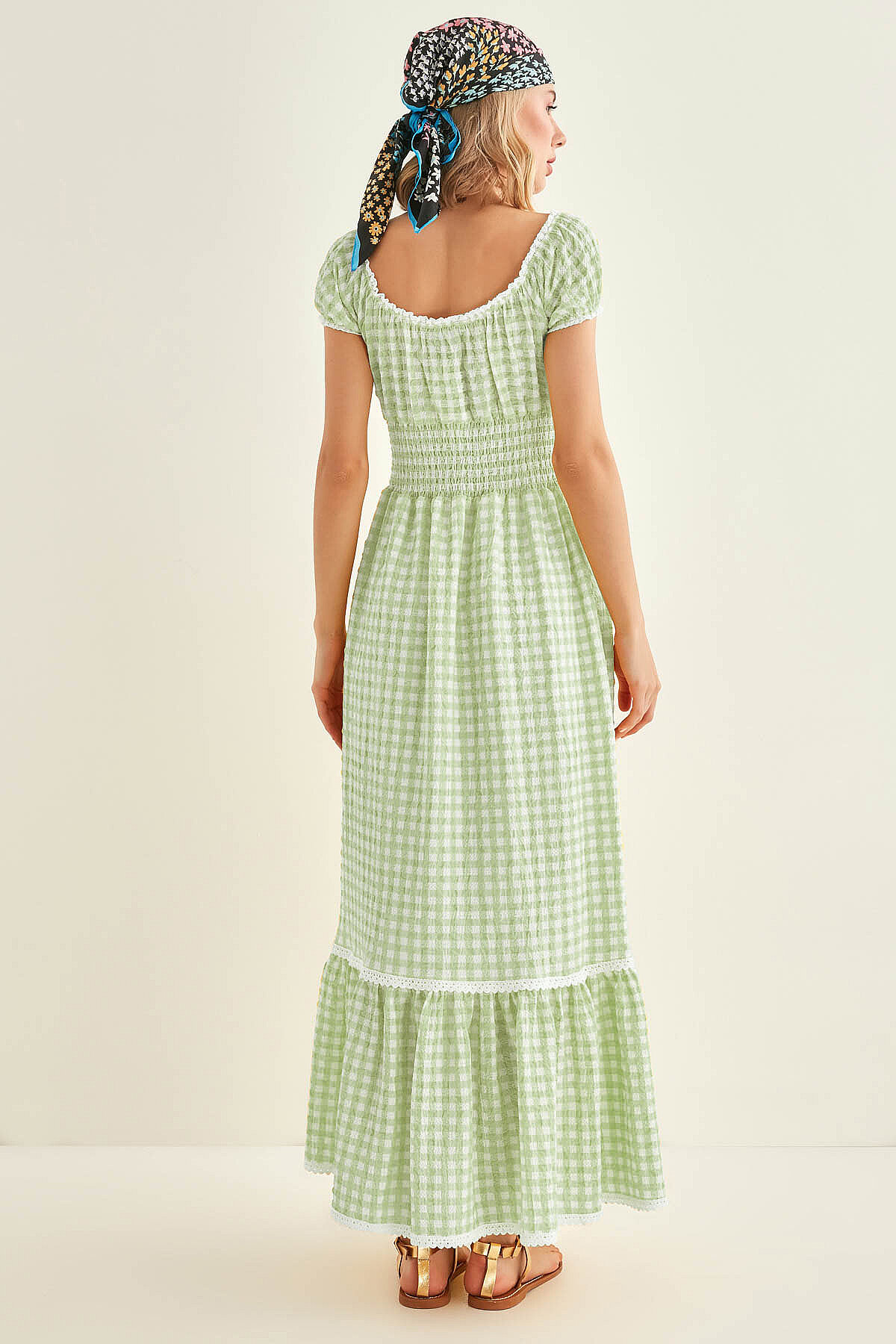 Güpür Şerit Detaylı Uzun Country Elbise Mint
