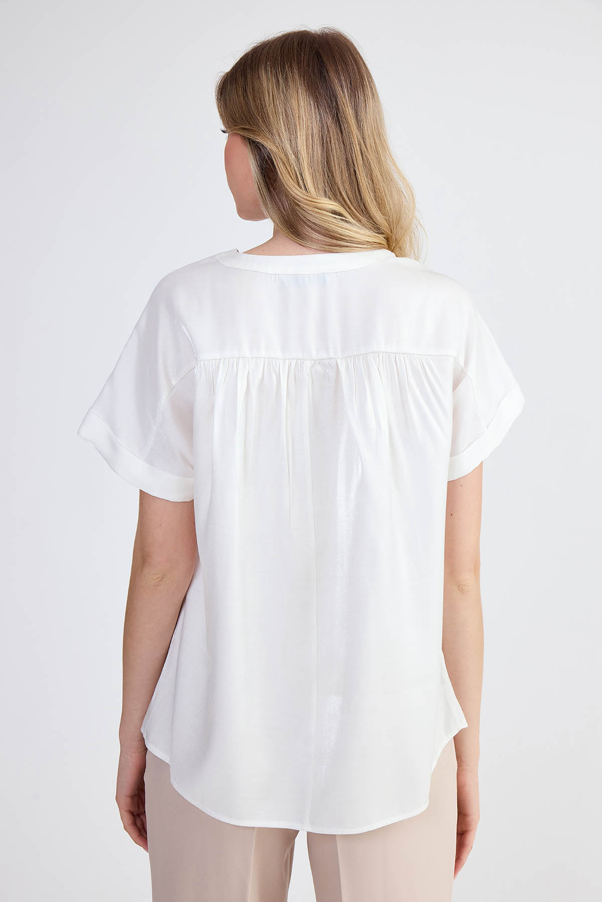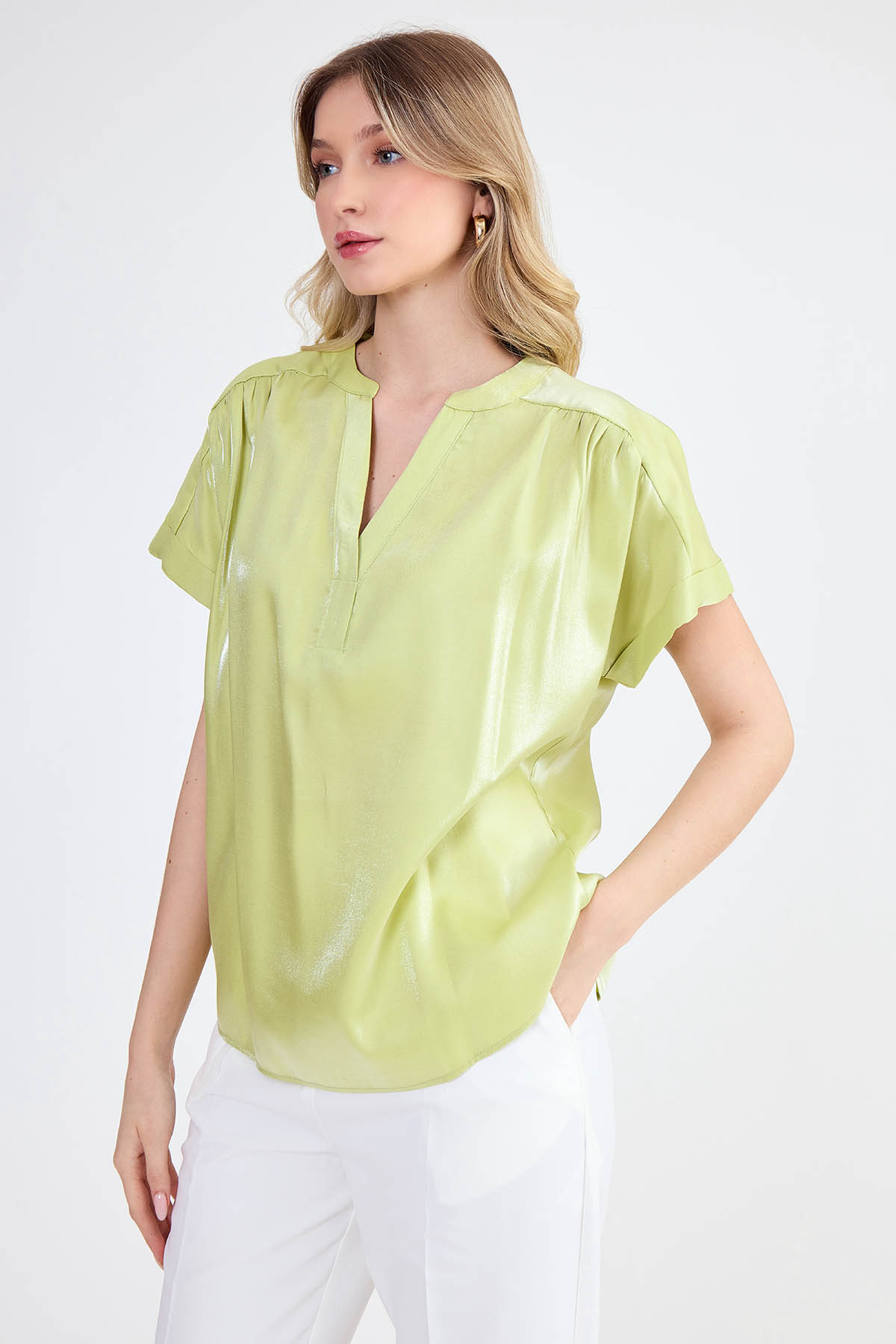 Hakim Yaka Parlak Kumaş Kısa Kol Bluz