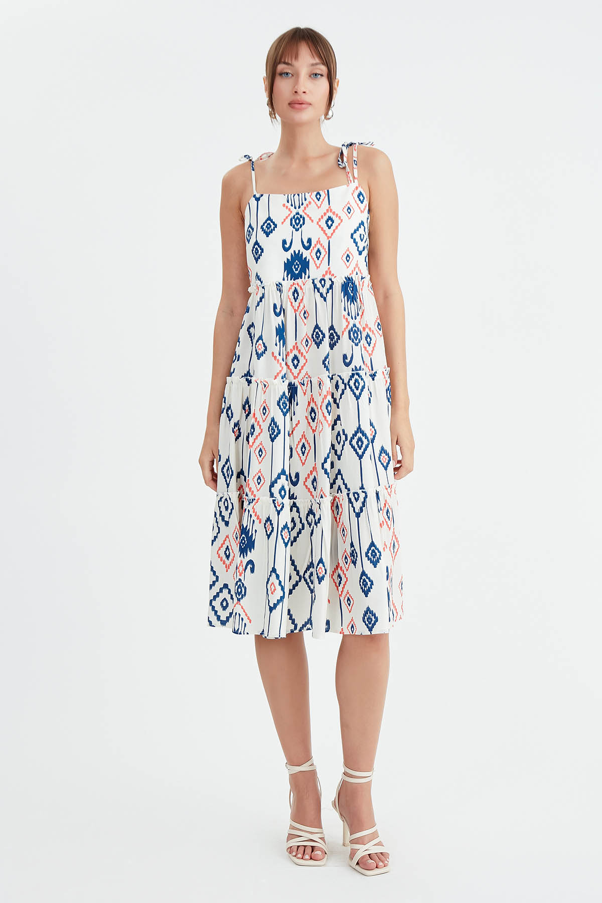 İp Askılı Etnik Desen Elbise
