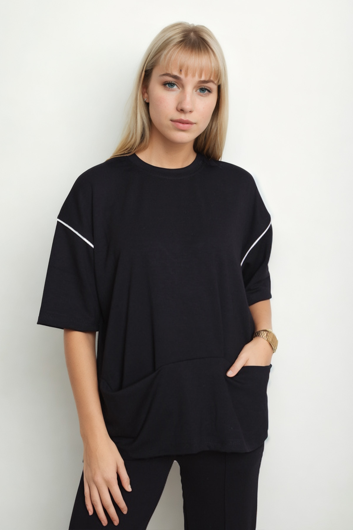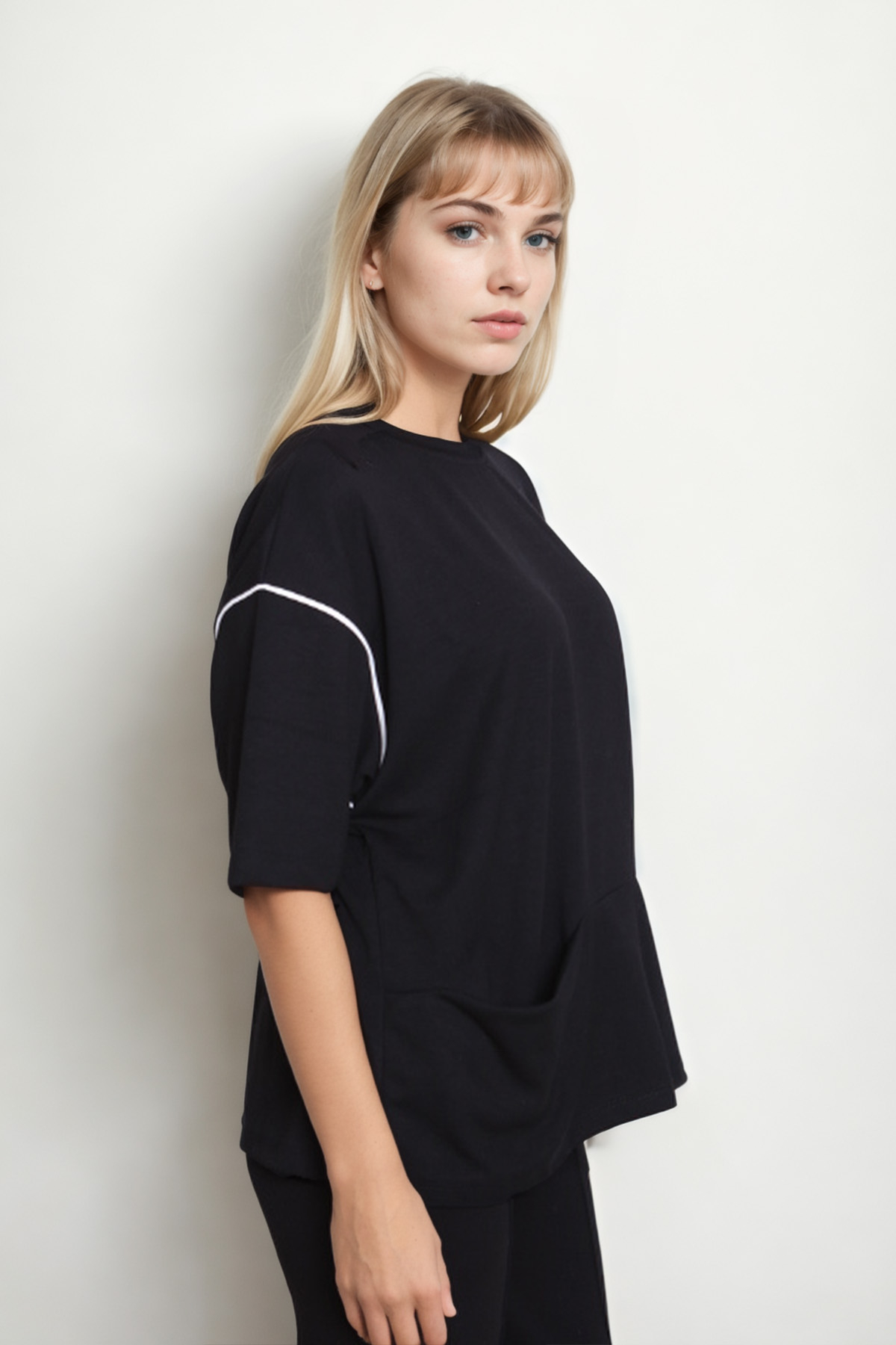 Kanguru Cepli Yuvarlak Yaka Bluz