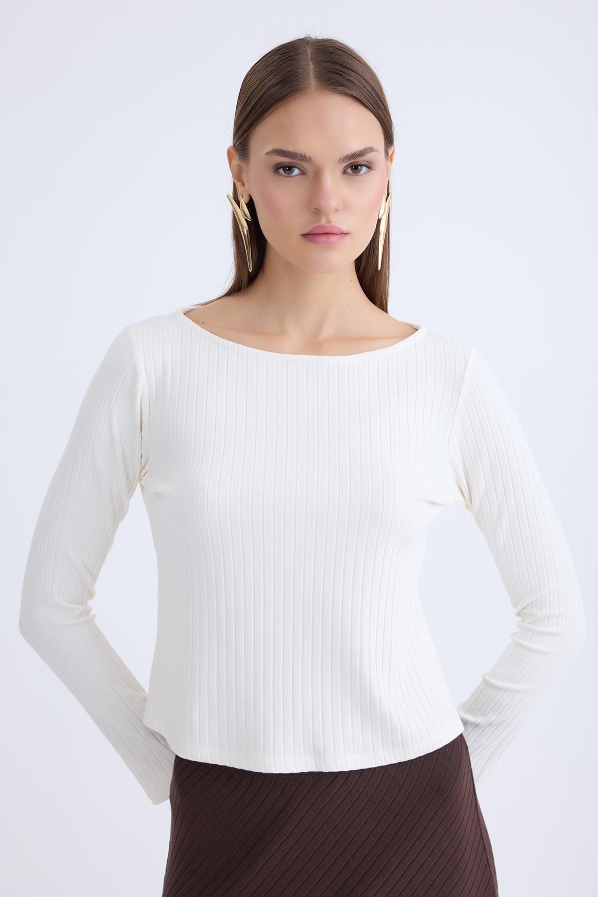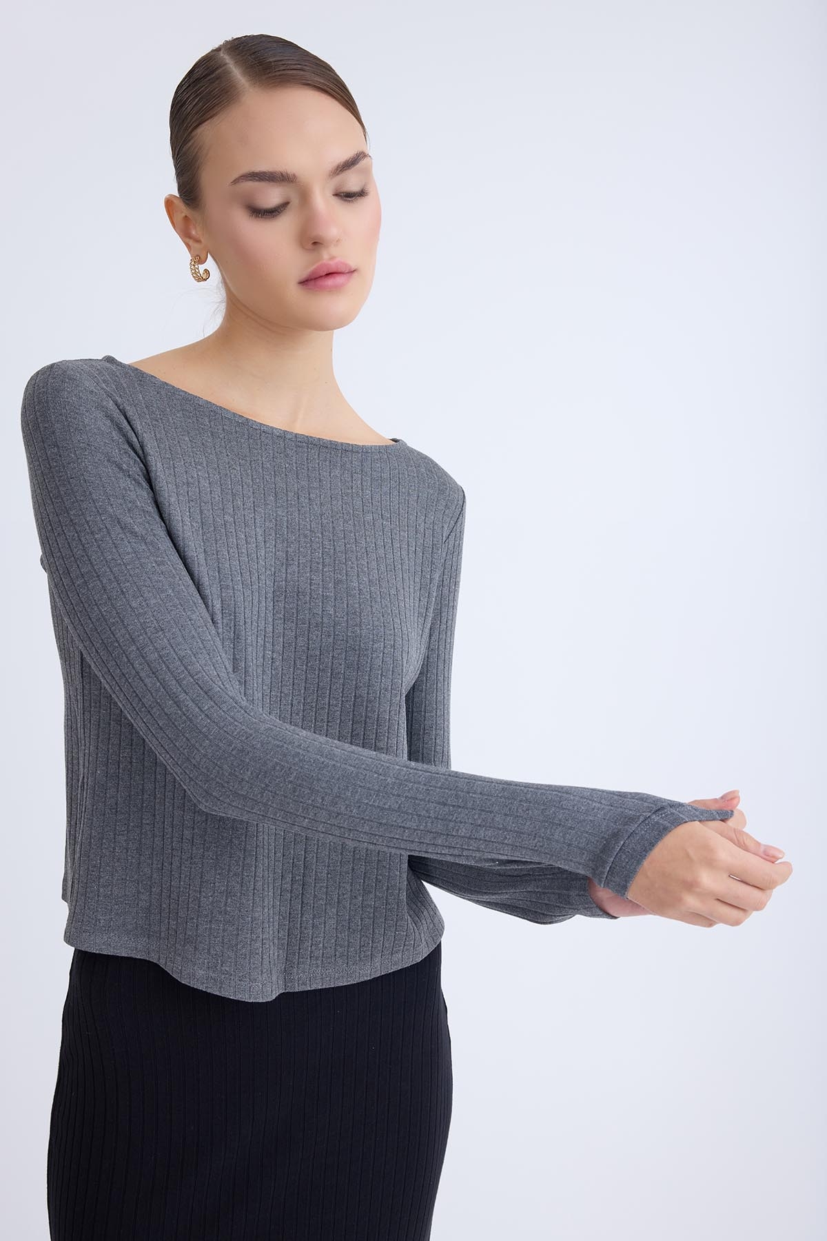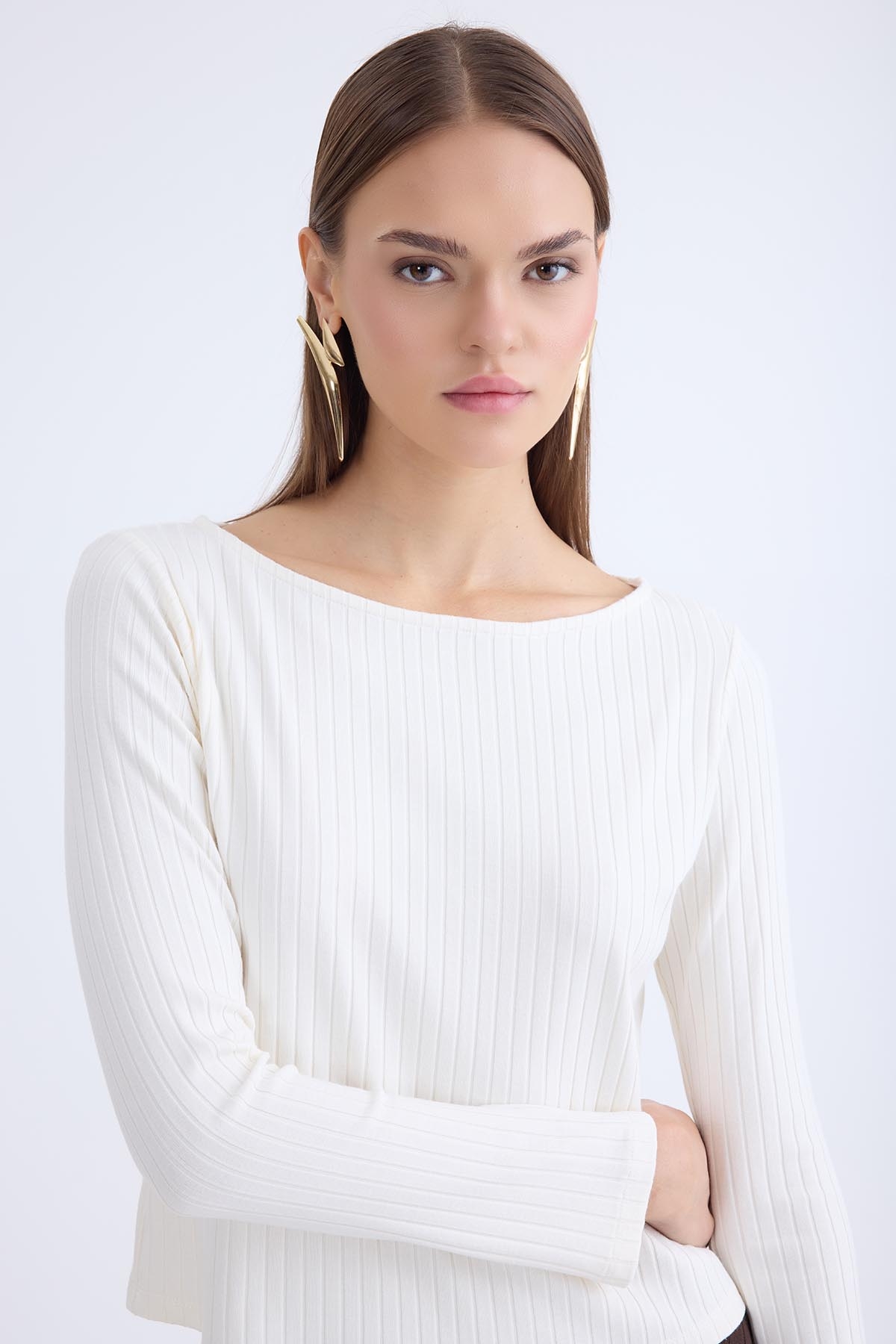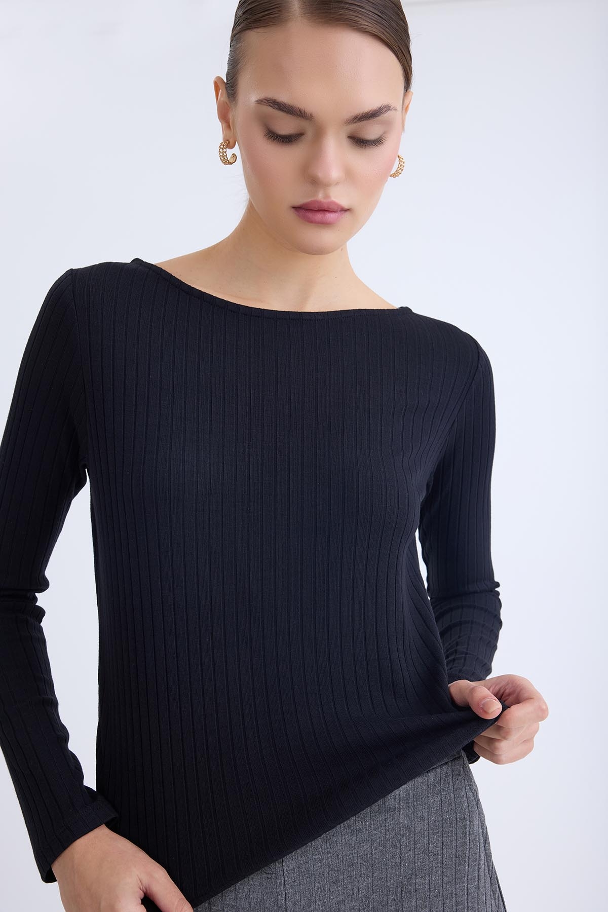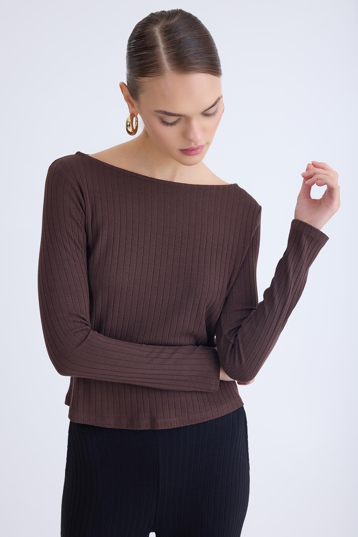 Kayık Yaka Uzun Kol Bluz