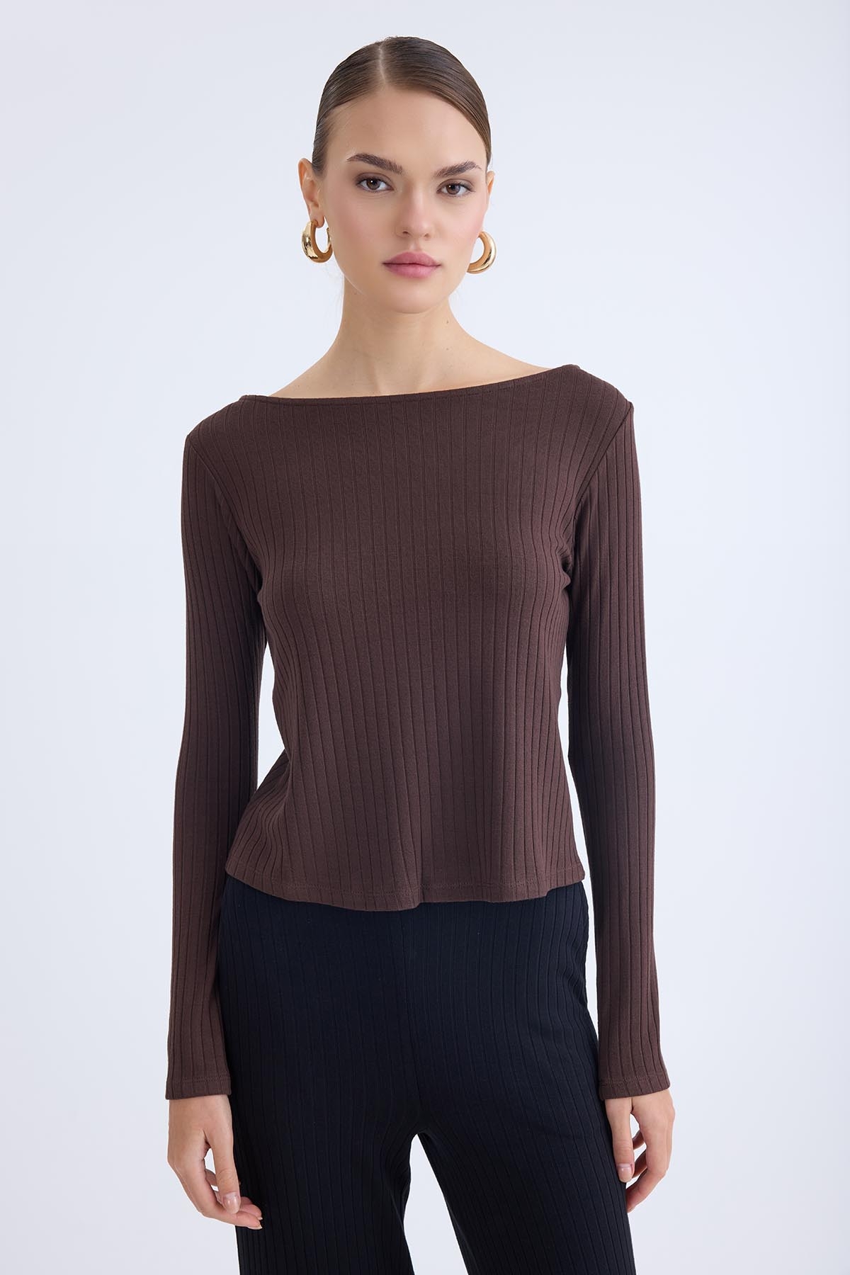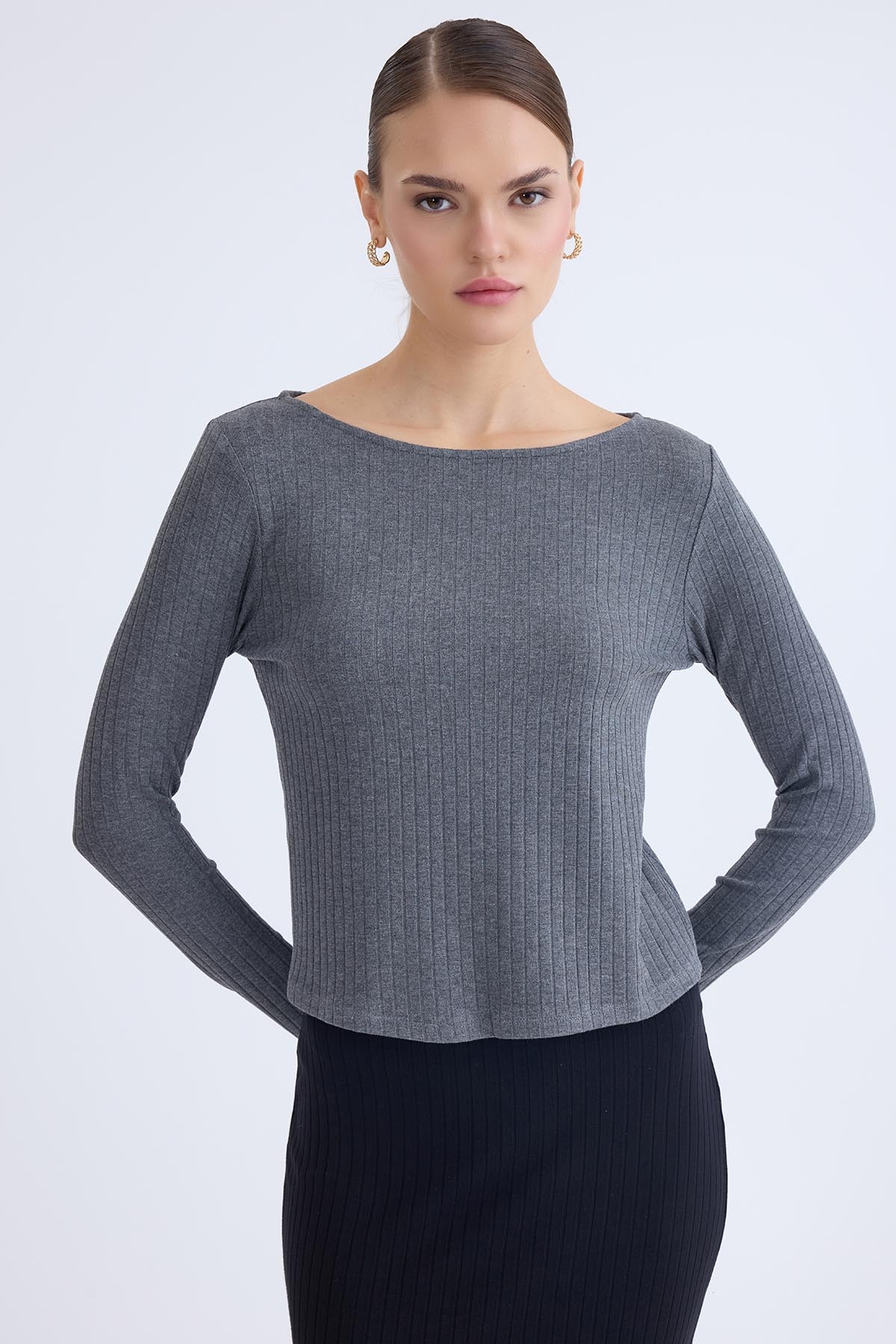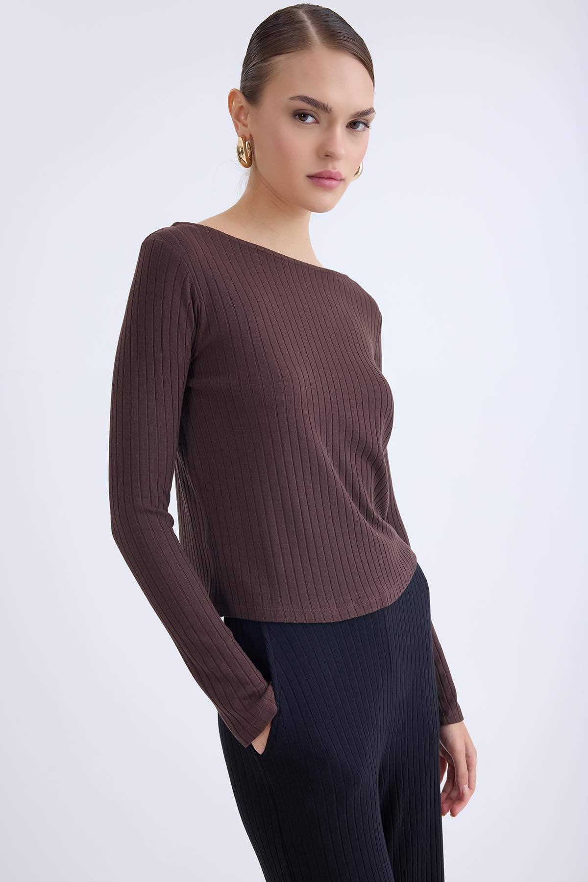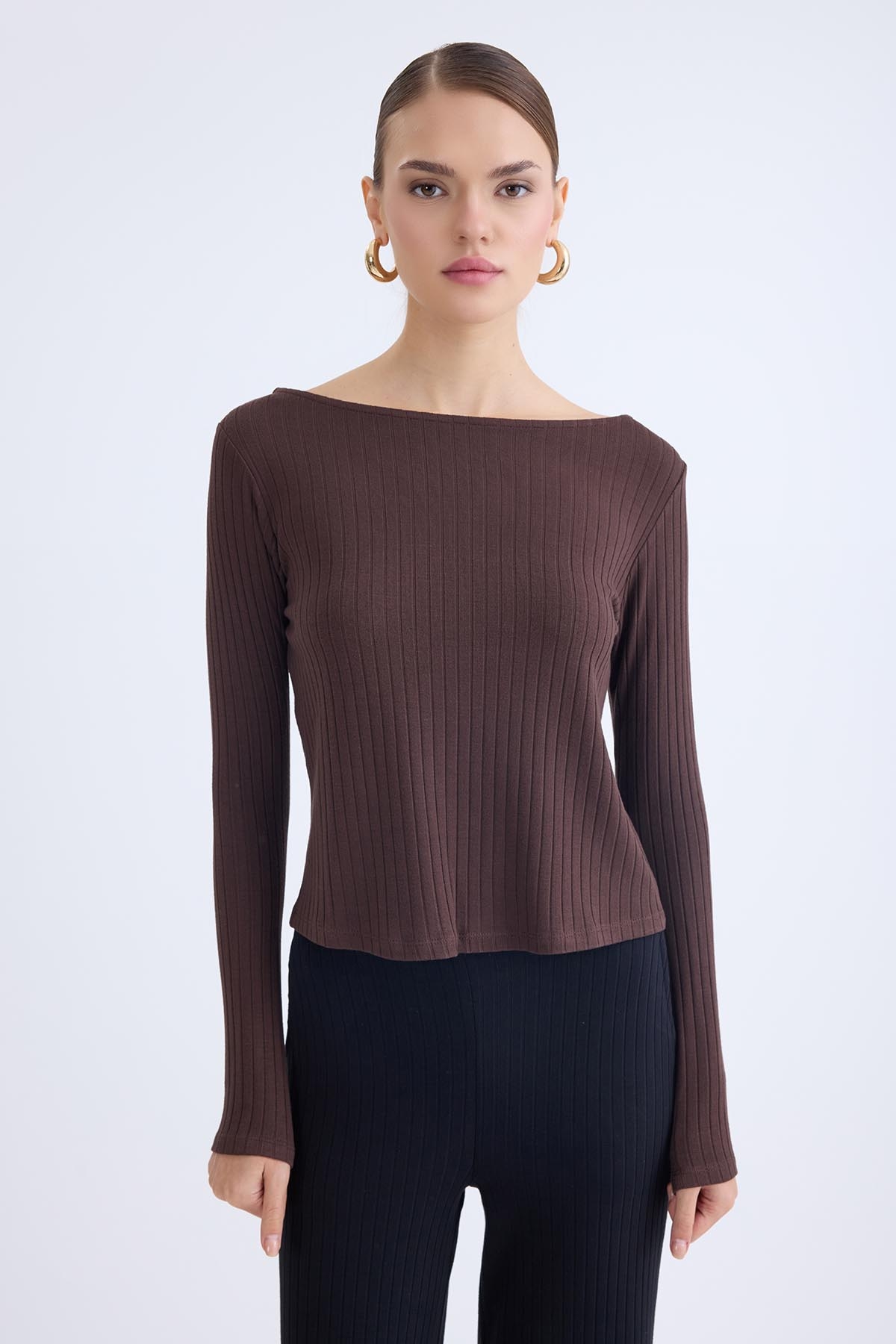 Kayık Yaka Uzun Kol Bluz