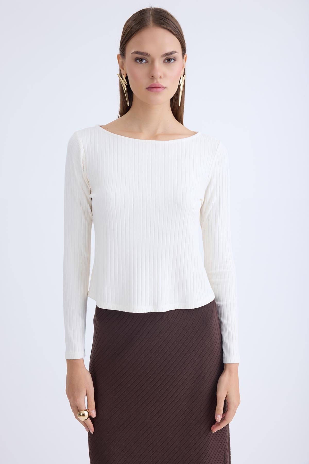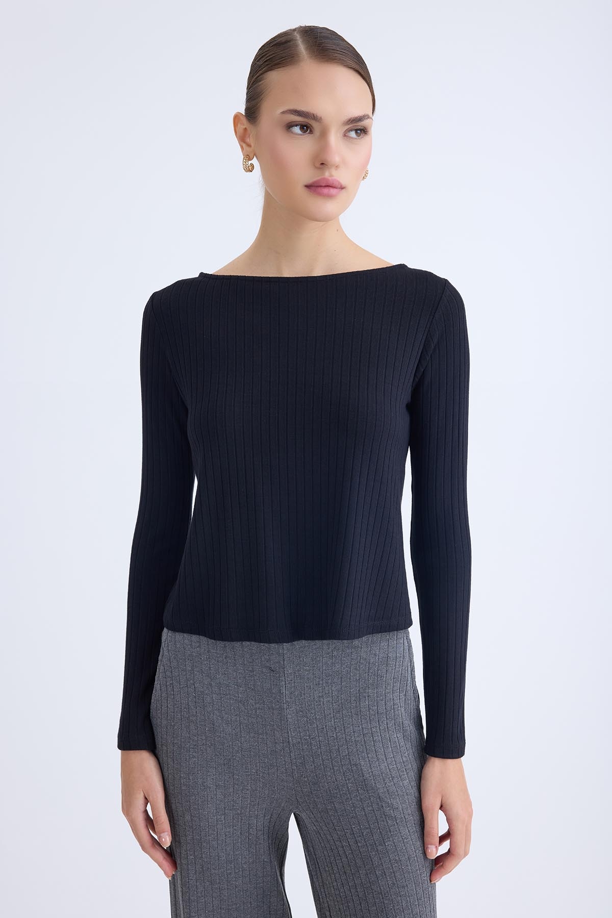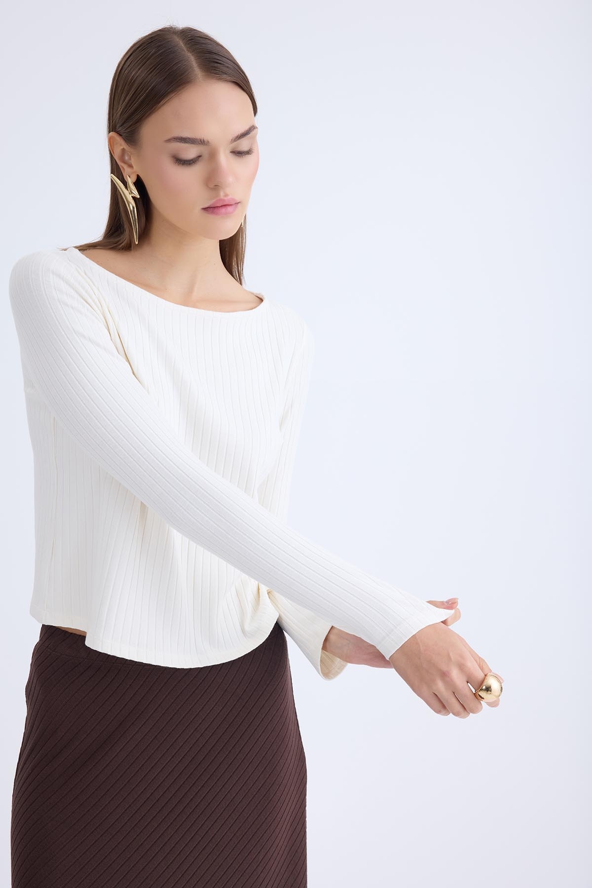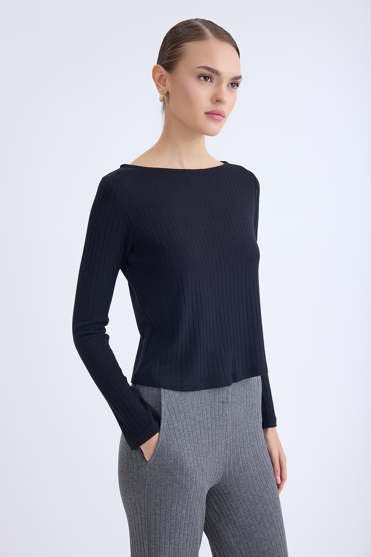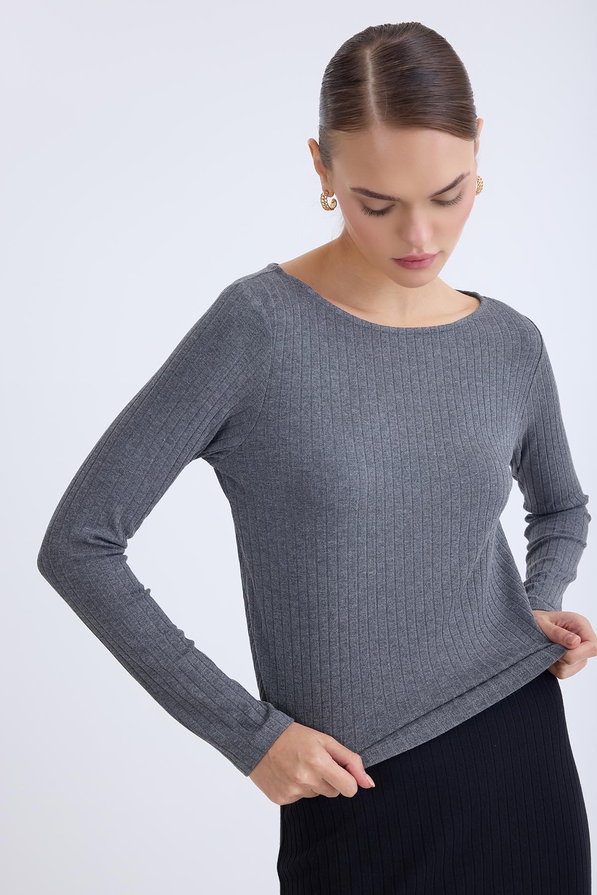 Kayık Yaka Uzun Kol Bluz