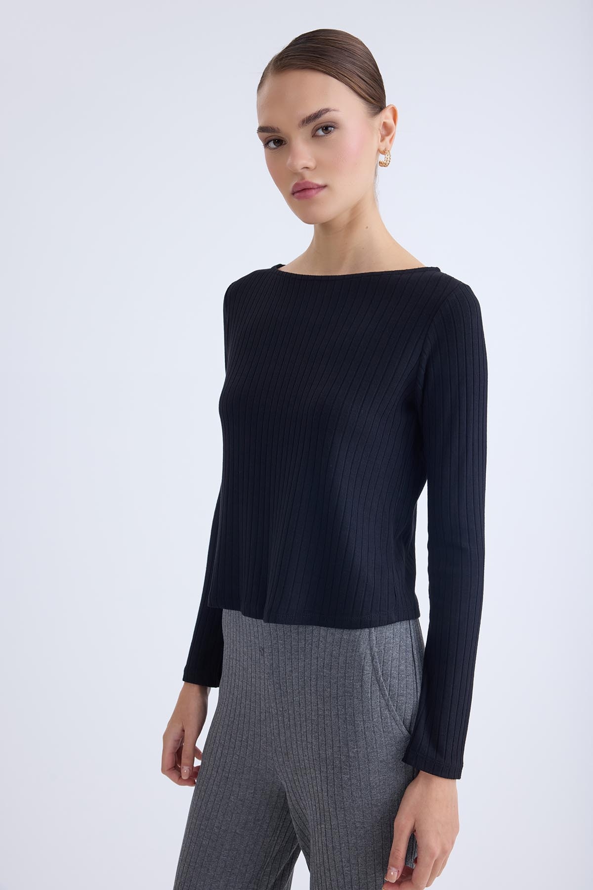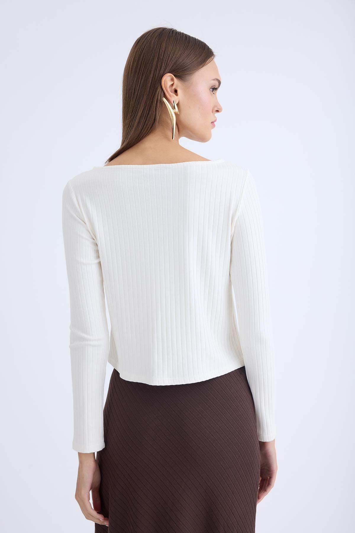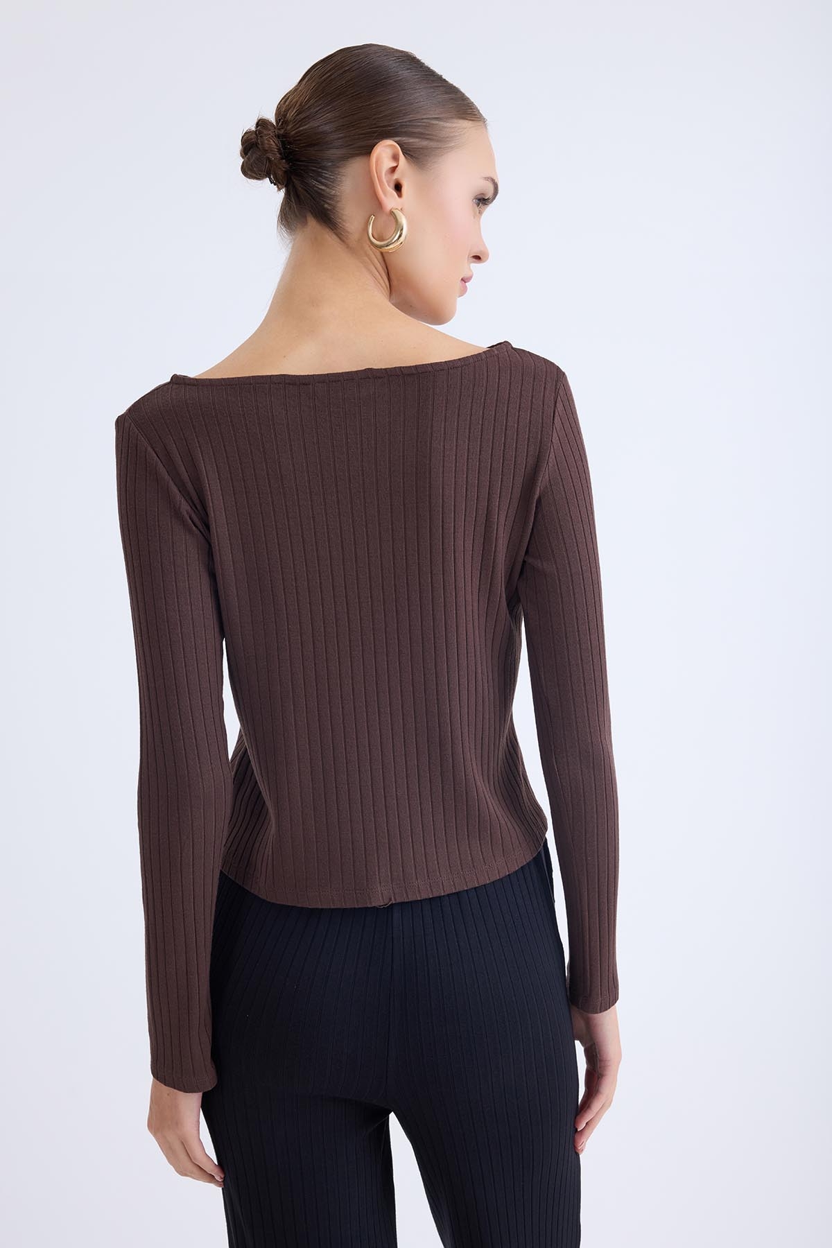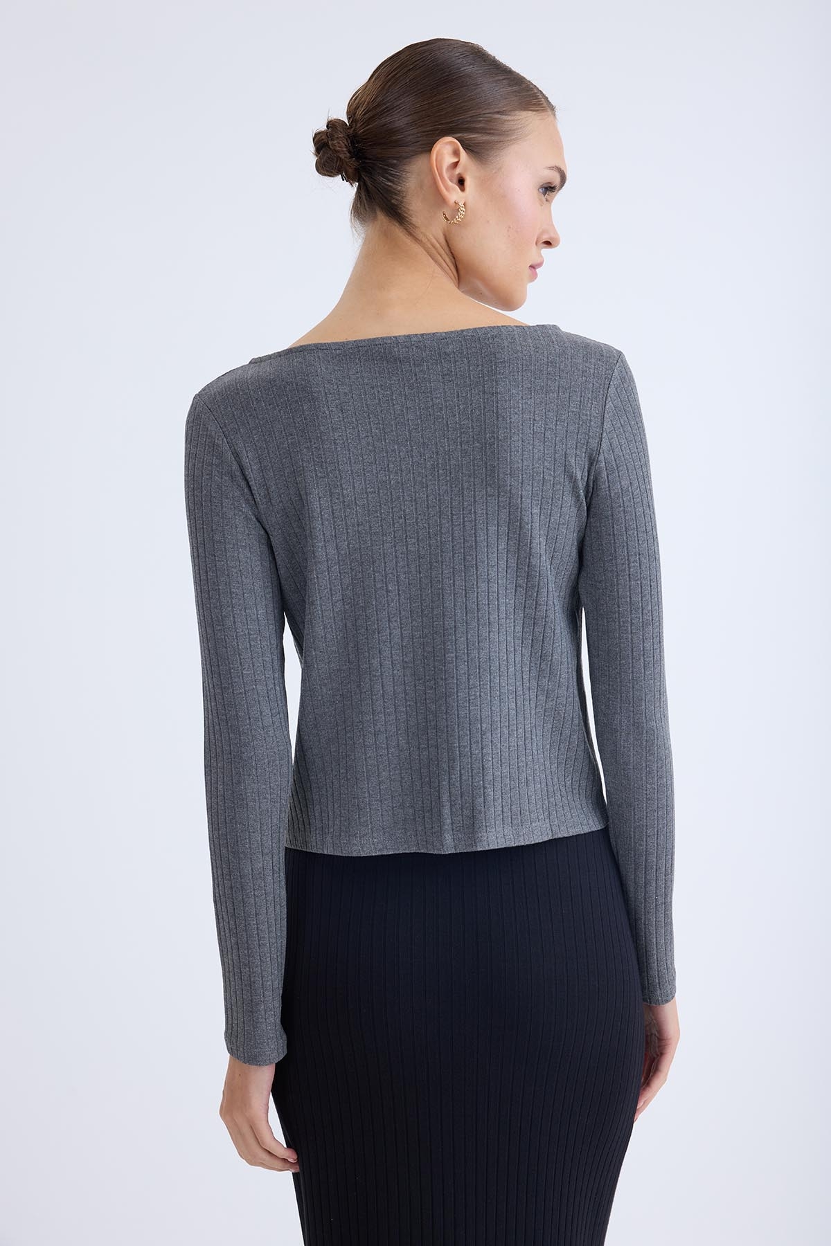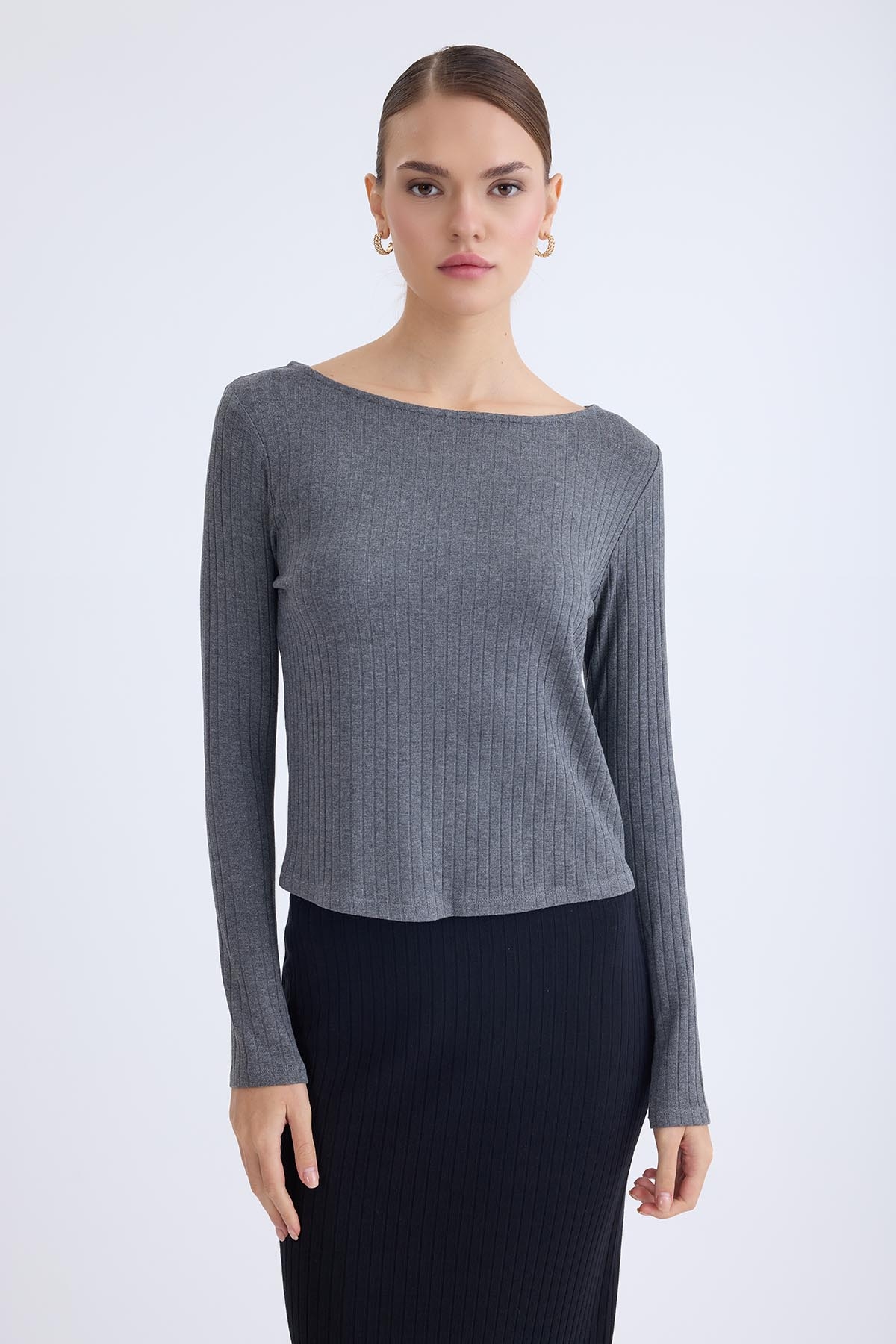 Kayık Yaka Uzun Kol Bluz