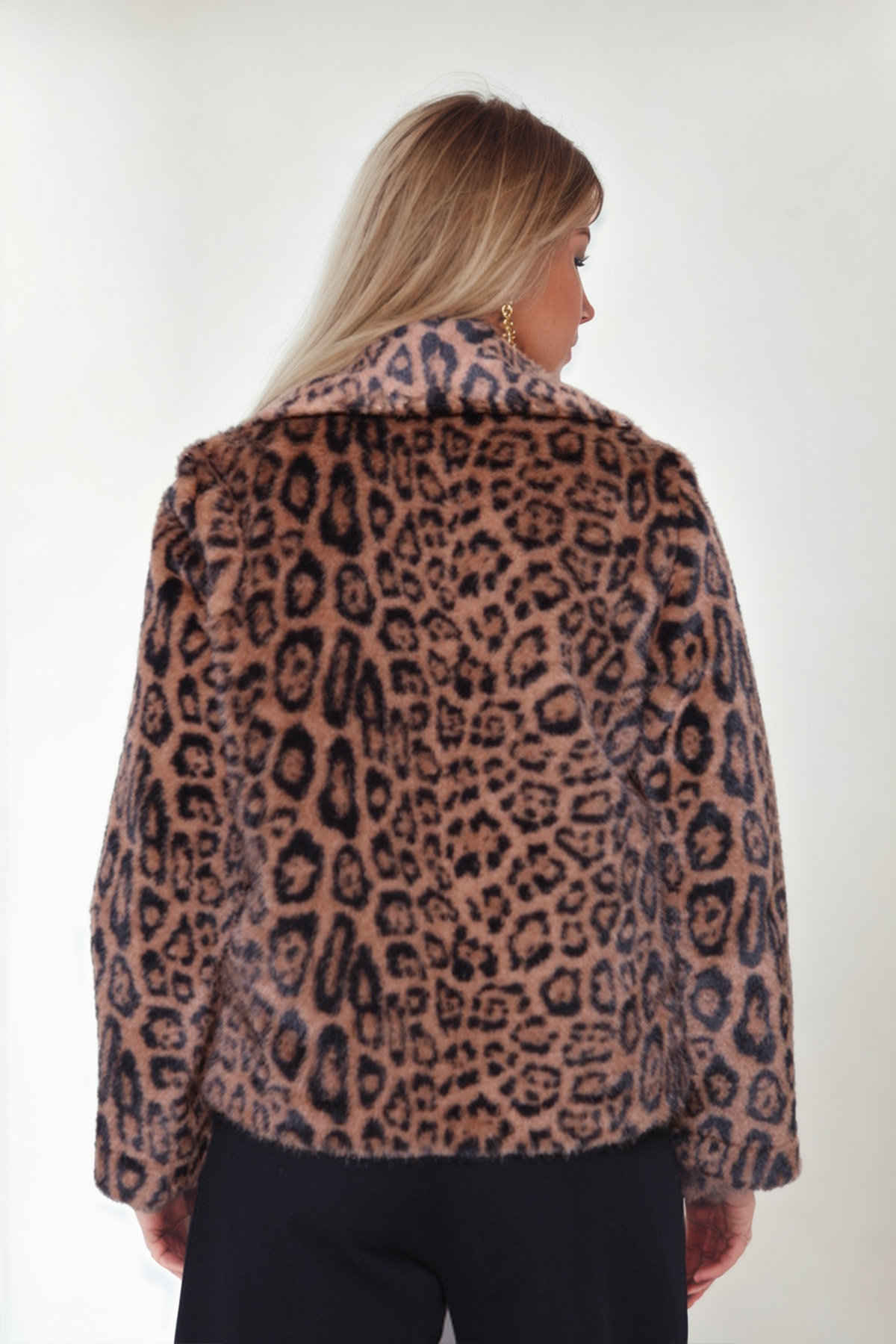 Leopar Desen Yumoş Çıtçıtlı Ceket