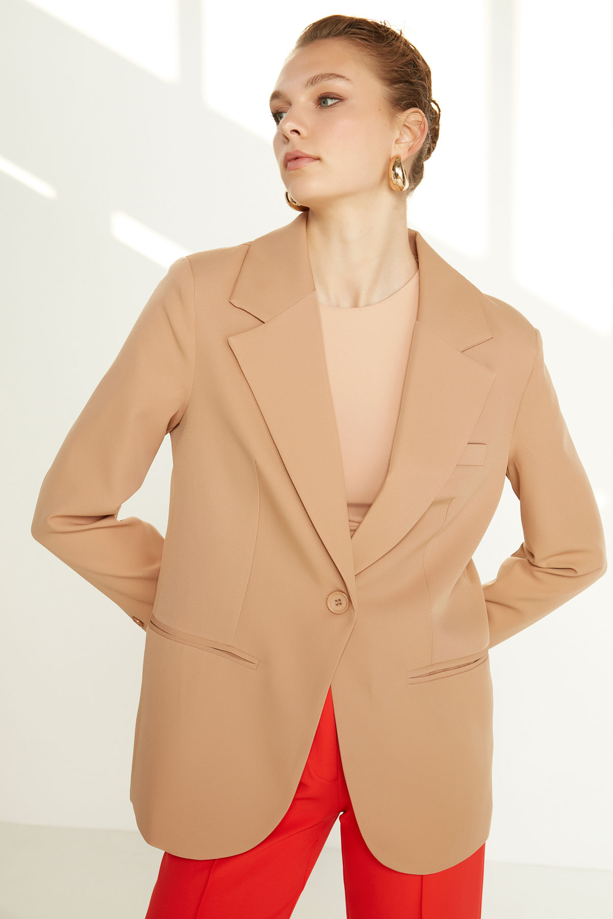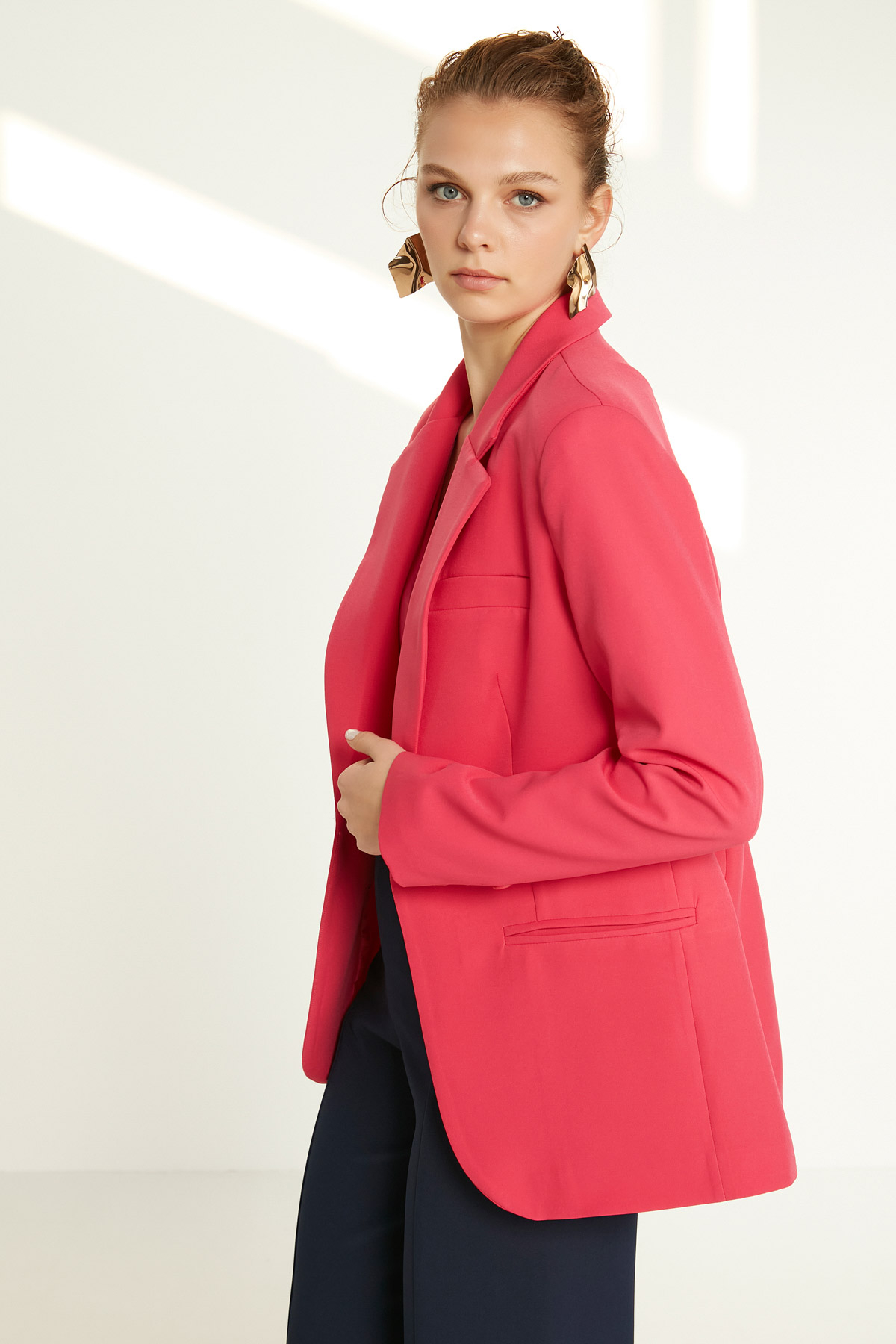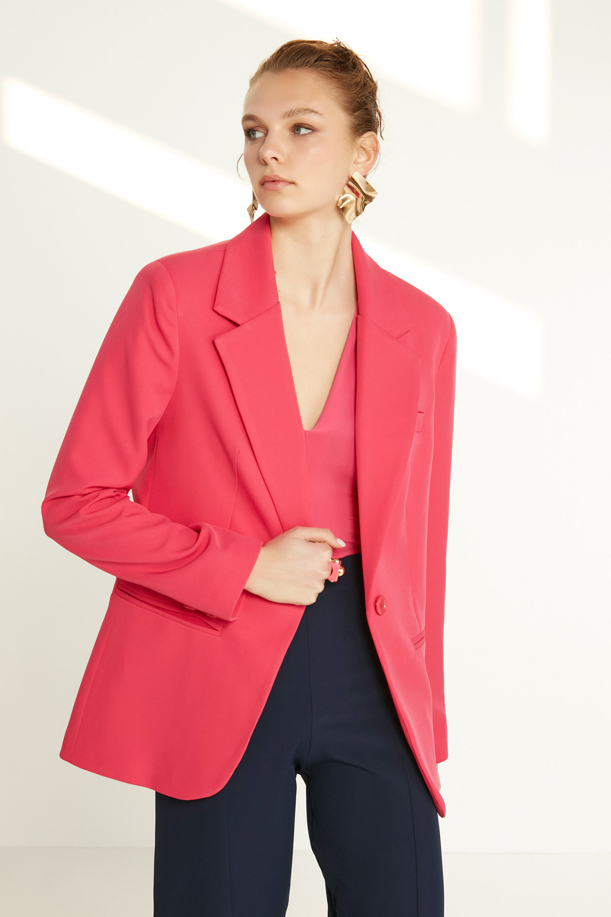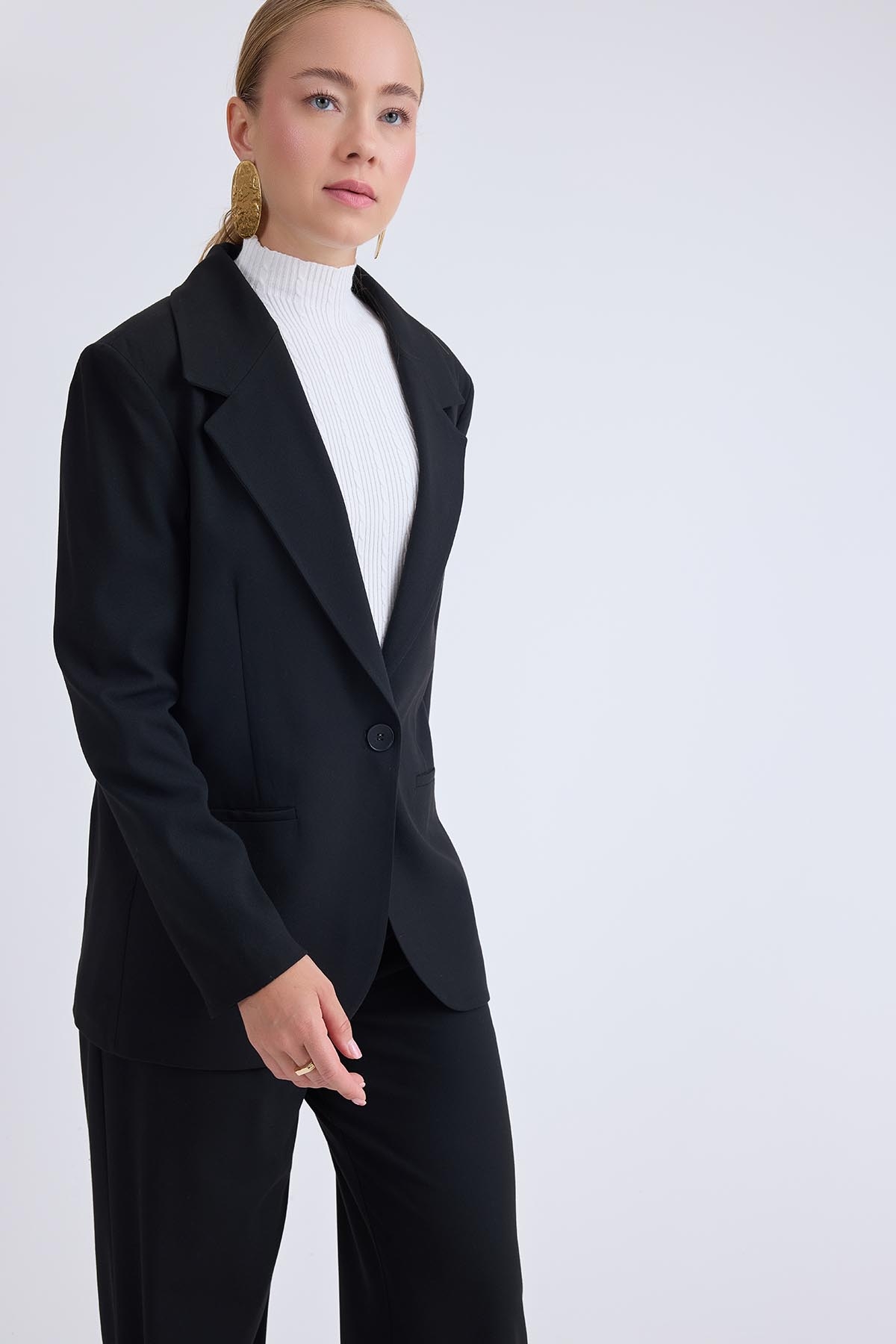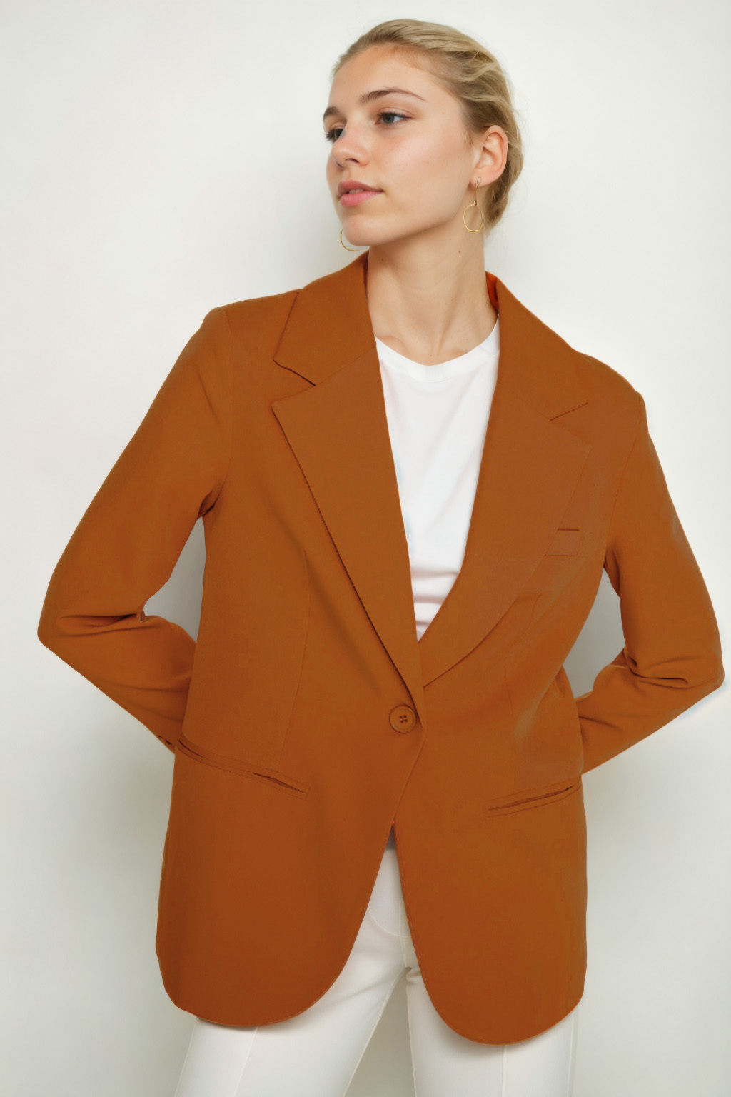 Önden Tek Düğme Kapamalı Blazer Ceket