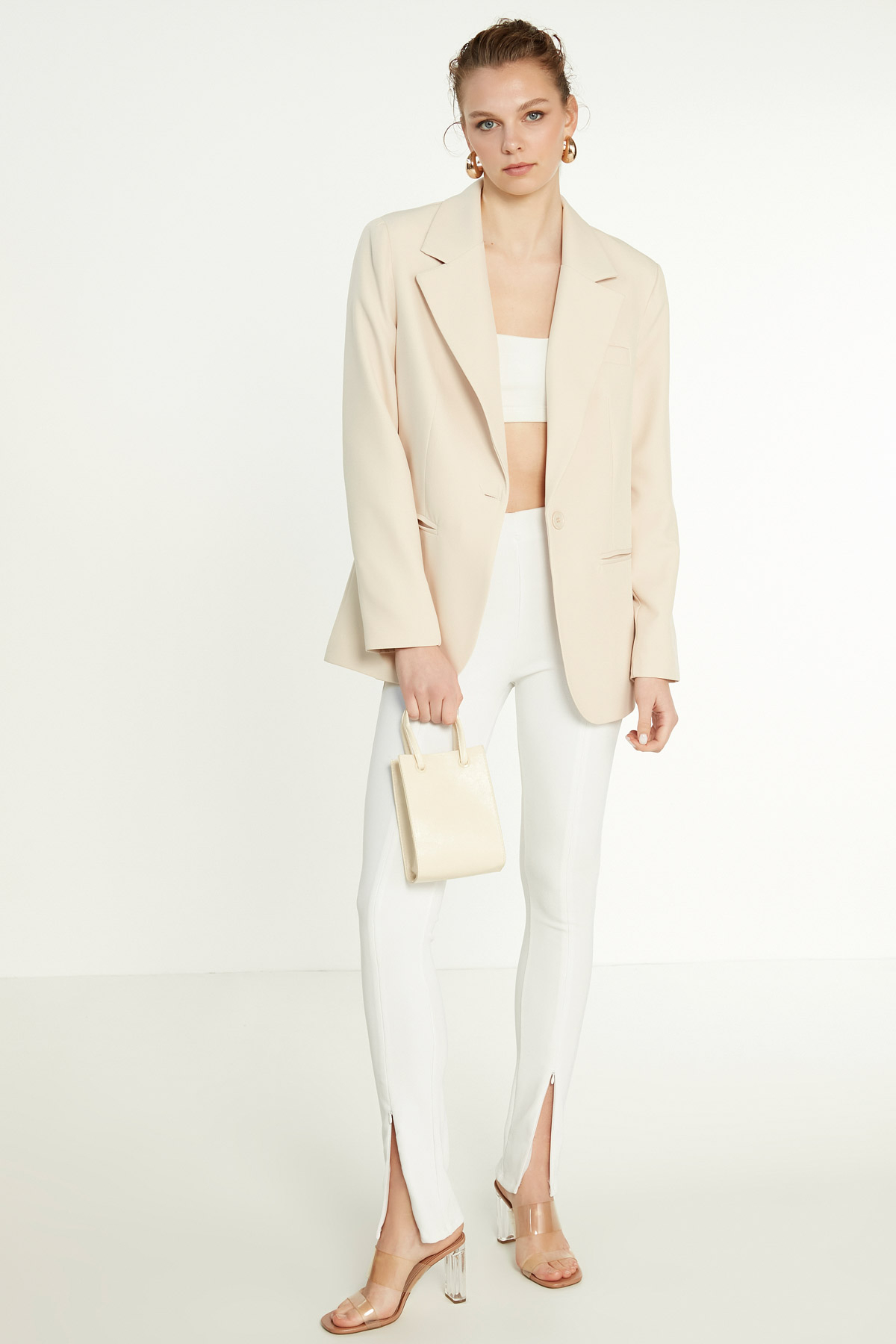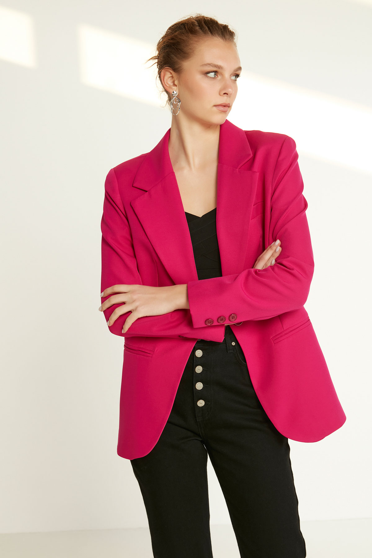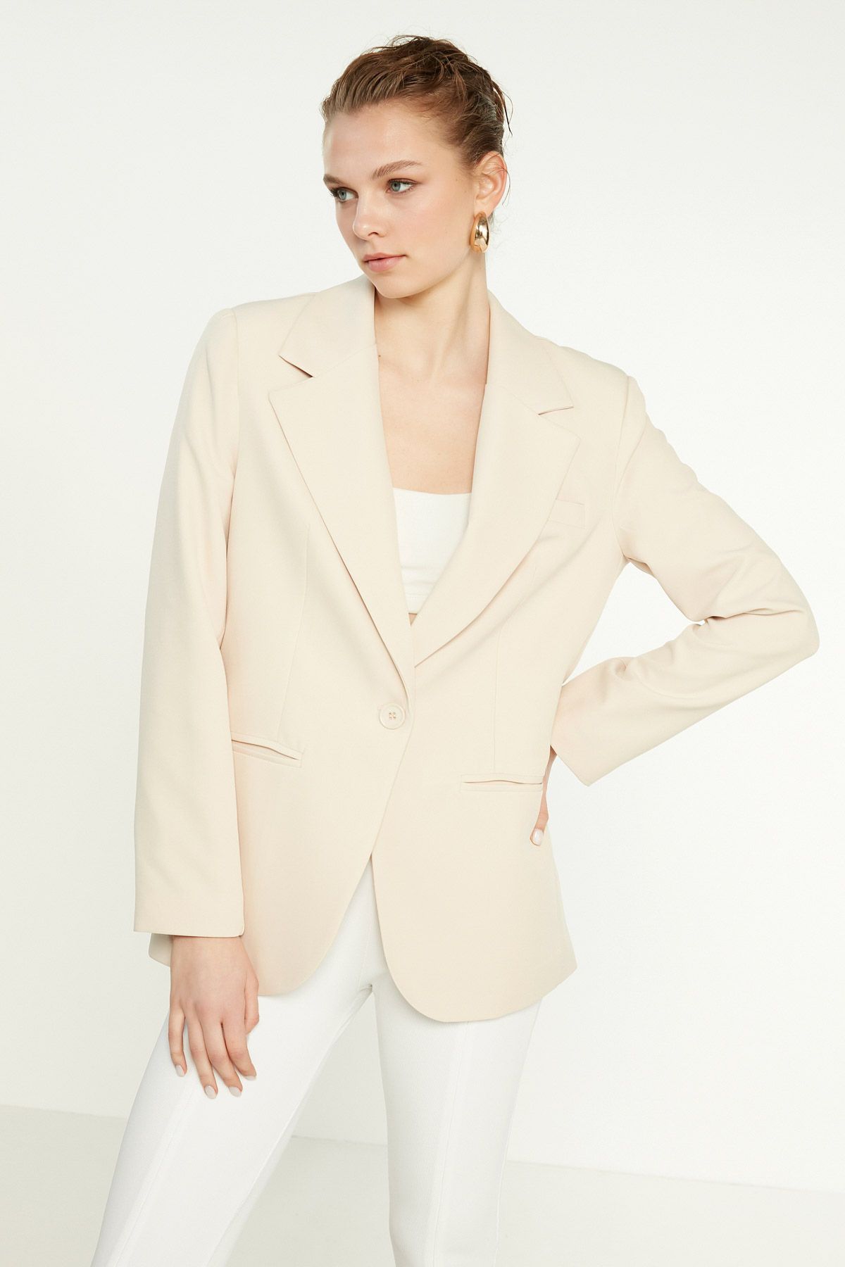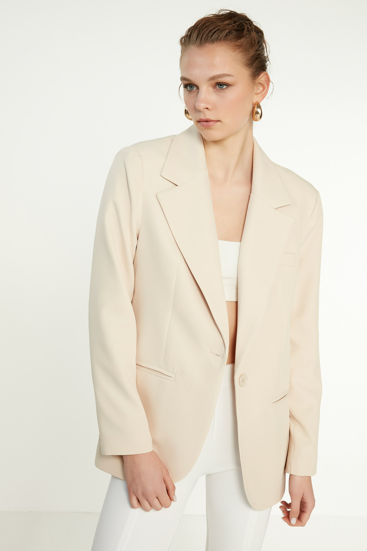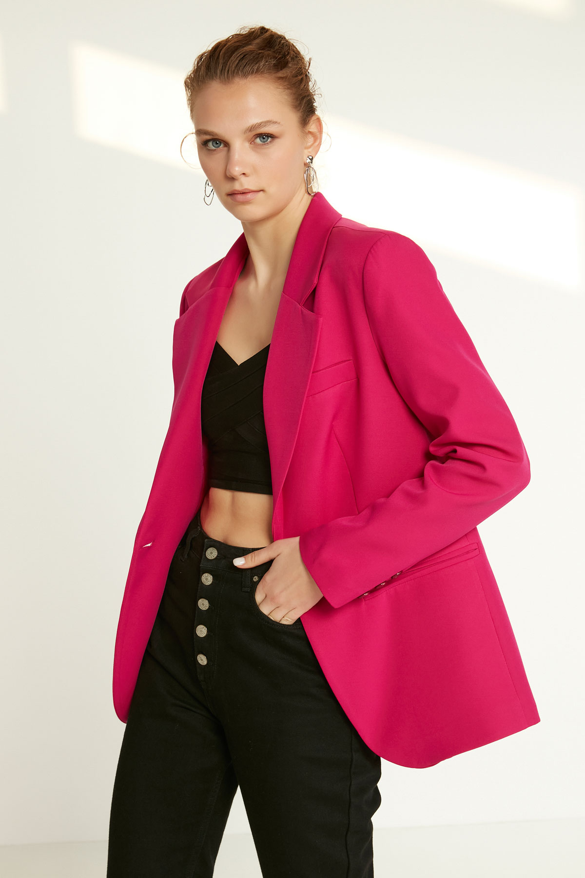 Önden Tek Düğme Kapamalı Blazer Ceket